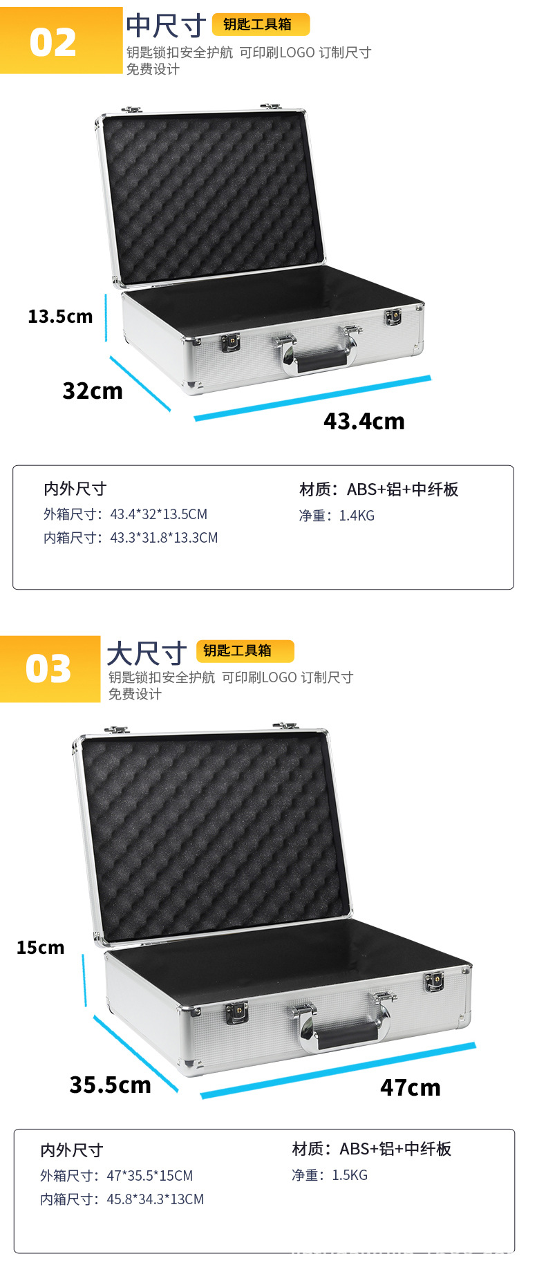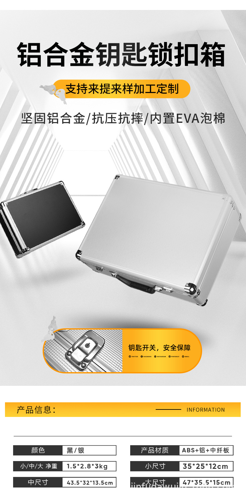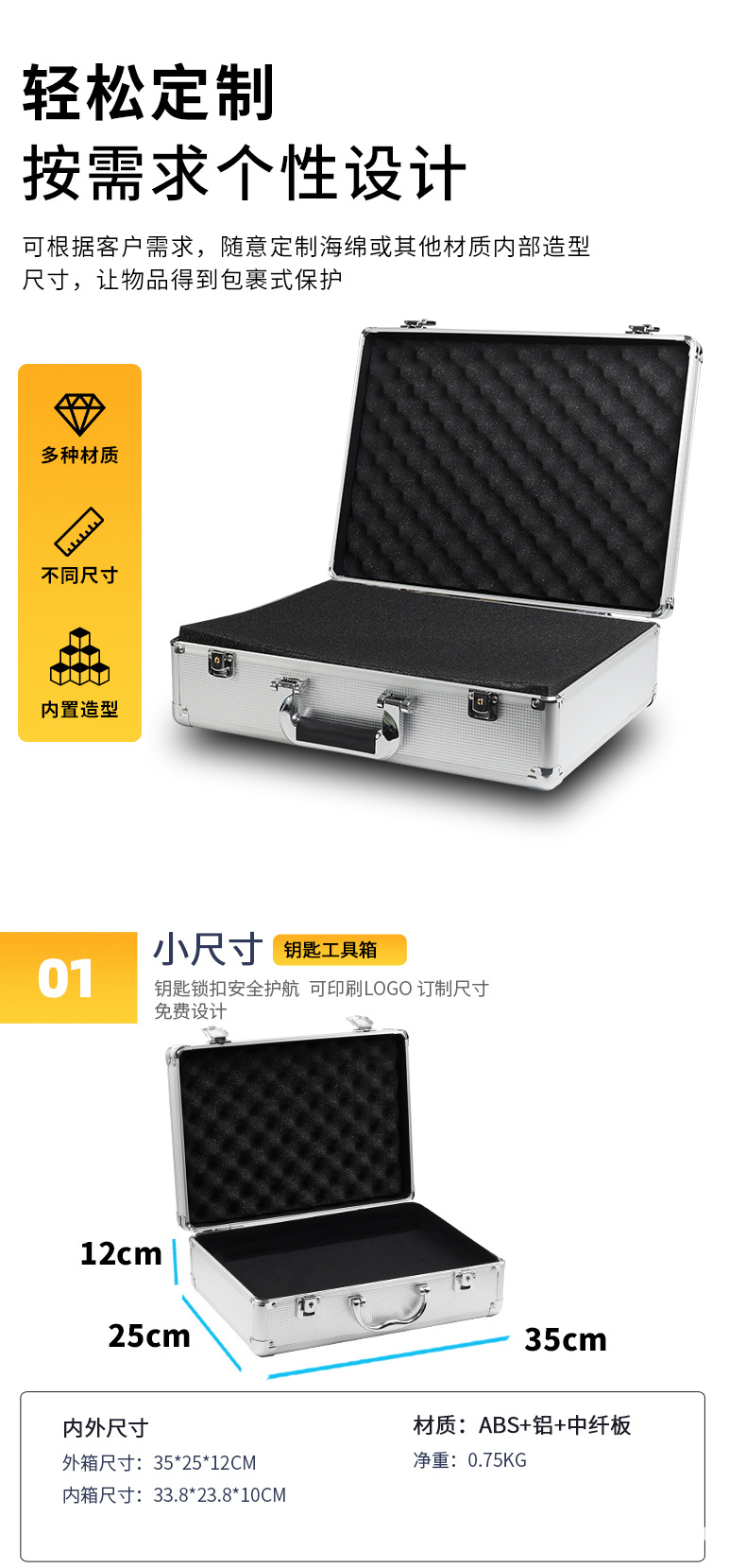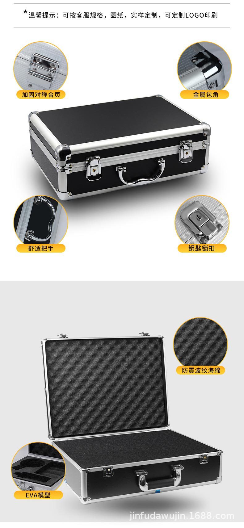 定制海绵内衬跨境铝箱手提仪器设备箱无人机箱设备展示箱铝合金箱