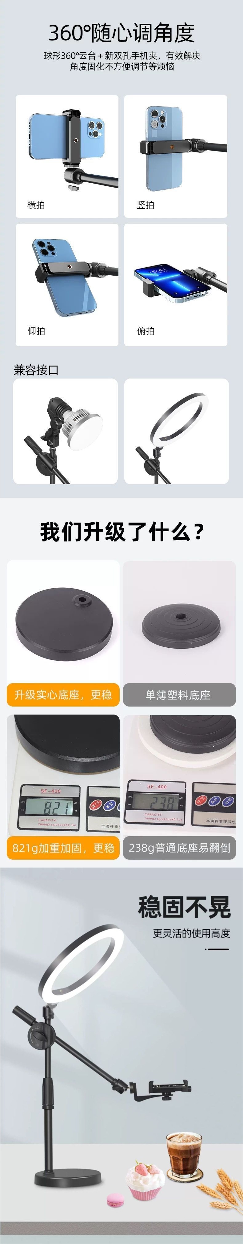 新款桌面俯拍手机支架视频上网课桌面直播录视频俯视拍摄带补光灯