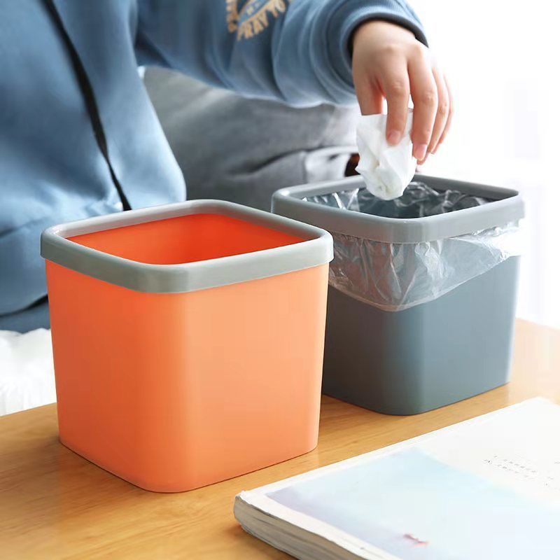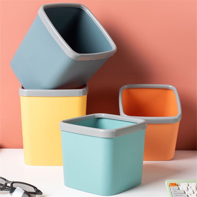 北欧桌面小垃圾桶家用桌上客厅方形无盖筒迷你带压圈收纳盒废纸篓