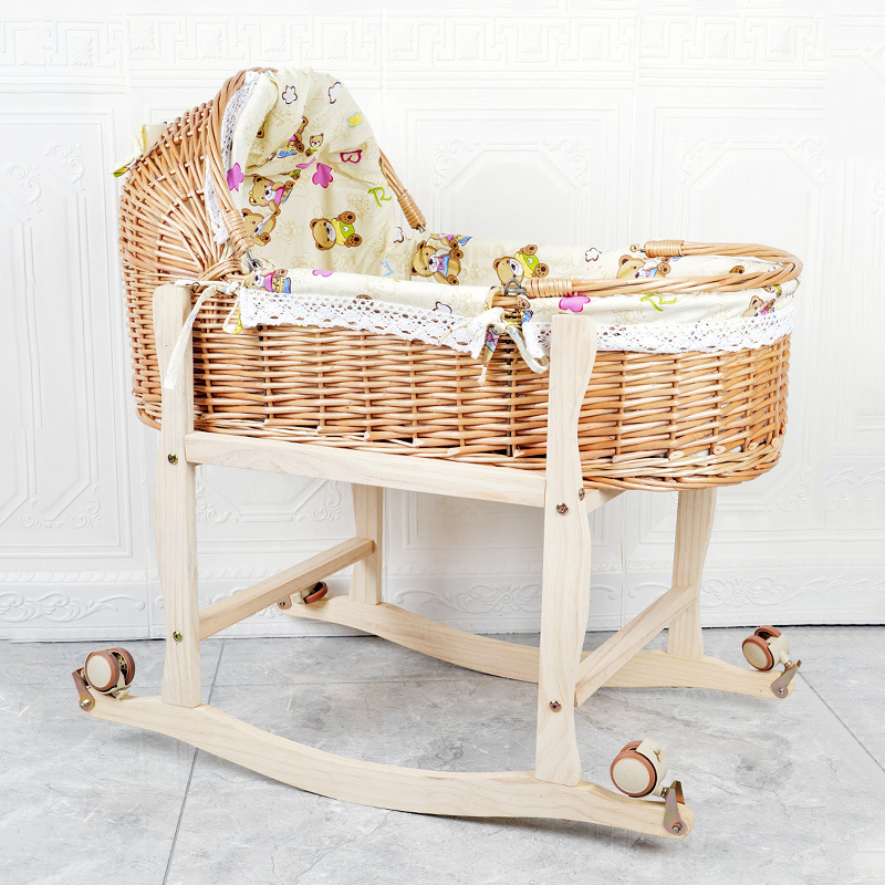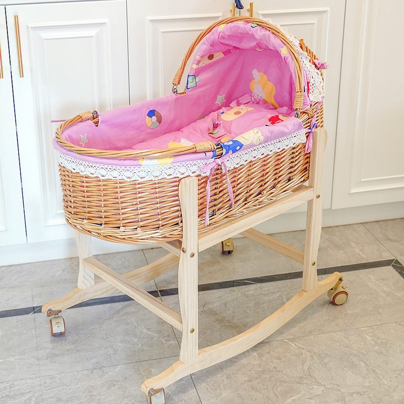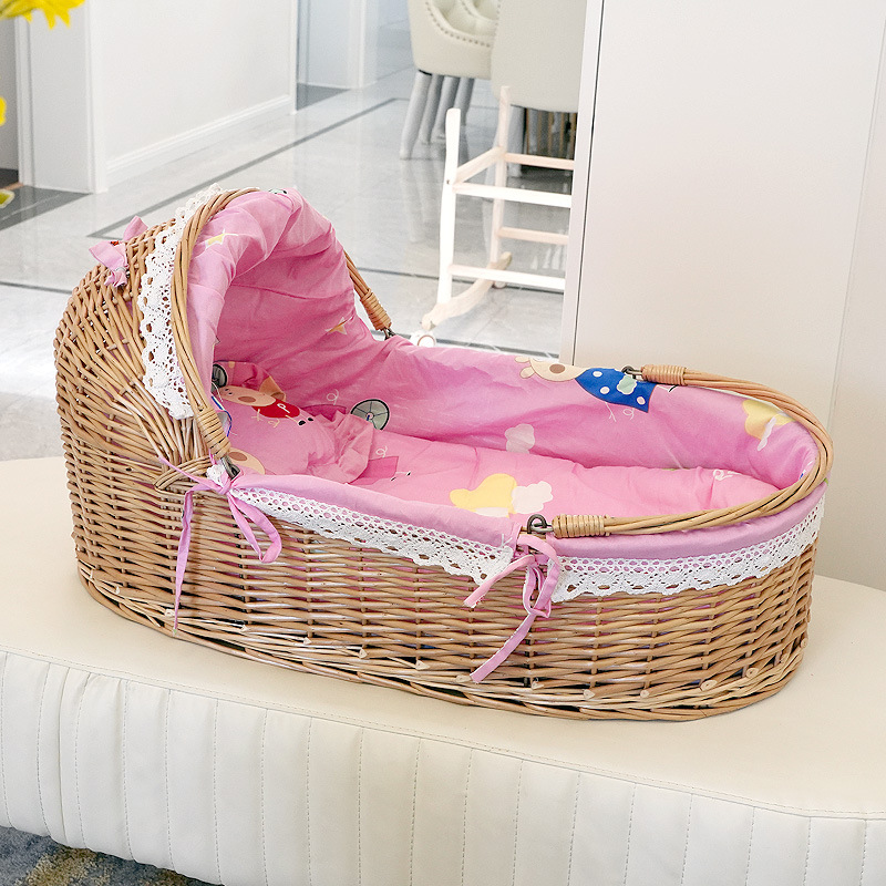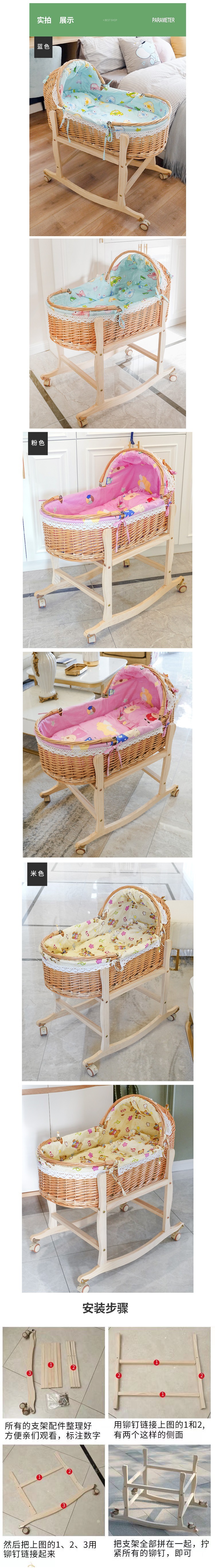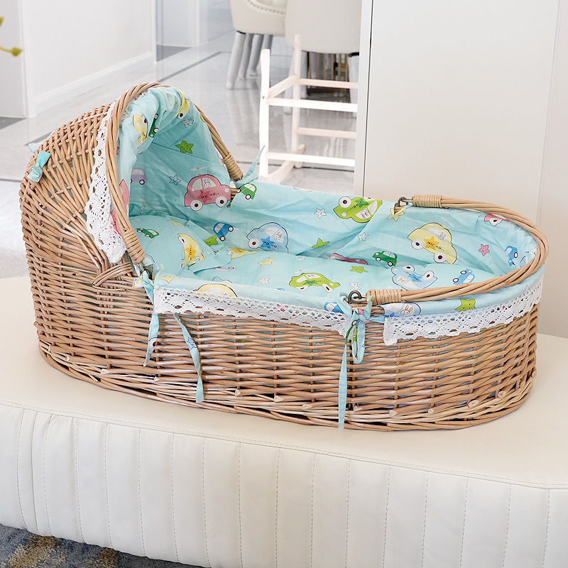 藤编婴儿摇篮睡篮新生儿外出便携式手提篮车载安抚睡篮摇篮编织床