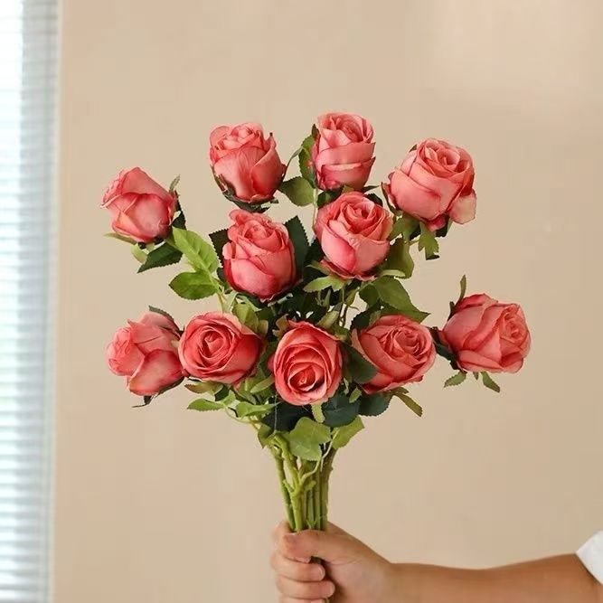 仿真花仿真玫瑰花玫瑰保加利亚装饰摆件假花摆设高档花束客厅餐桌