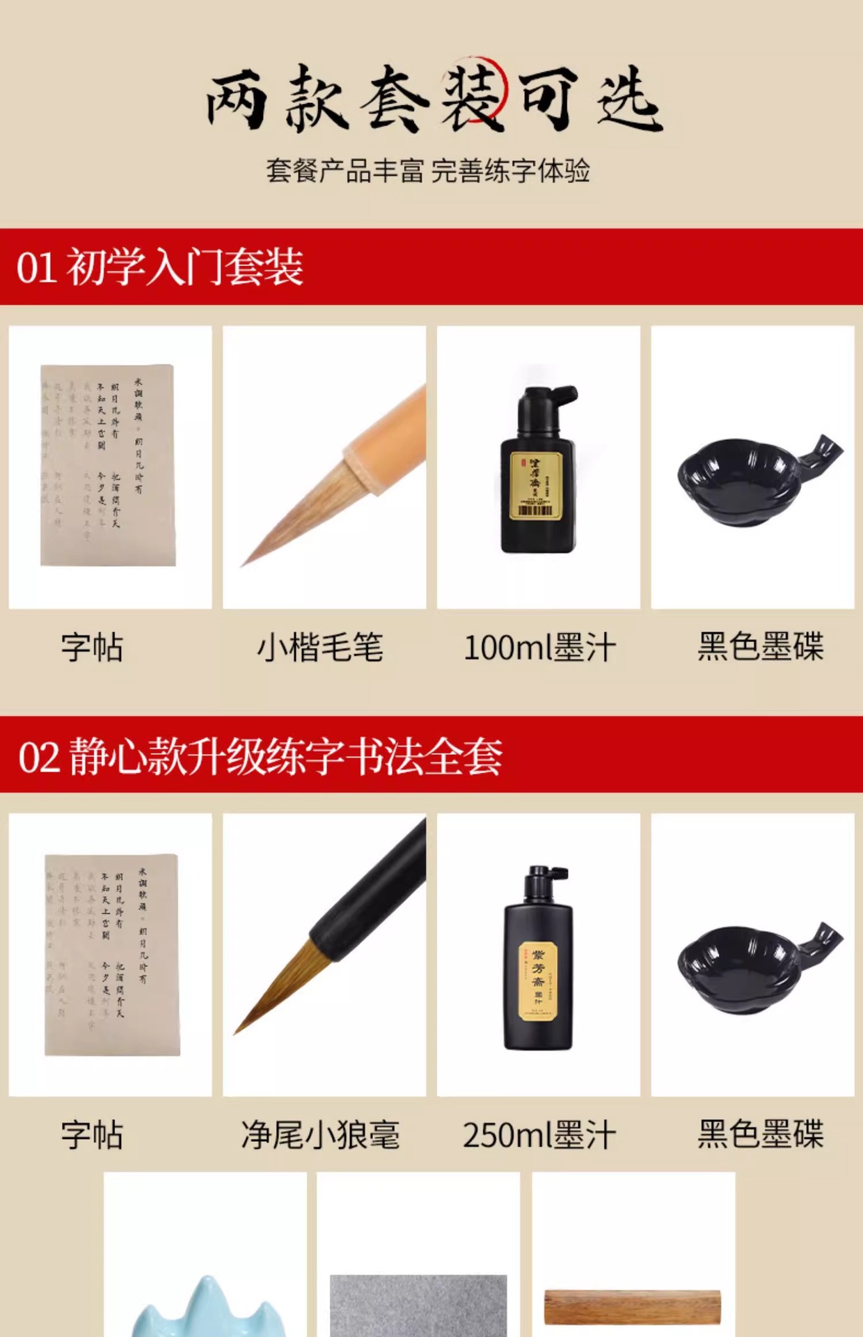 | [shopkeeper's recommendation] special suit for beginners (calligraphy copybook + regular script in small characters writing brush + ink + multifunctional ink plate)(【店长推荐】初学专用套装(字帖+小楷毛笔+墨汁+墨碟)) | USD $19.78 | 1000 piece available |