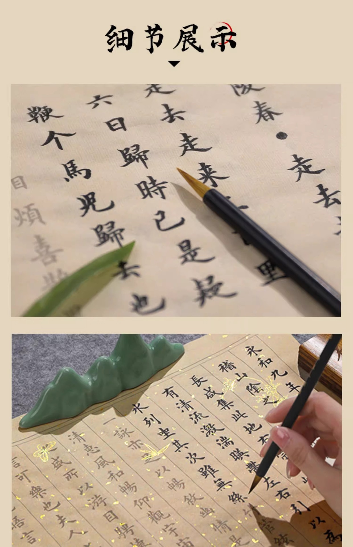| upgraded advanced calligraphy practice full set (calligraphy copybook + regular script in small characters writing brush + ink + multifunctional ink plate + chinese brush pen holder + felt pad + paperweight)(升级版进阶练字全套(字帖+小楷毛笔+墨汁+墨碟+笔山+毛毡+镇尺)) | USD $21.34 | 997 piece available |