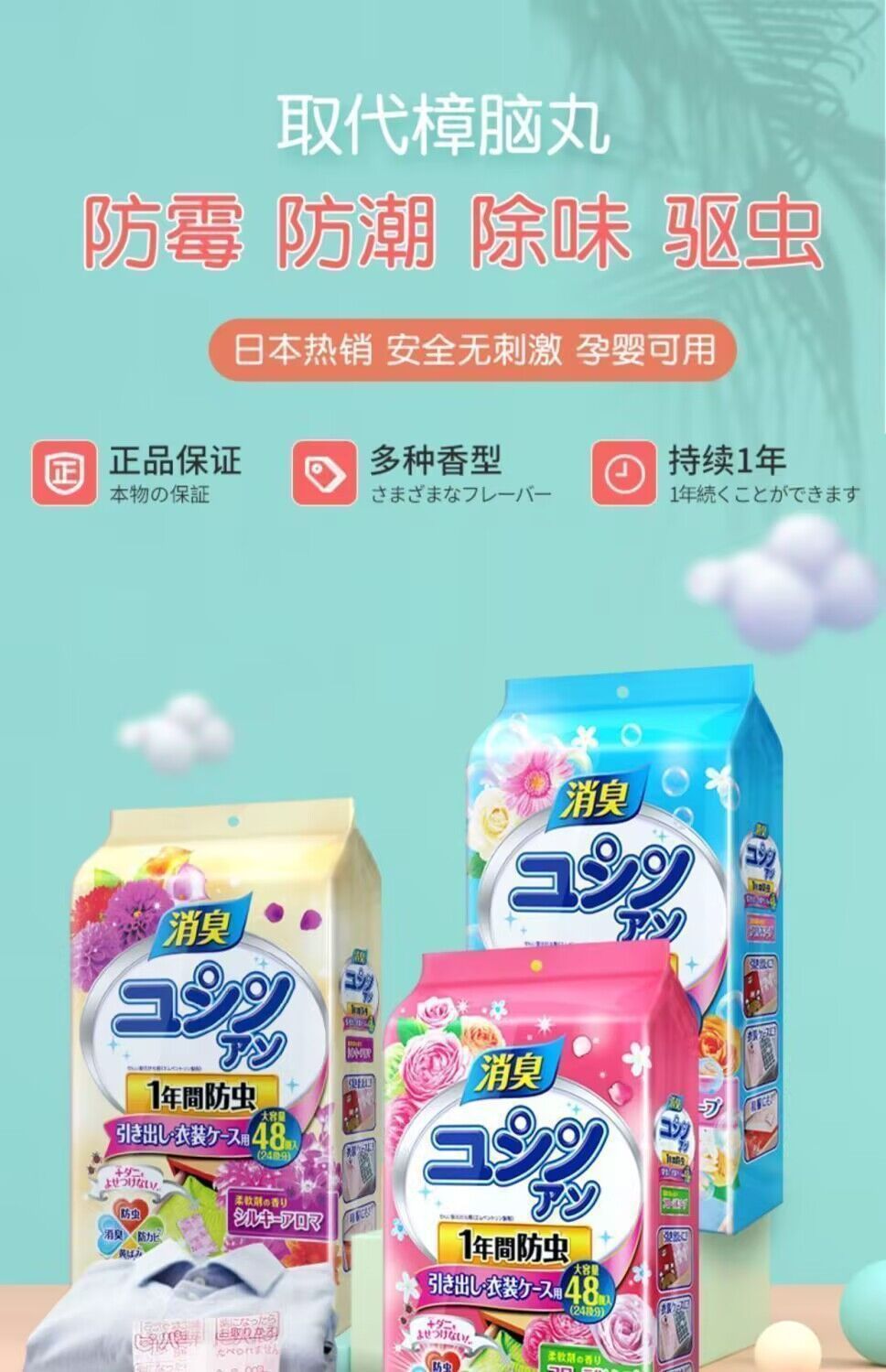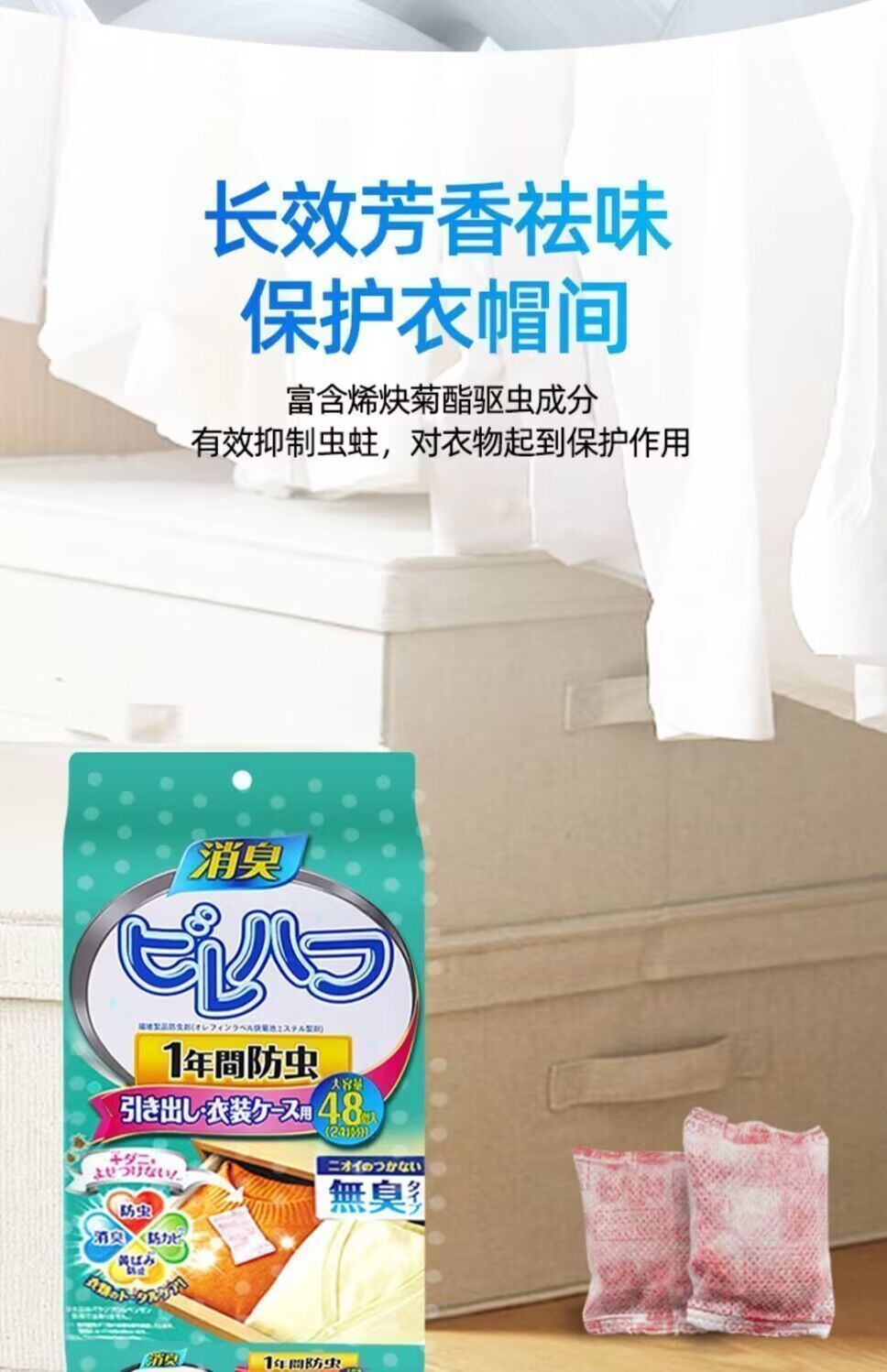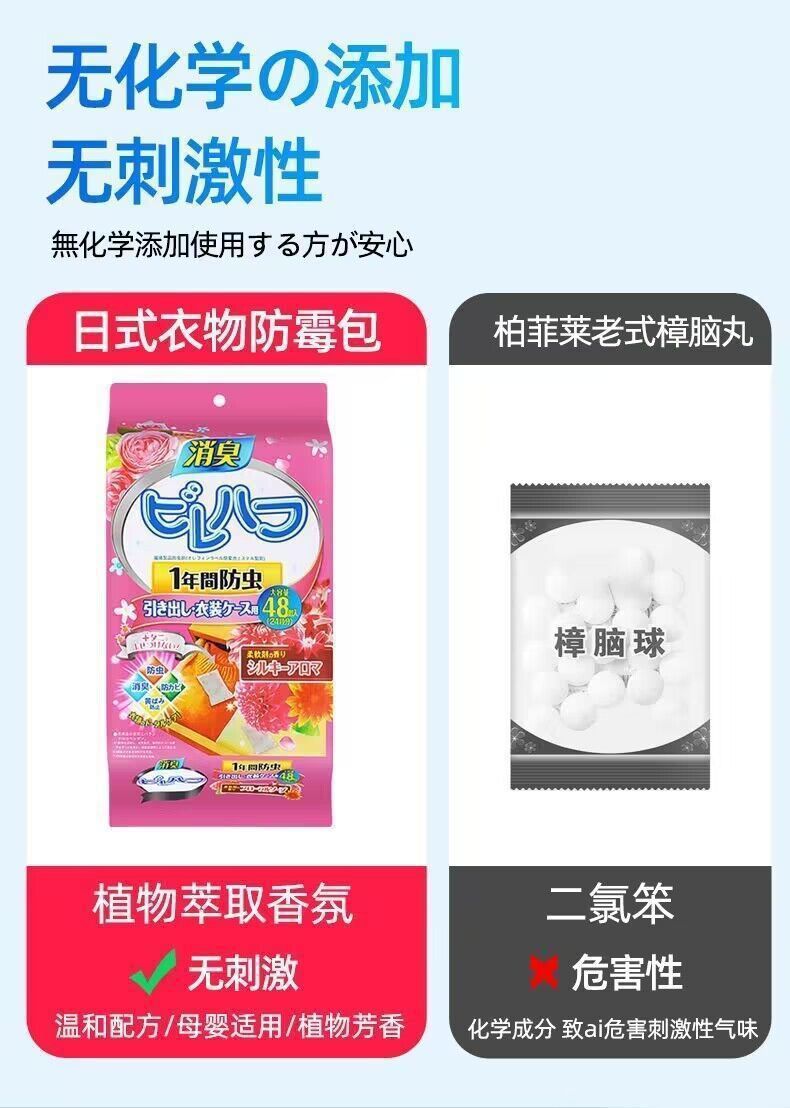 日本花香樟脑丸衣柜防虫防潮防霉家用衣服被子除味持久留香包