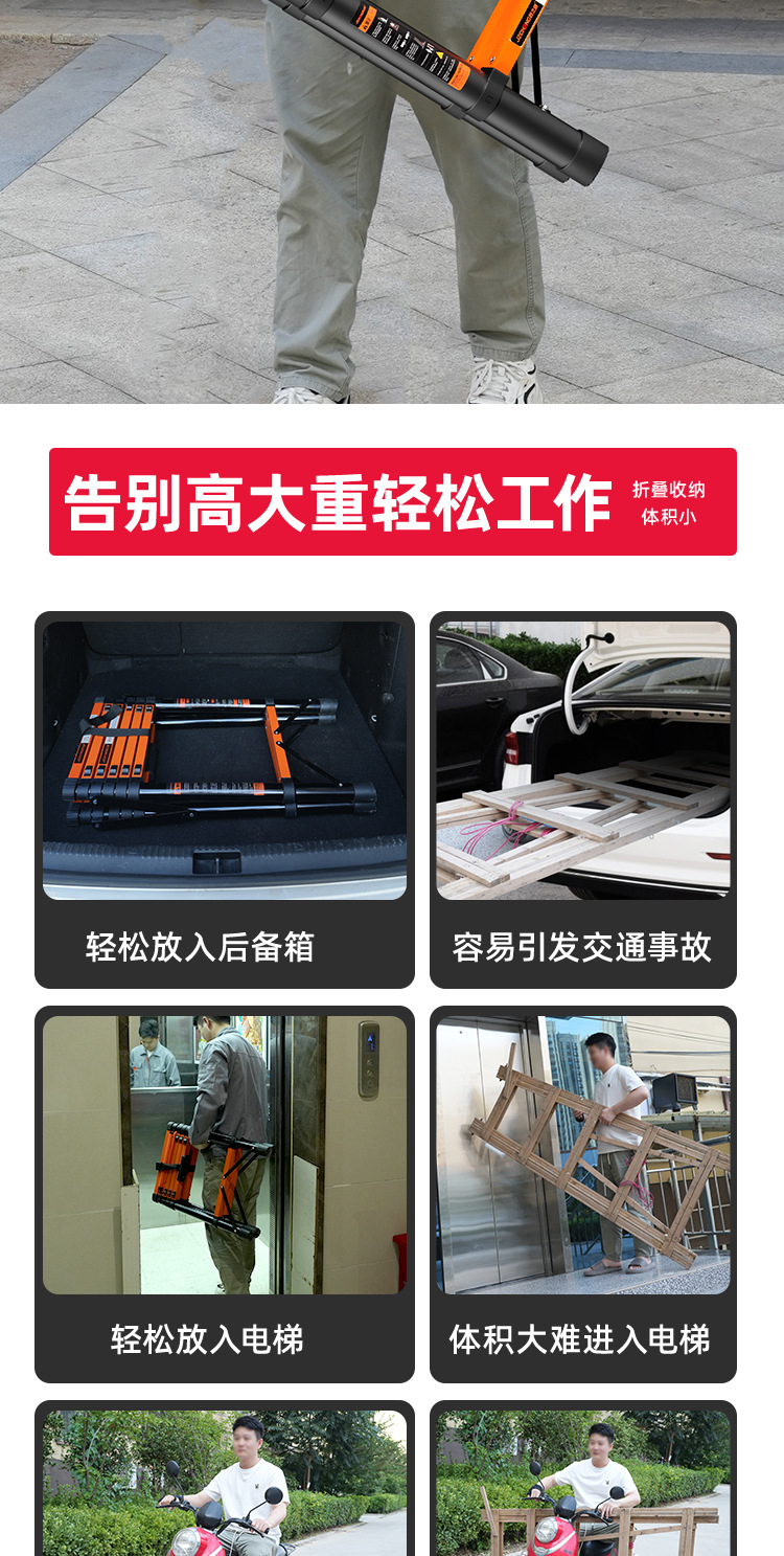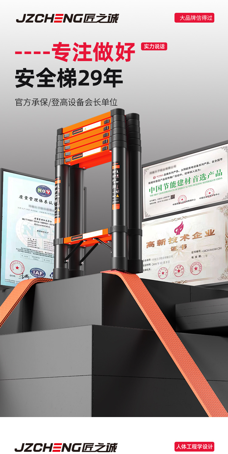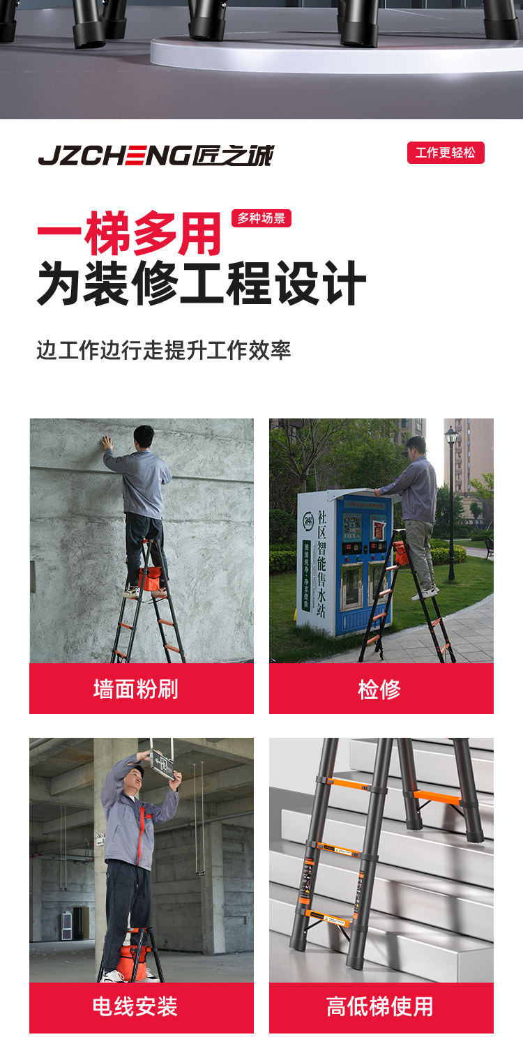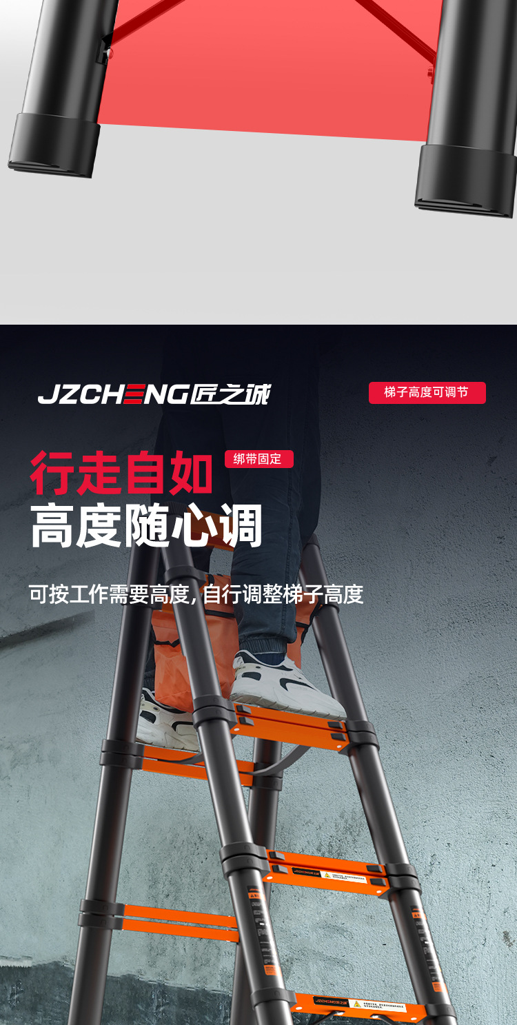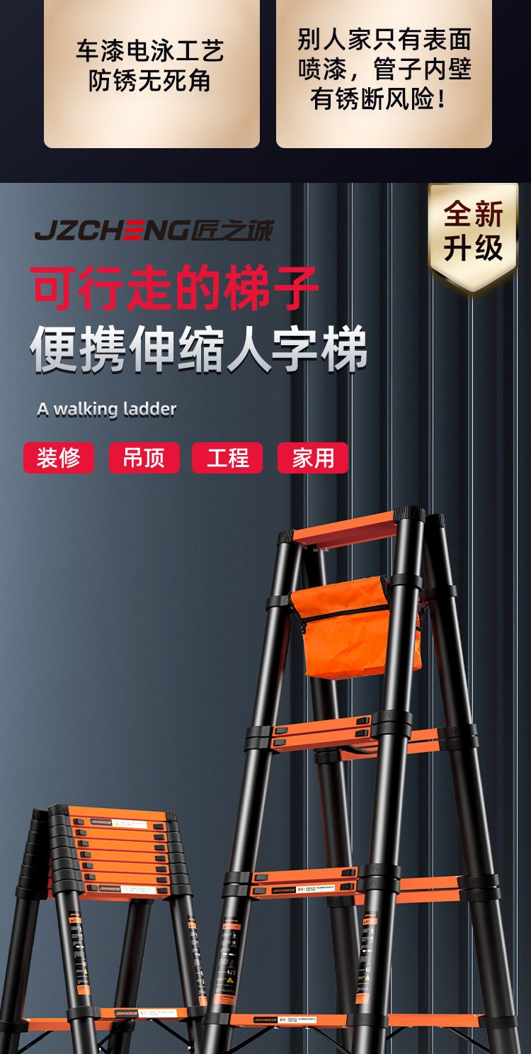 匠之诚梯子人字梯加厚碳钢升降梯折叠梯家用多功能工程梯批发