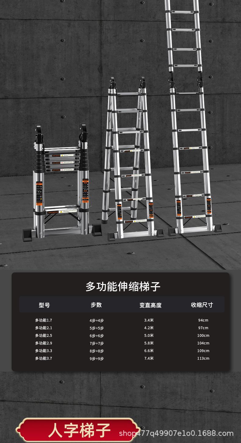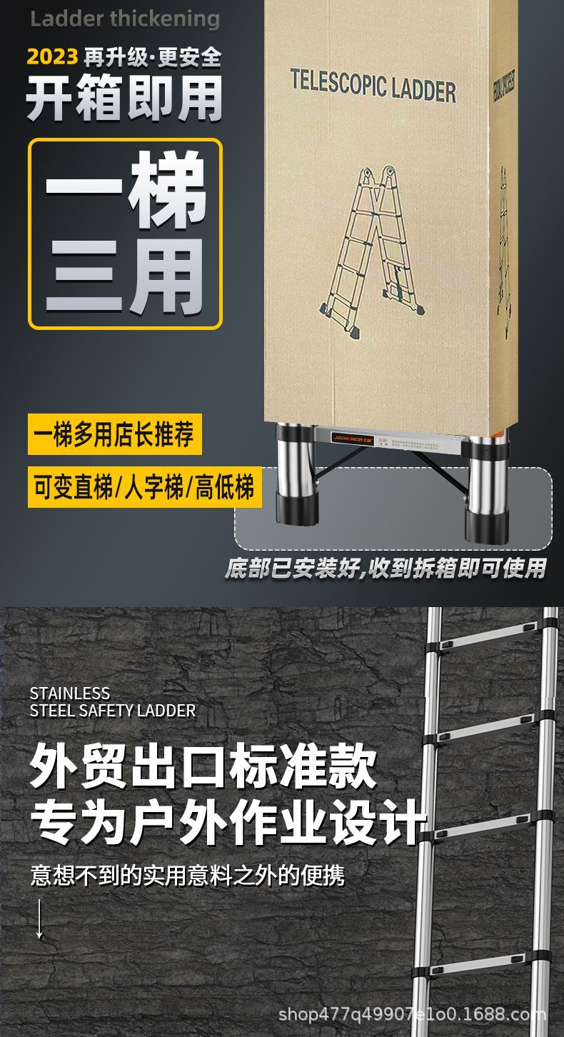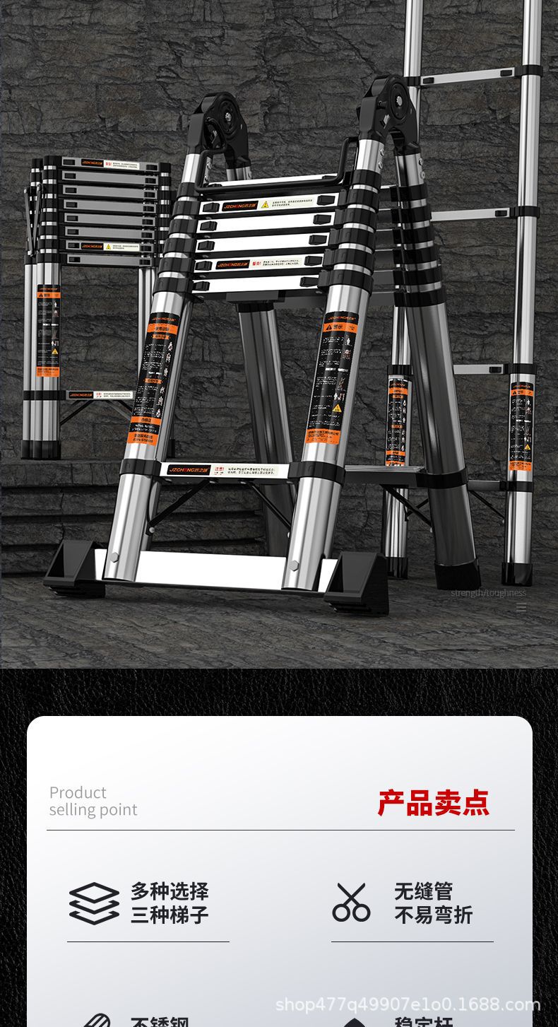定制不锈钢梯子多功能关节两用人字梯折叠家用梯竹节升降楼梯