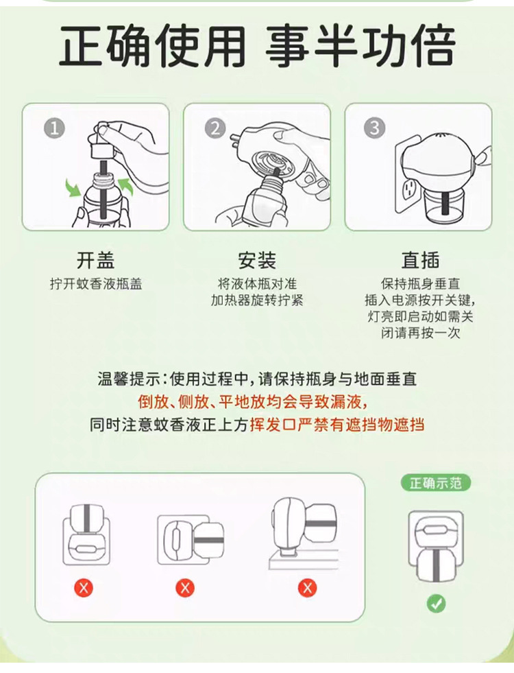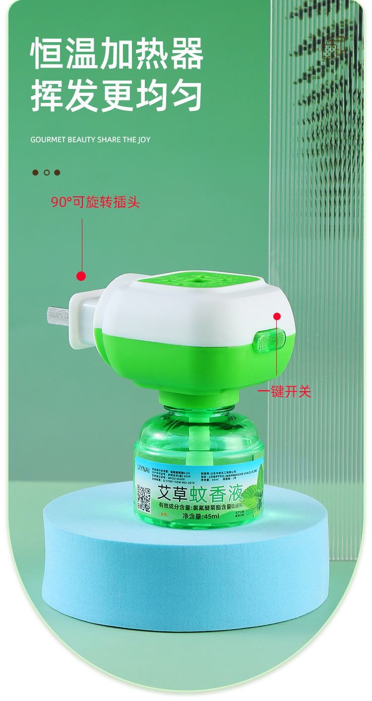电热蚊香液家用艾草驱蚊液无烟无味恒温加热器全家适用