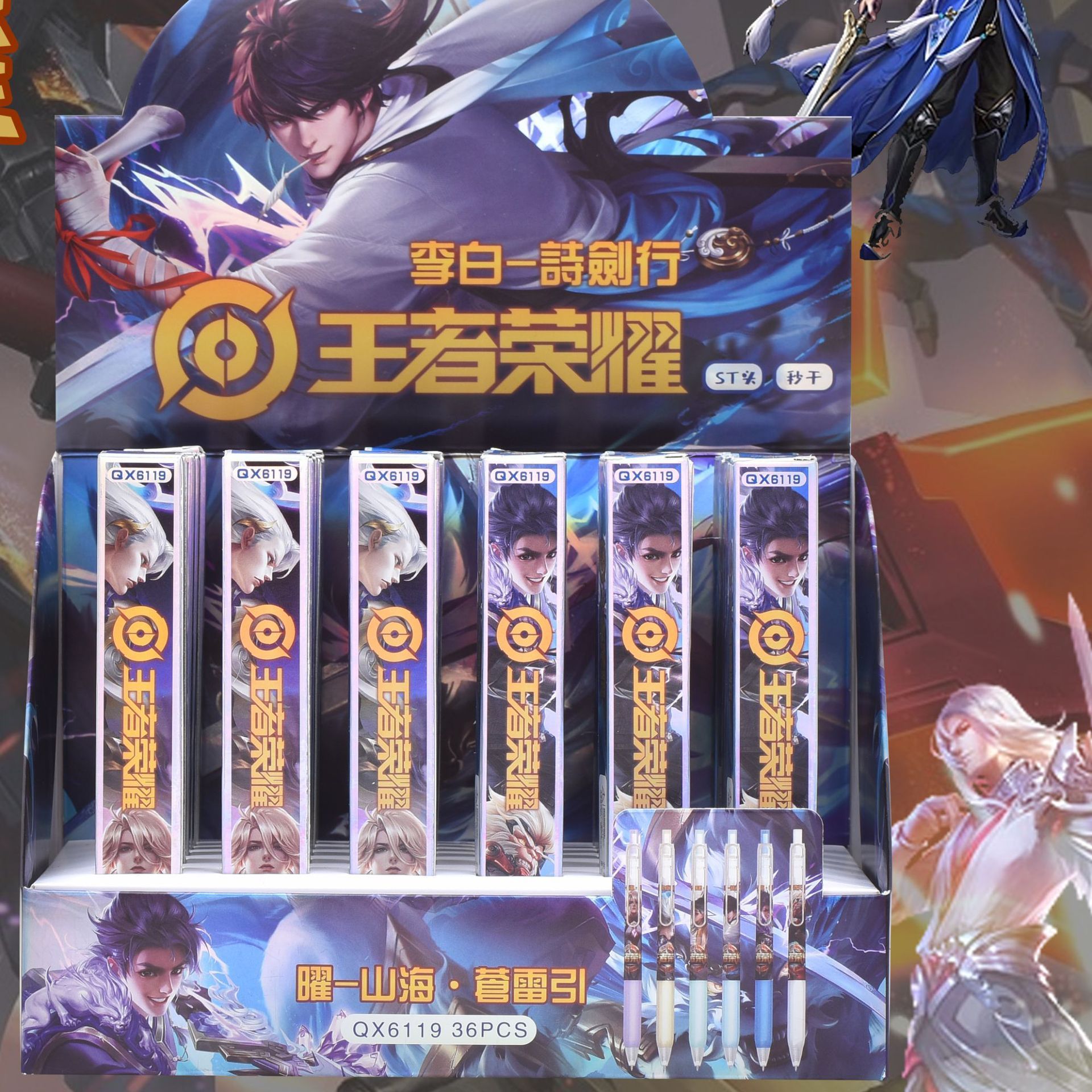 新款卡通水笔限定黑色王者荣耀签字笔元神动漫按动ST盲盒中性笔