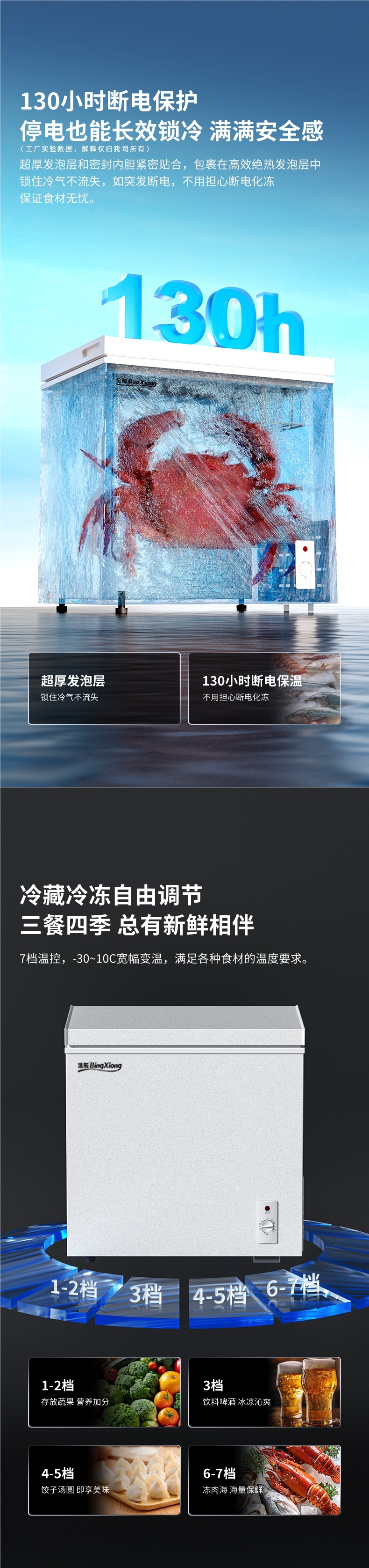 一级能效冰熊小冰柜家用小型全冷冻箱冷藏两用迷你无霜商用冷柜