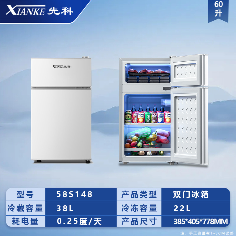 先科家用双门电冰箱速冻保鲜出租屋迷你冷柜一级能耗节能静音冷藏