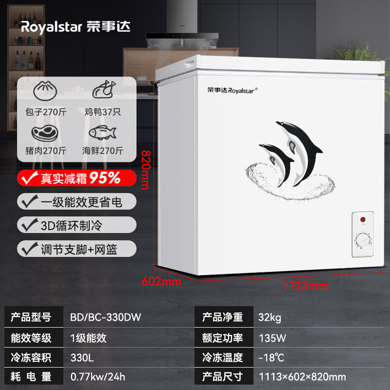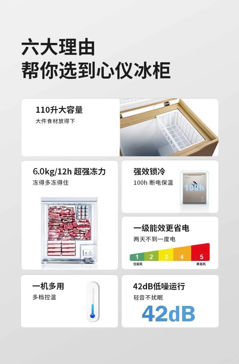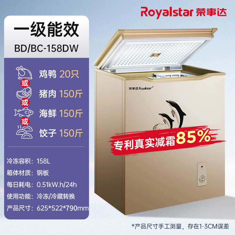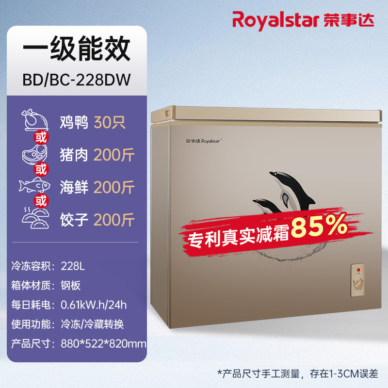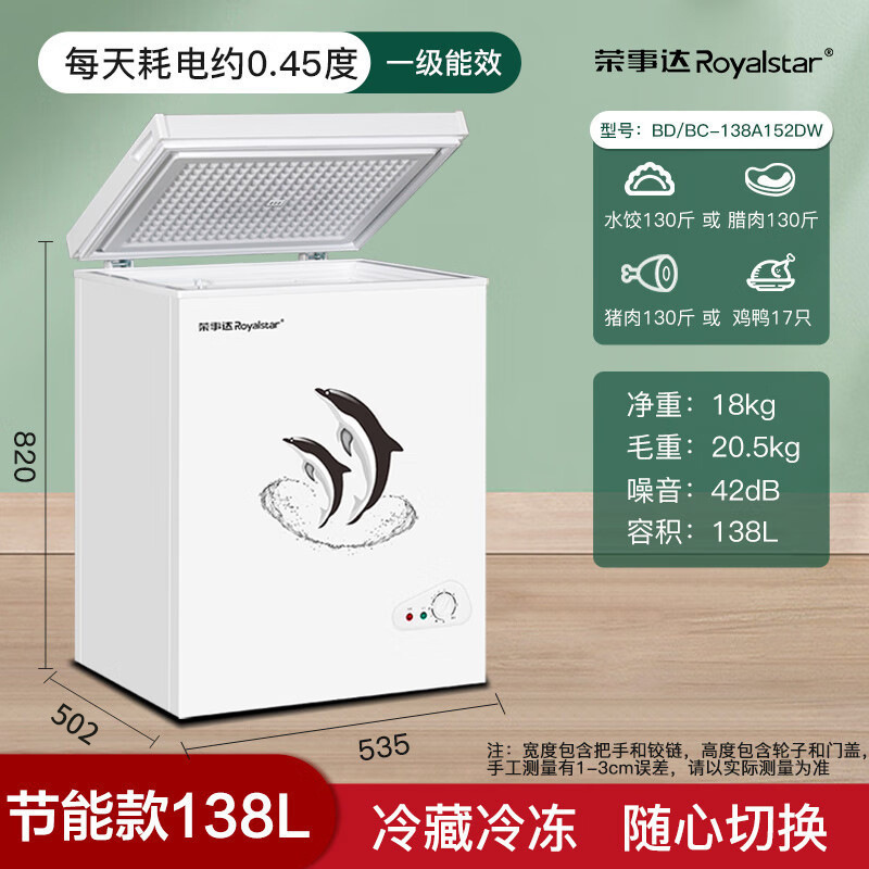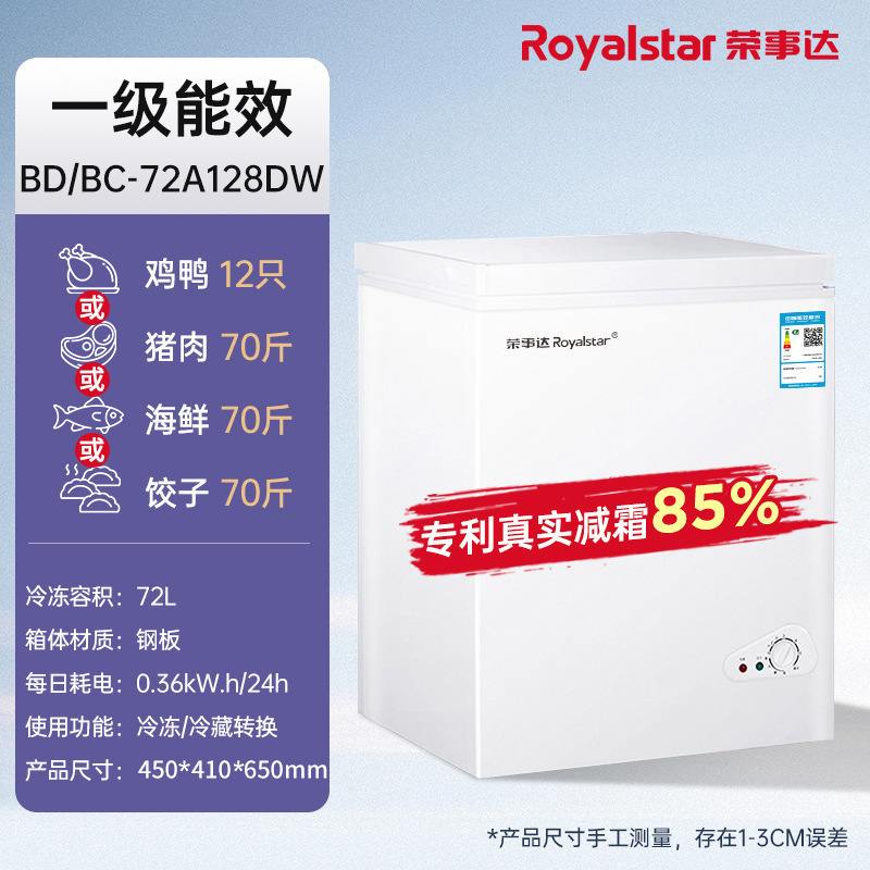 荣事达冰柜家用一级小型冷冻保鲜小冰柜小冷柜冷藏微霜卧式小冰箱