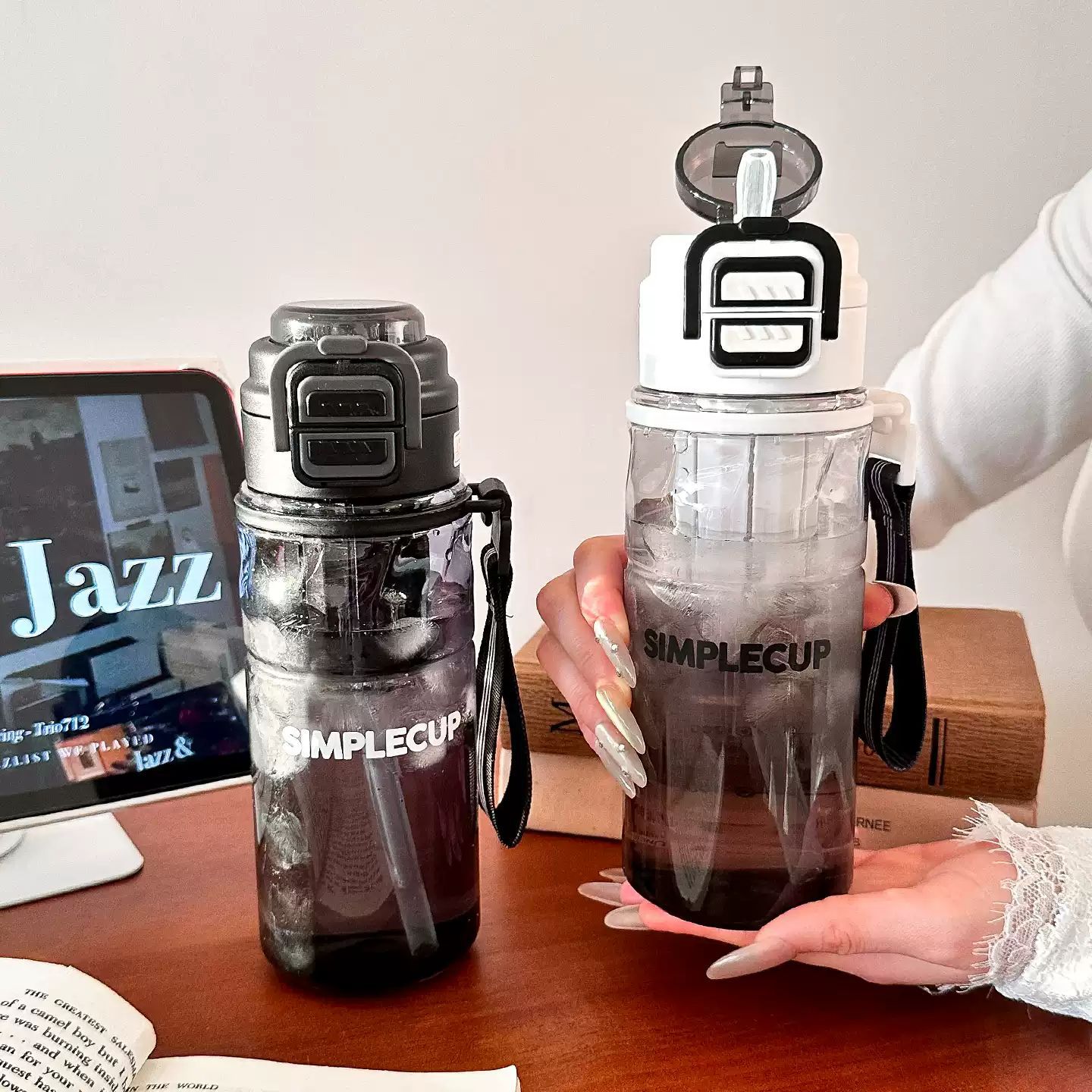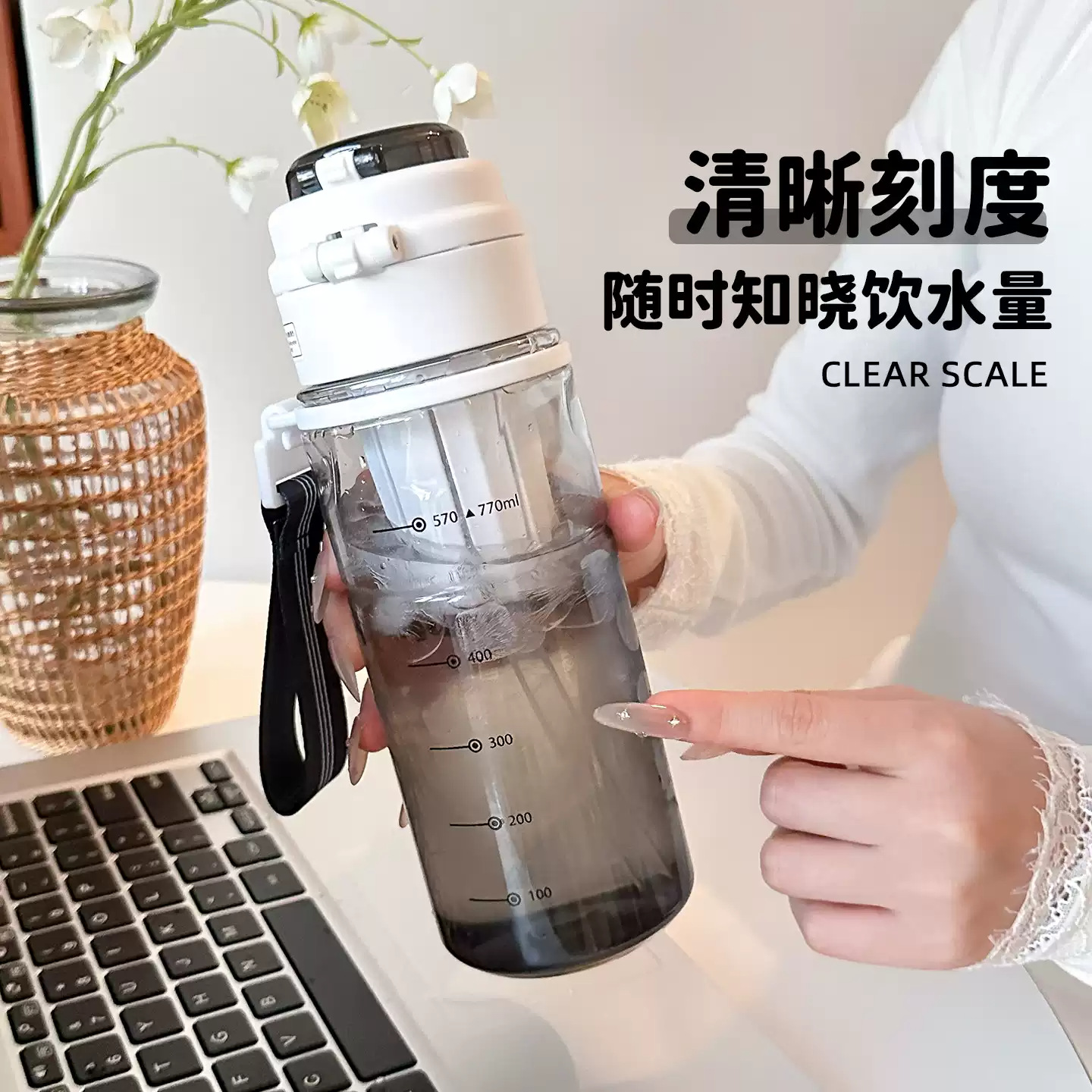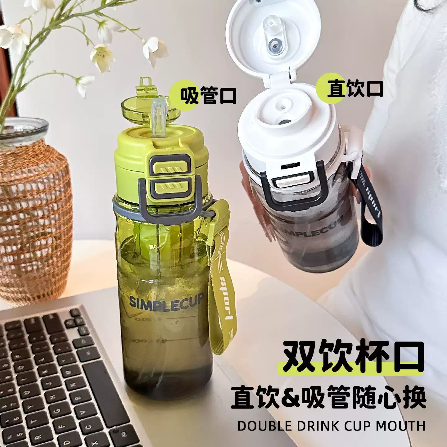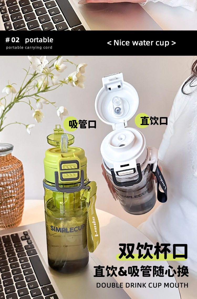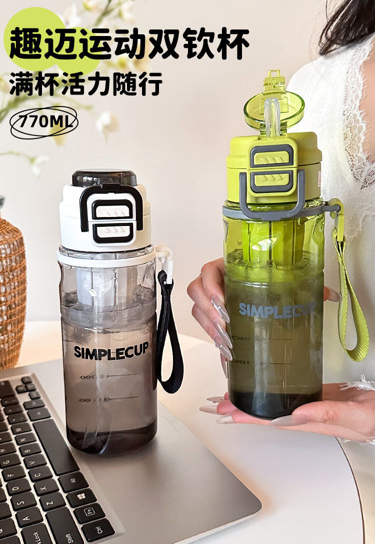 简约运动水杯塑料户外健身双饮吸管杯大容量便携带滤网防摔杯子