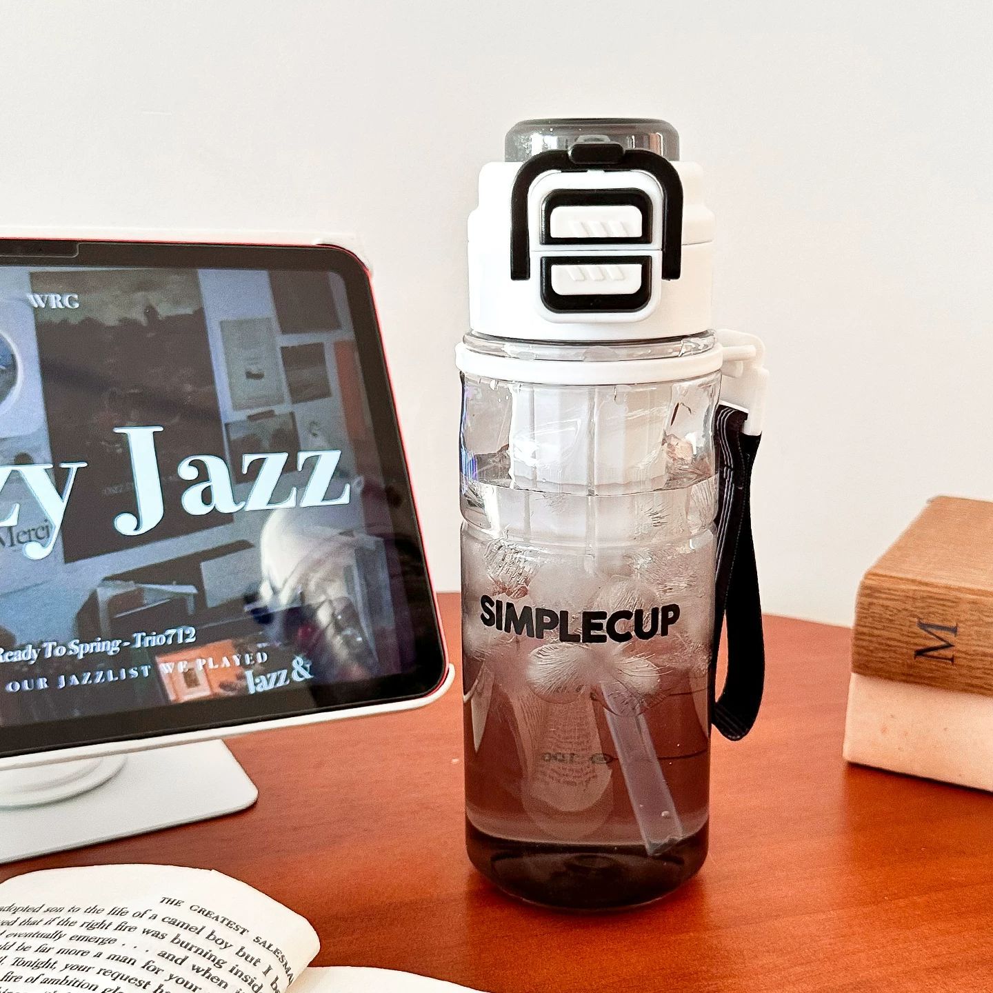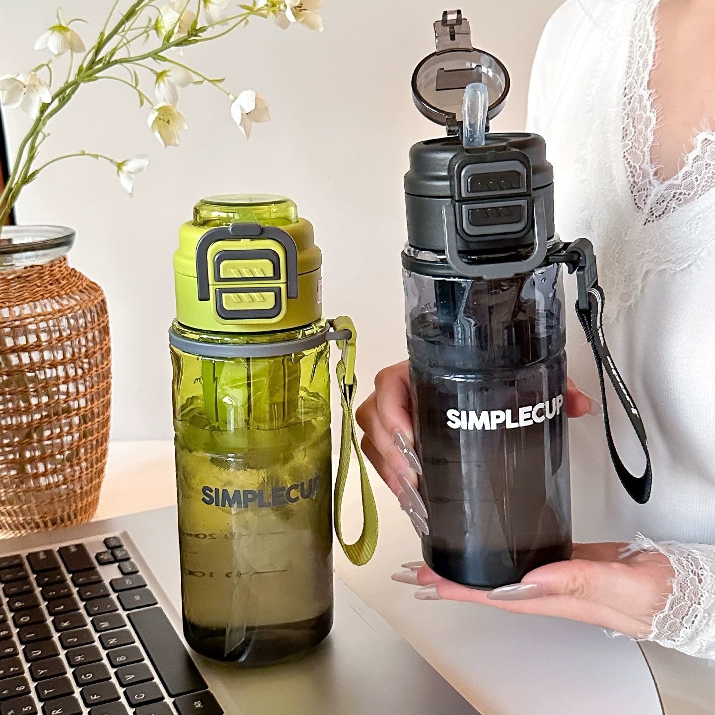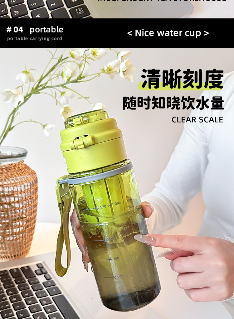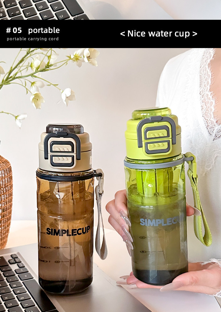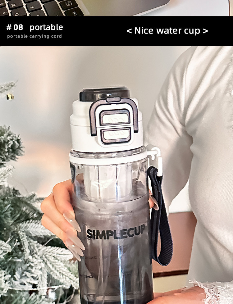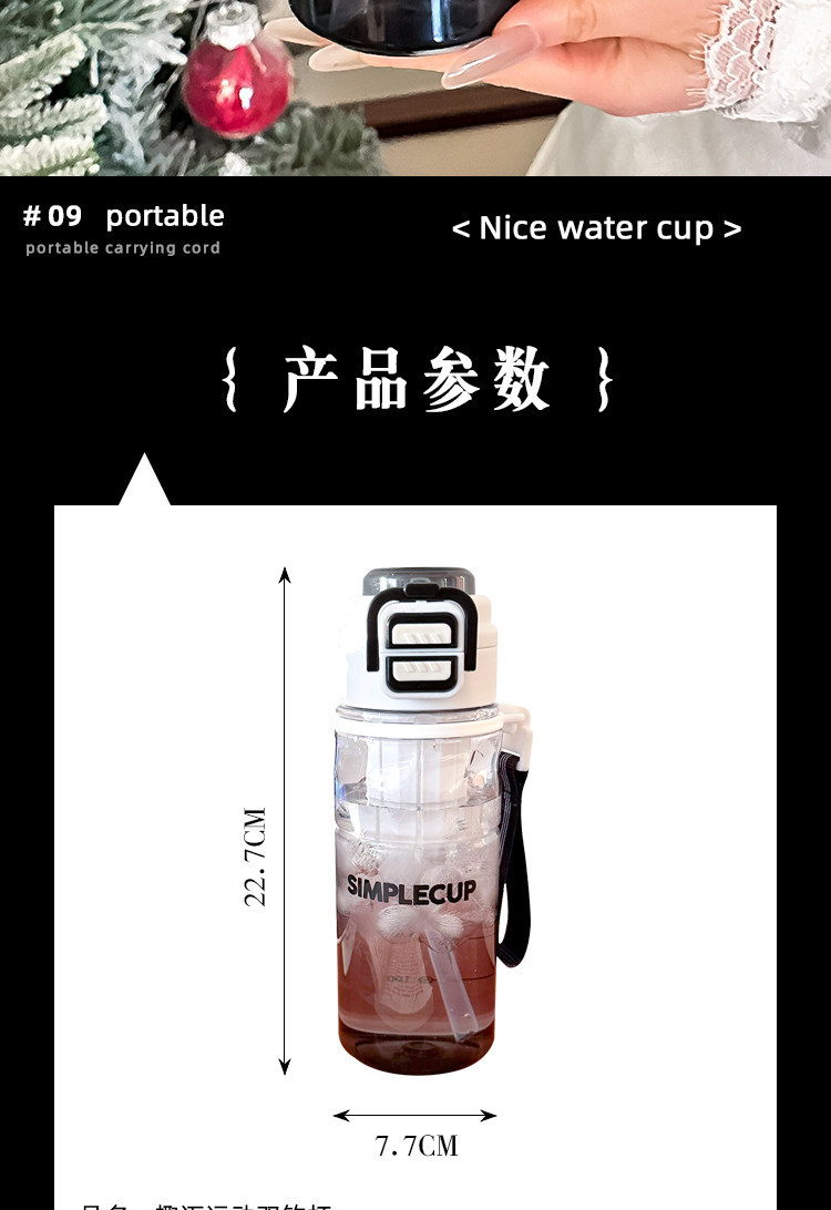 简约运动水杯塑料户外健身双饮吸管杯大容量便携带滤网防摔杯子