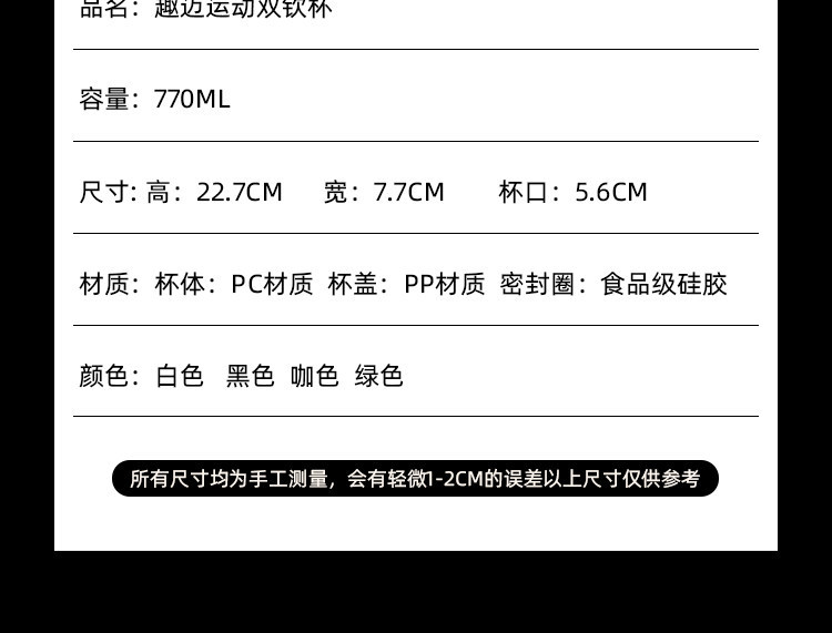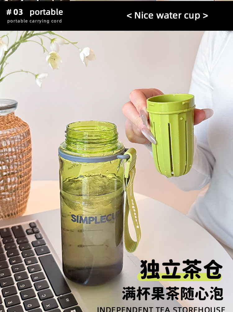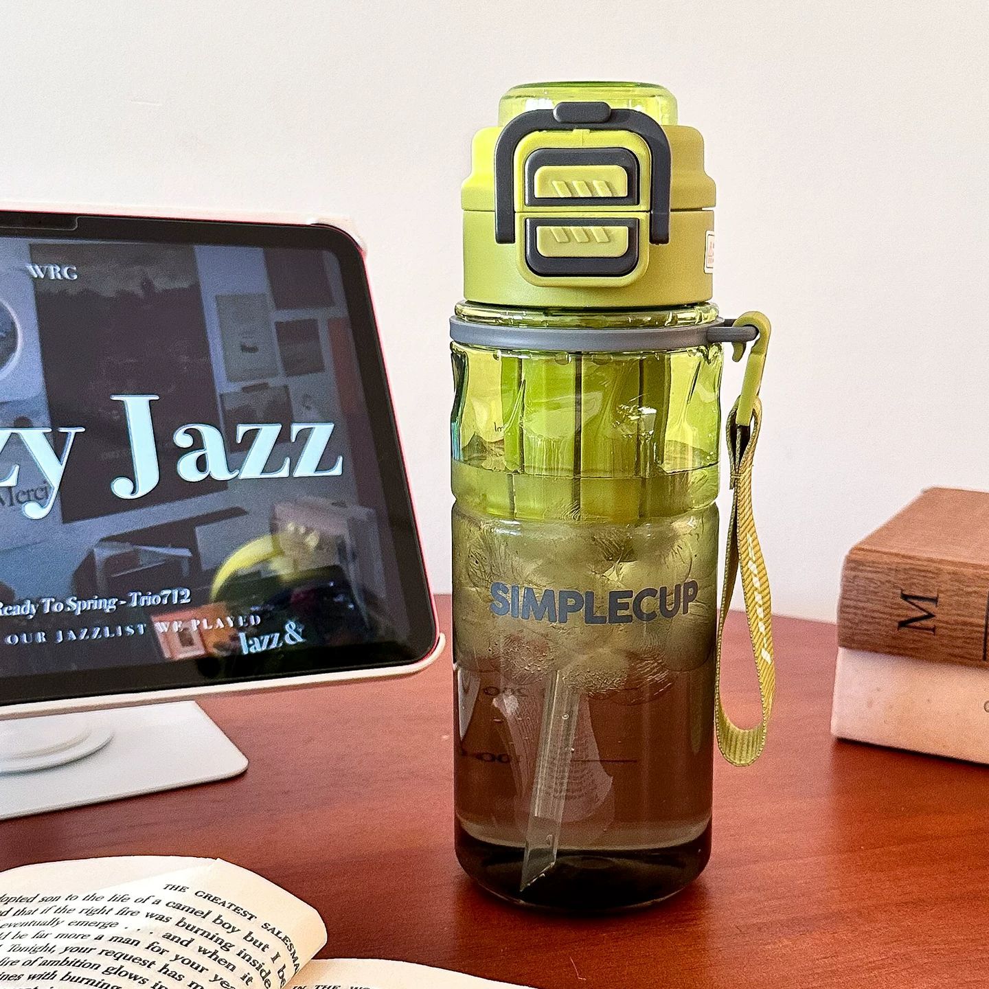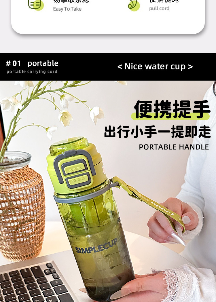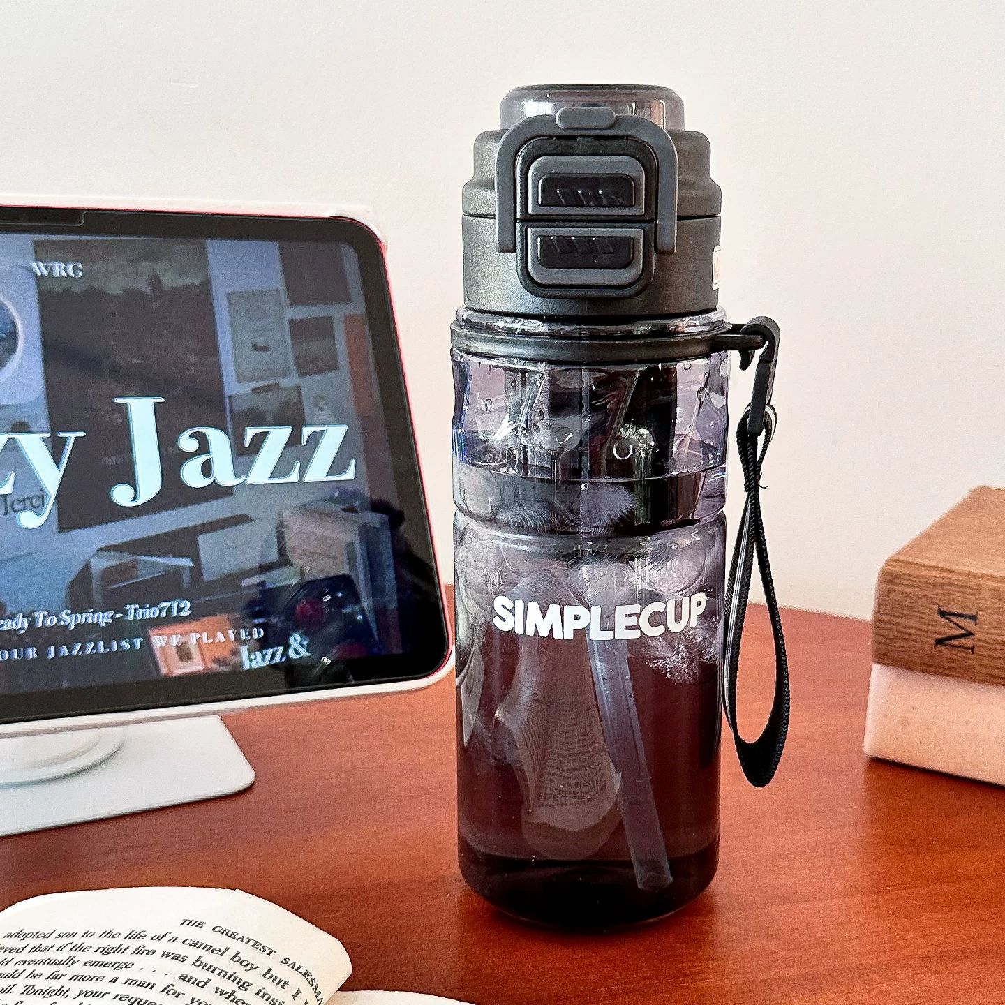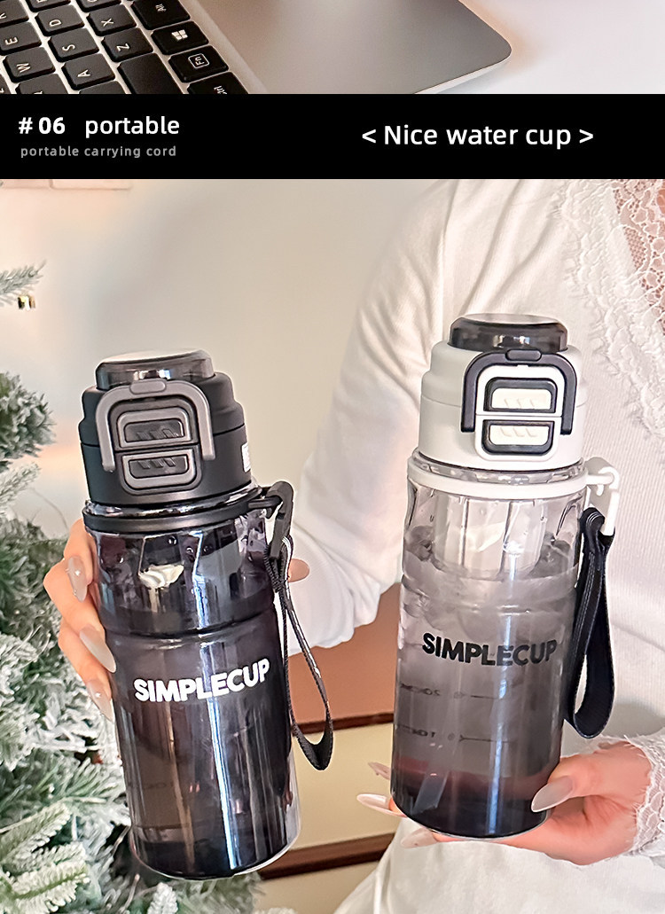 简约运动水杯塑料户外健身双饮吸管杯大容量便携带滤网防摔杯子