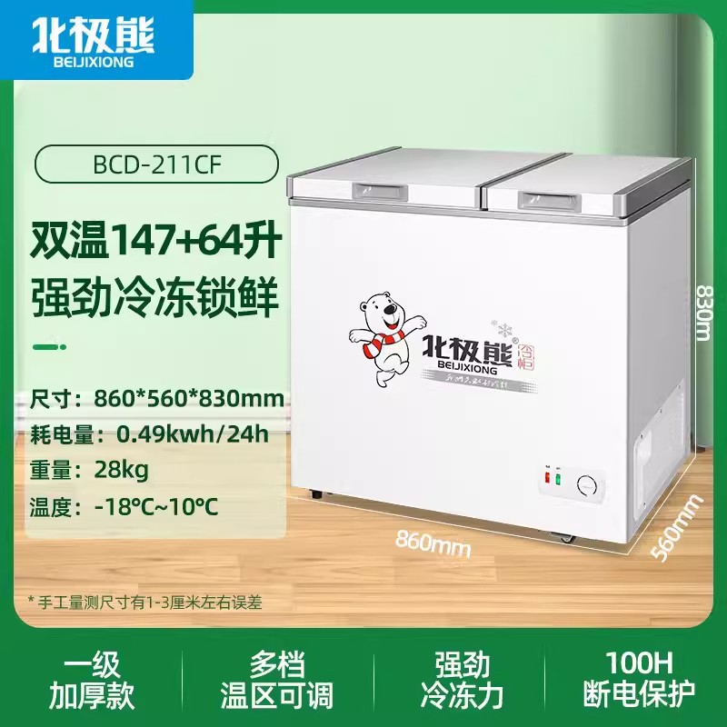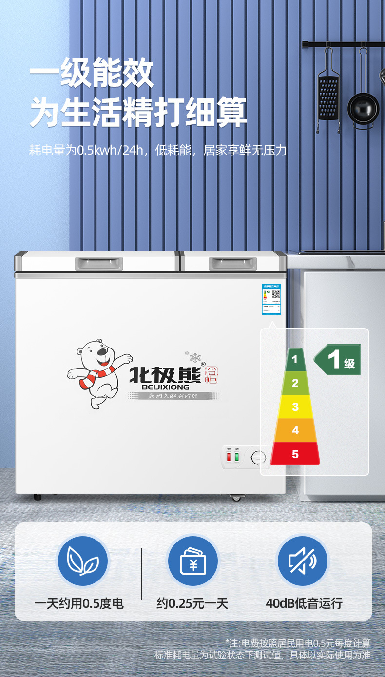 北极熊冷柜家用小型冷冻保鲜冷藏双用小冰柜一级节能单温双温卧式