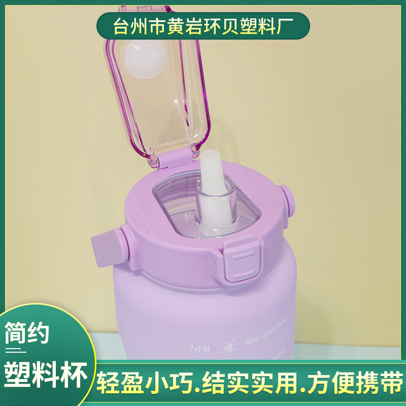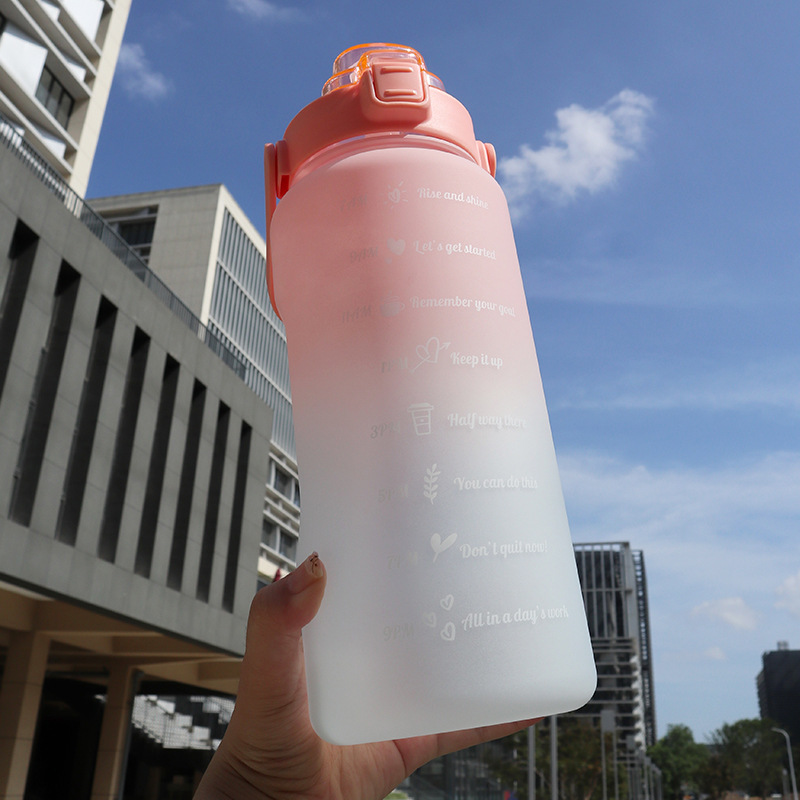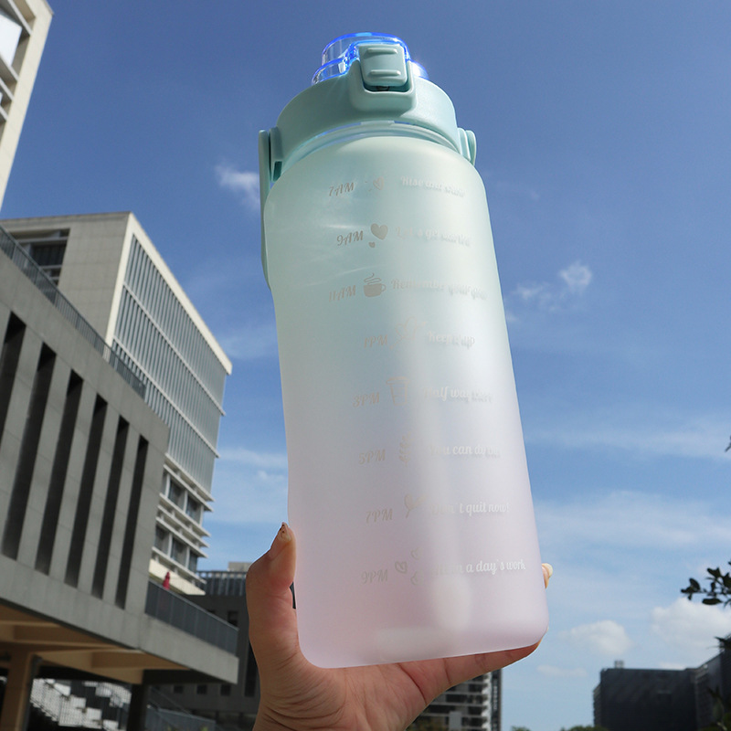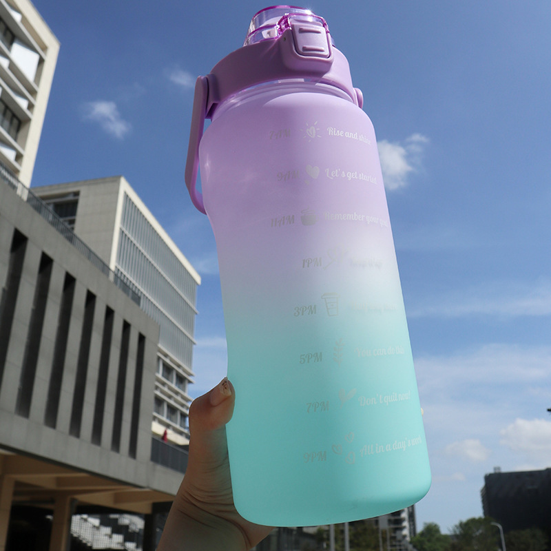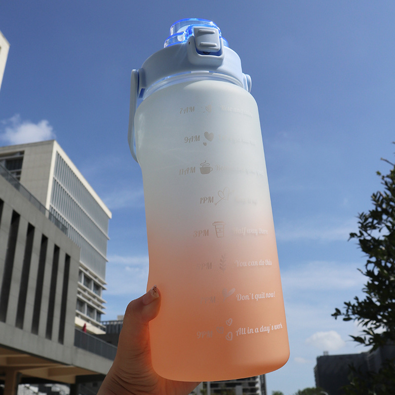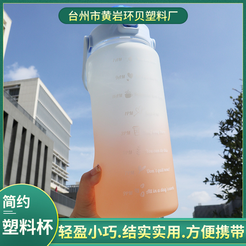 夏季户外2L大容量运动水壶渐变色健身手提水杯弹盖吸管饮水壶批发