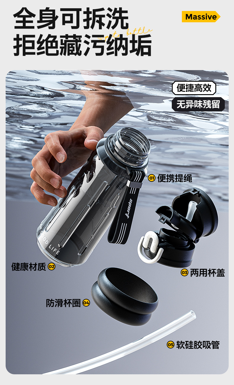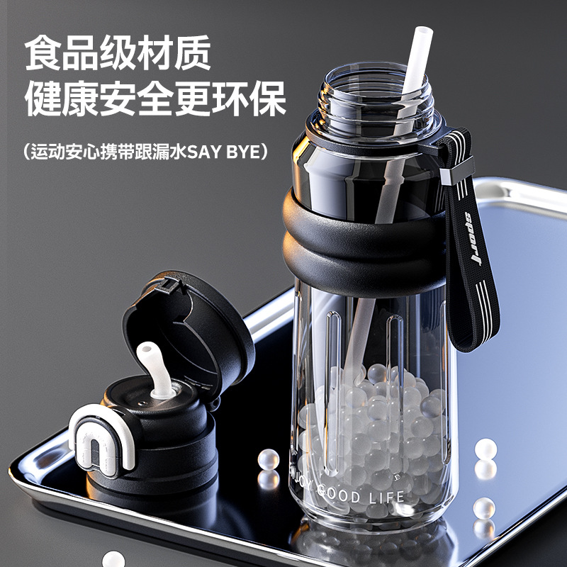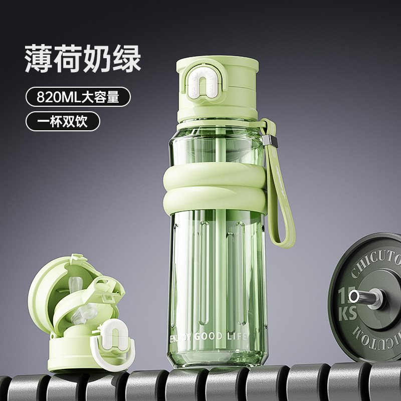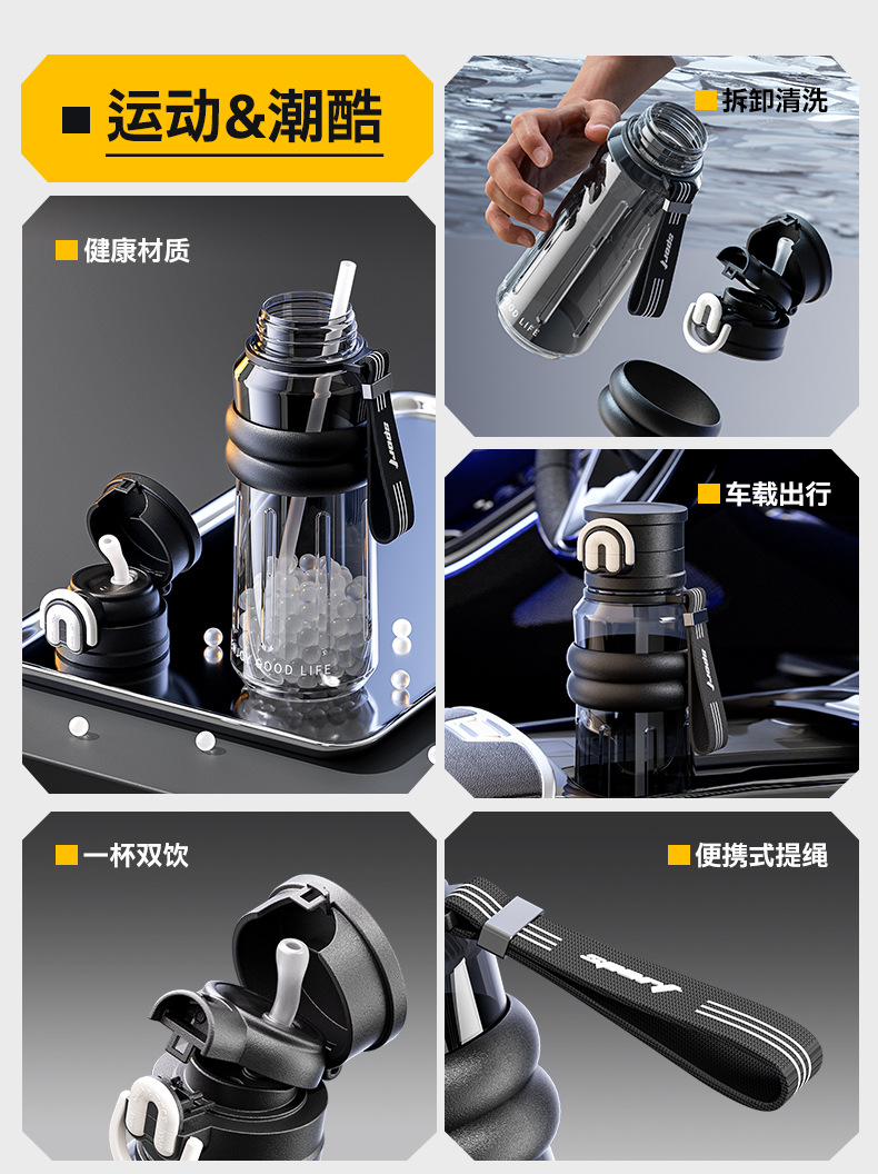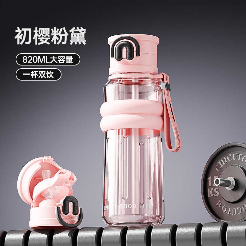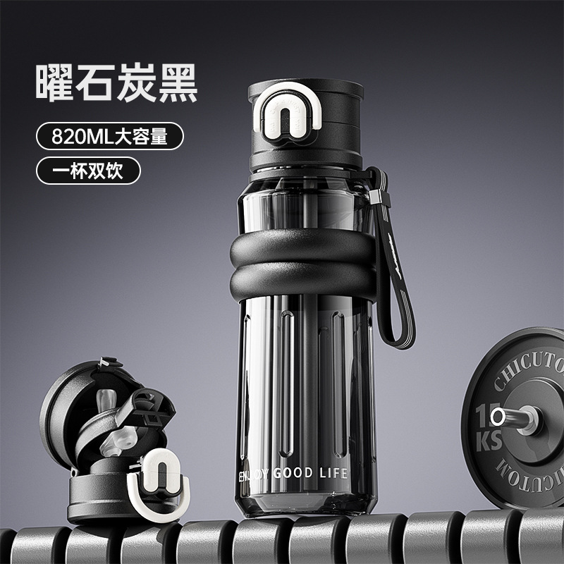 夏季新款大容量高颜值双饮运动水杯男女生健身户外便携塑料吸管杯