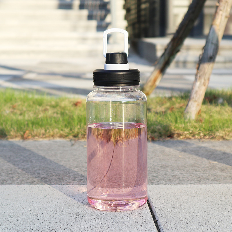 时尚新款1L大容量运动水壶透明健身手提水杯旋盖吨吨杯工厂批发