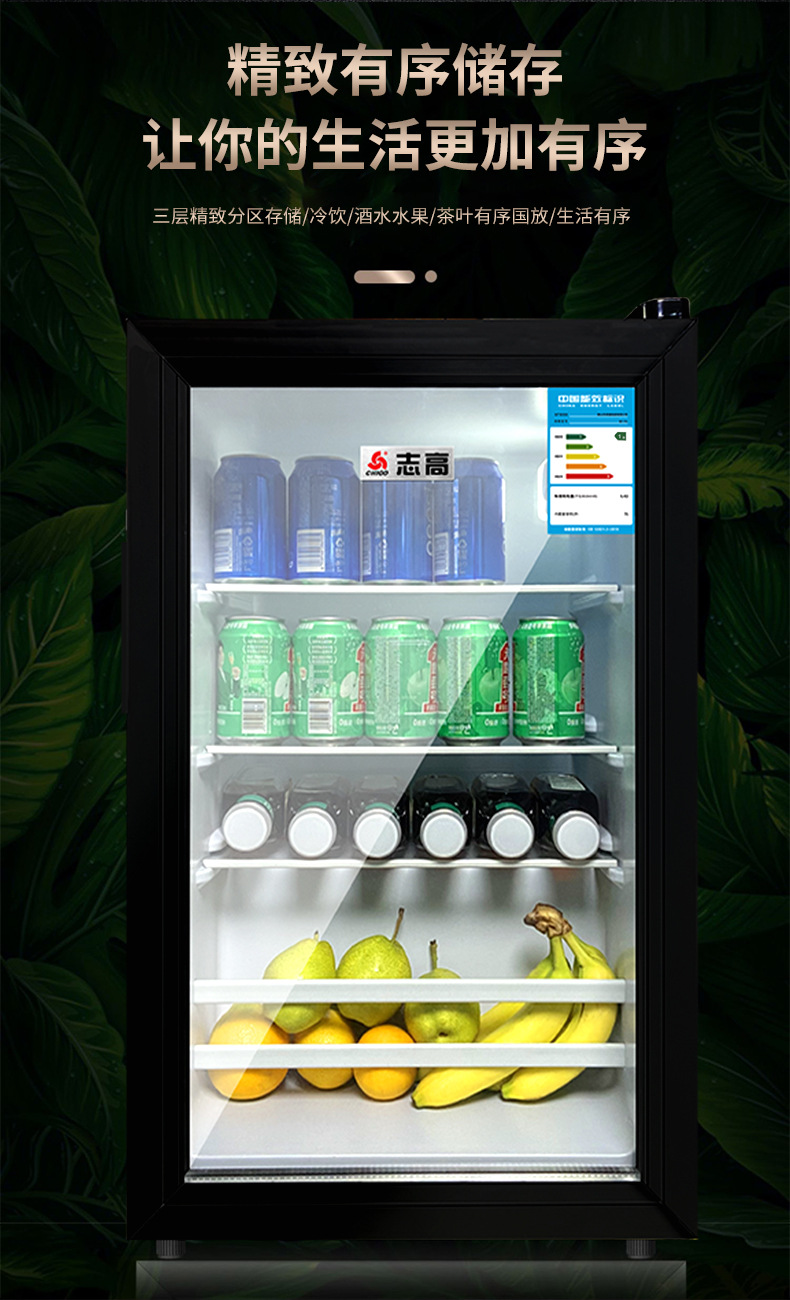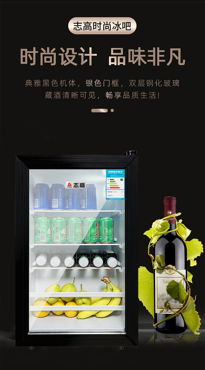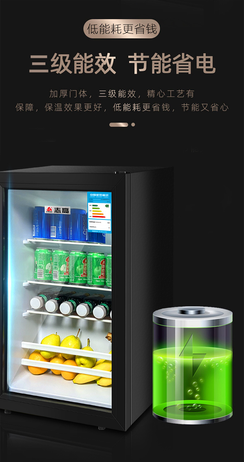 110V美规出口冰吧小冰箱展示柜酒店透明门冷藏微冷冻小型冰柜