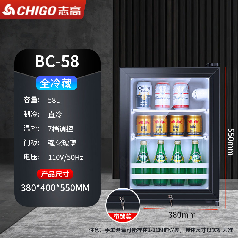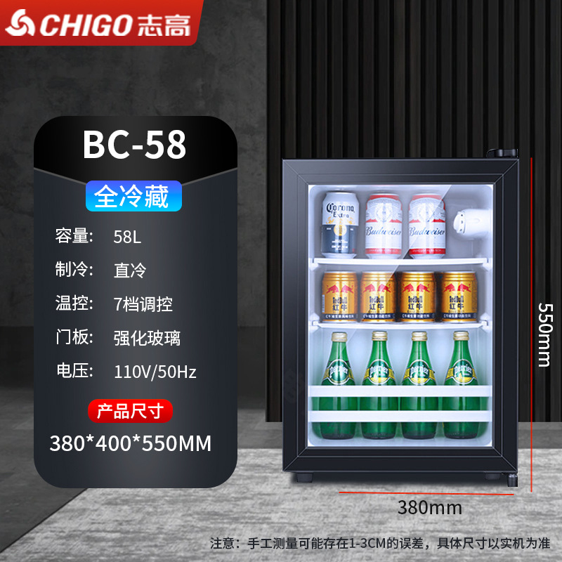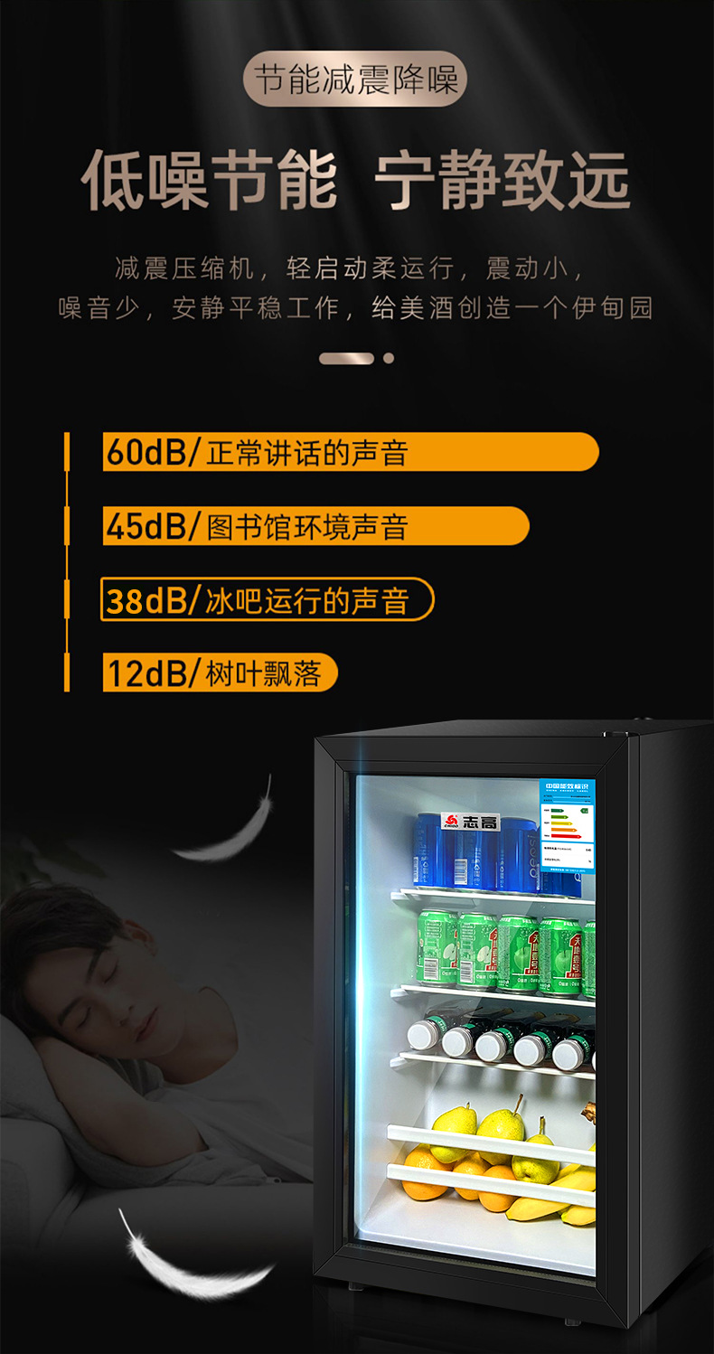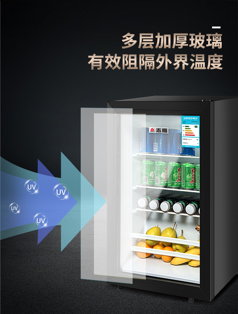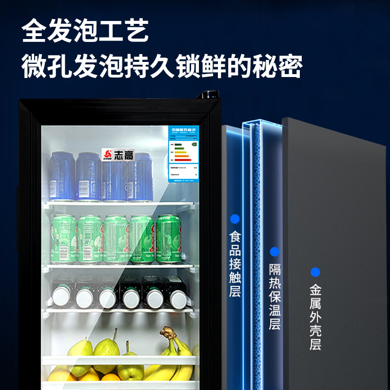 110V美规出口冰吧小冰箱展示柜酒店透明门冷藏微冷冻小型冰柜
