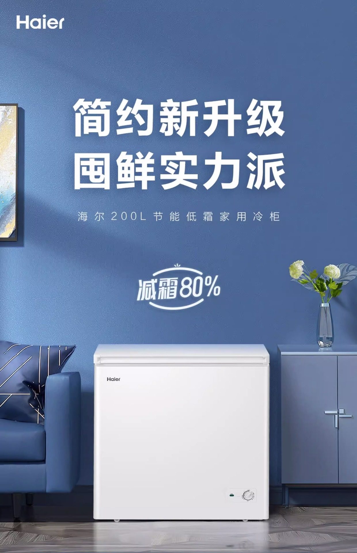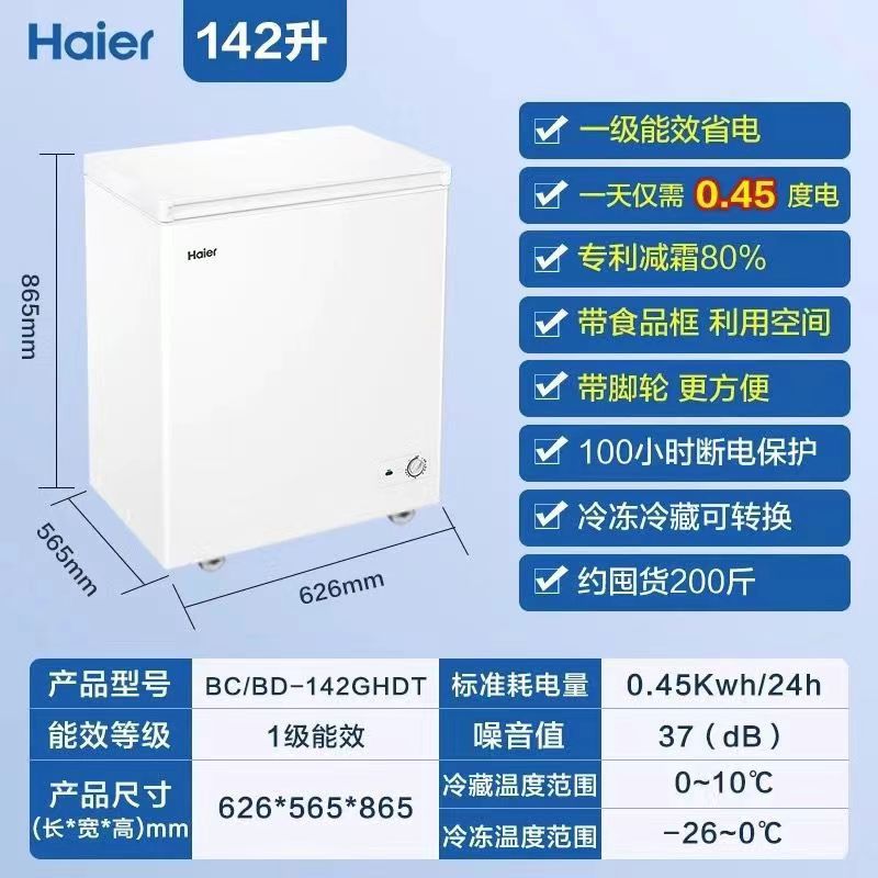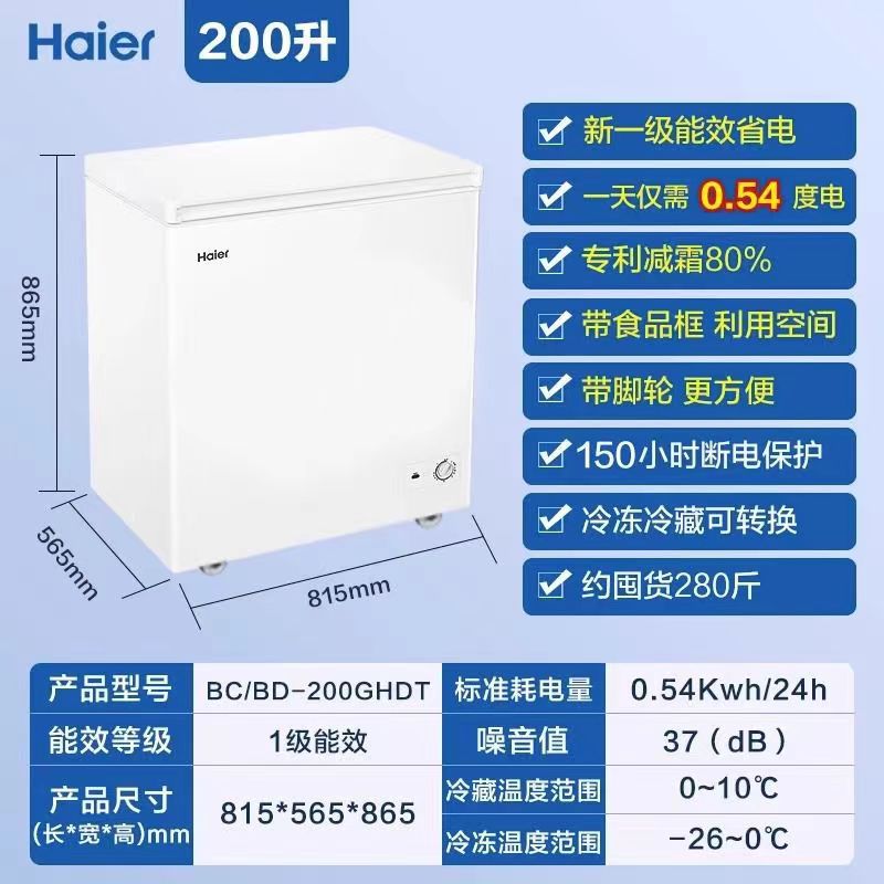 Haier/海尔BCBD-200GHDT 小冰柜家用冷柜保鲜冷冻雪糕单温减霜冰