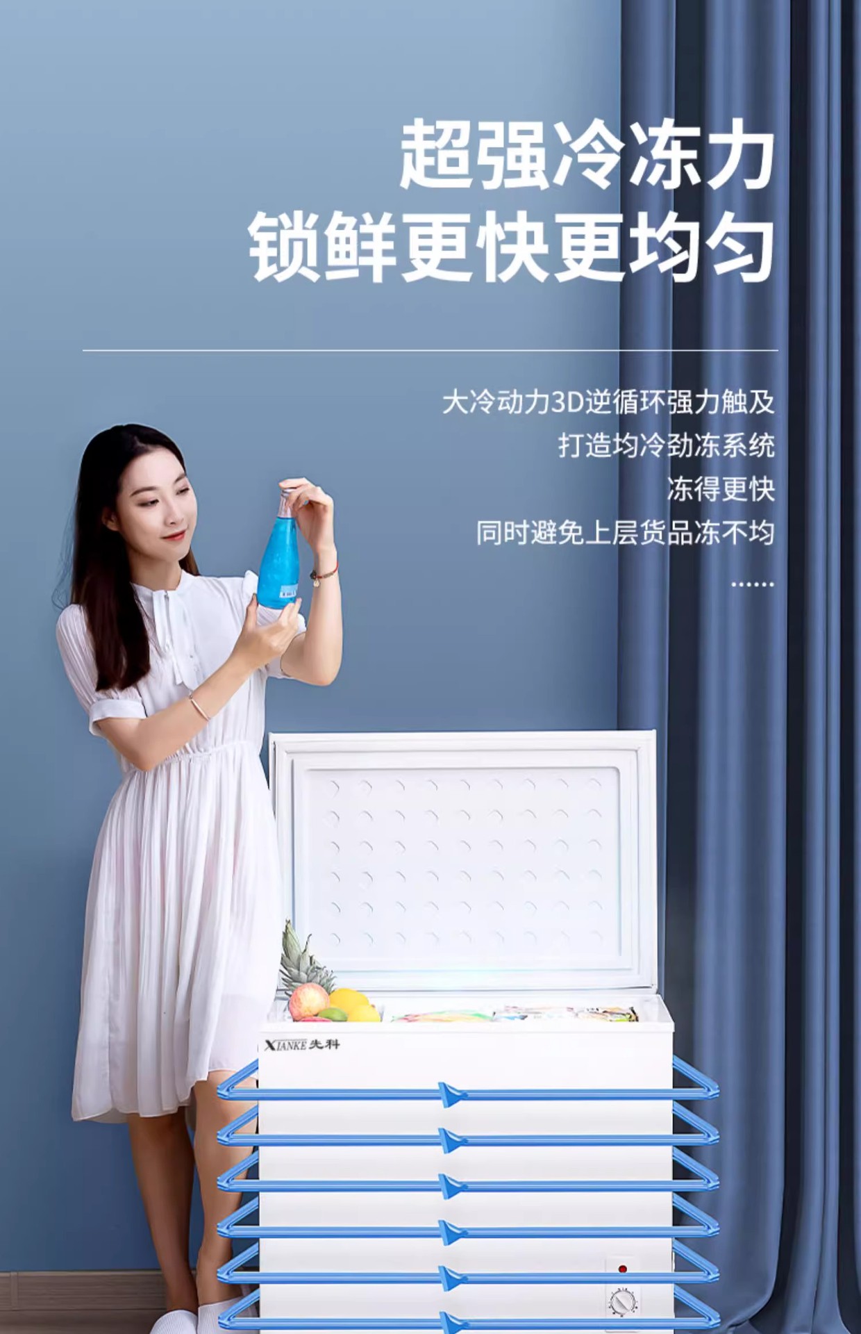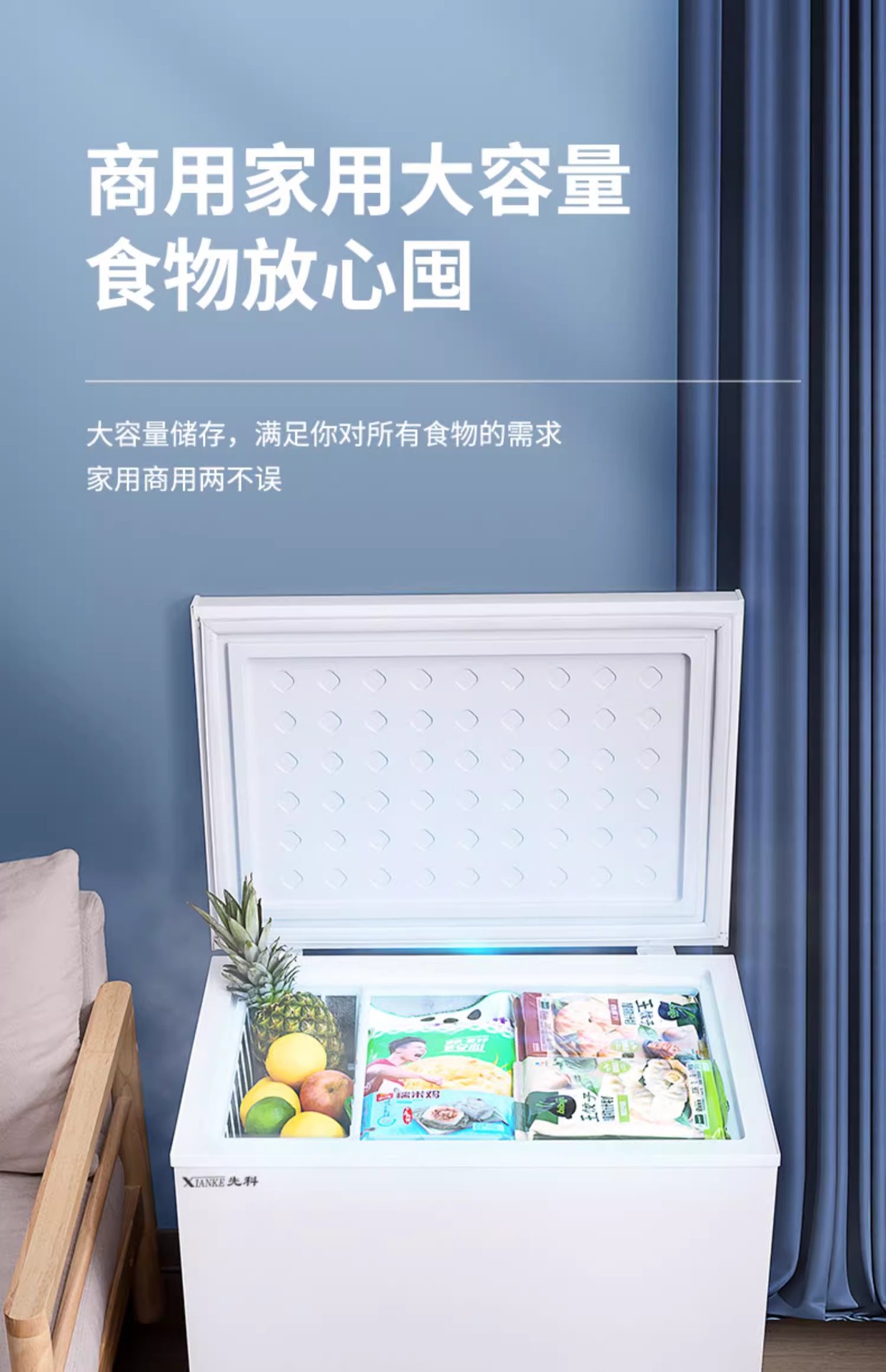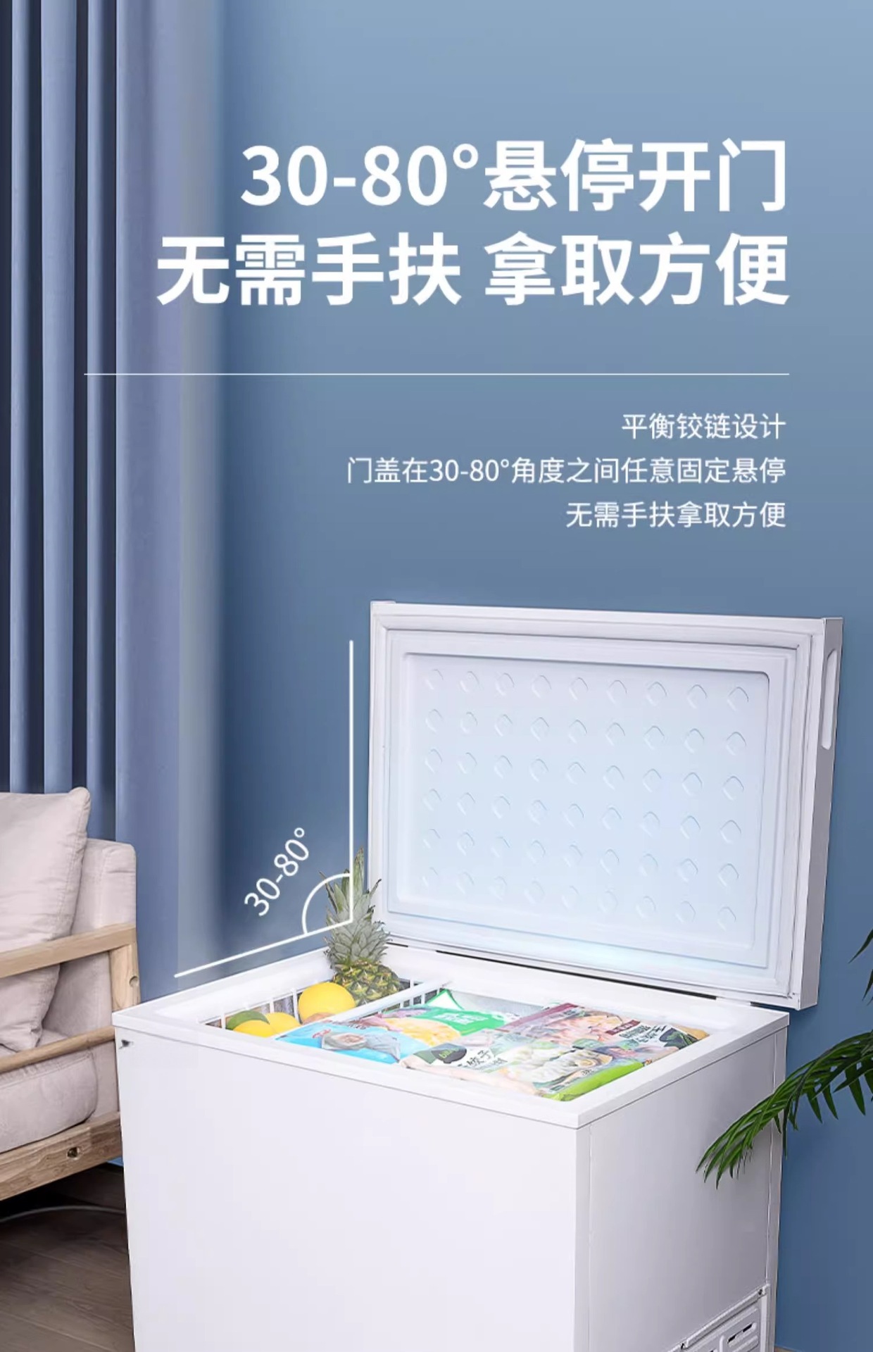 美Meidi的128升小冰柜家用小型全冷冻冷藏冰箱冷柜一级节能无霜