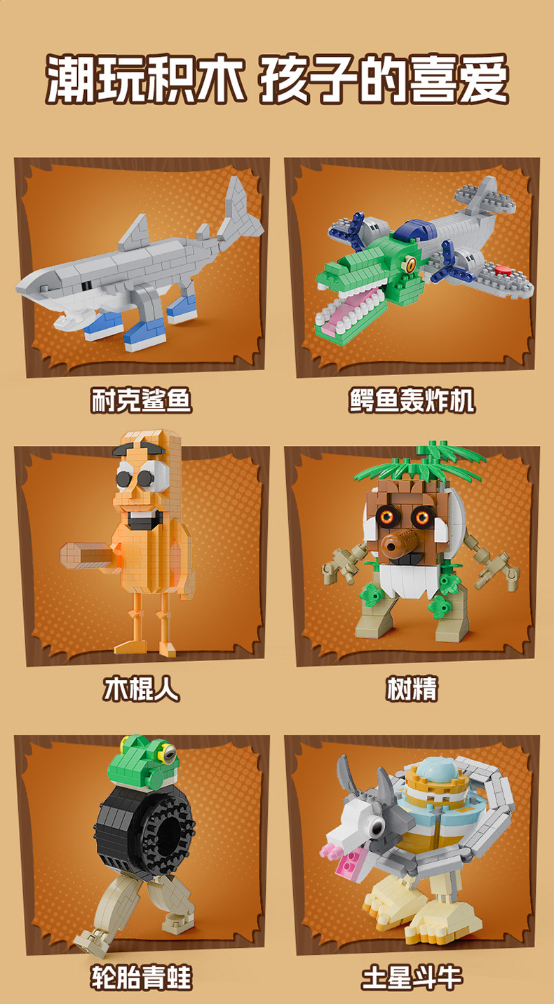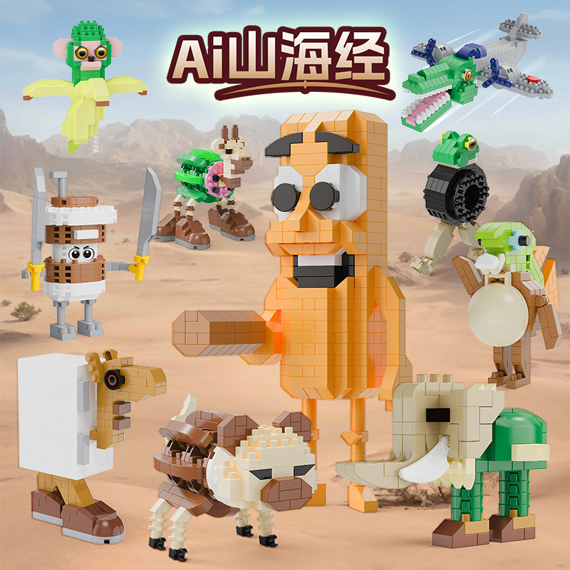 新年家居小摆件儿童玩具山海经积木颗粒拼装立体拼图手工礼物批发
