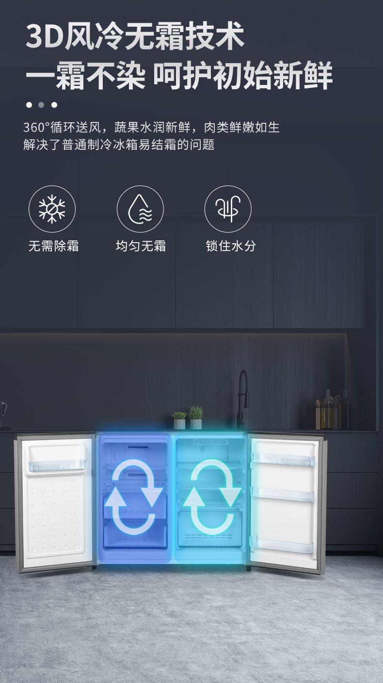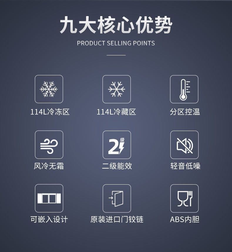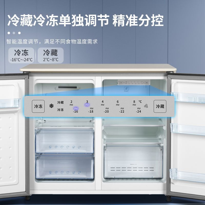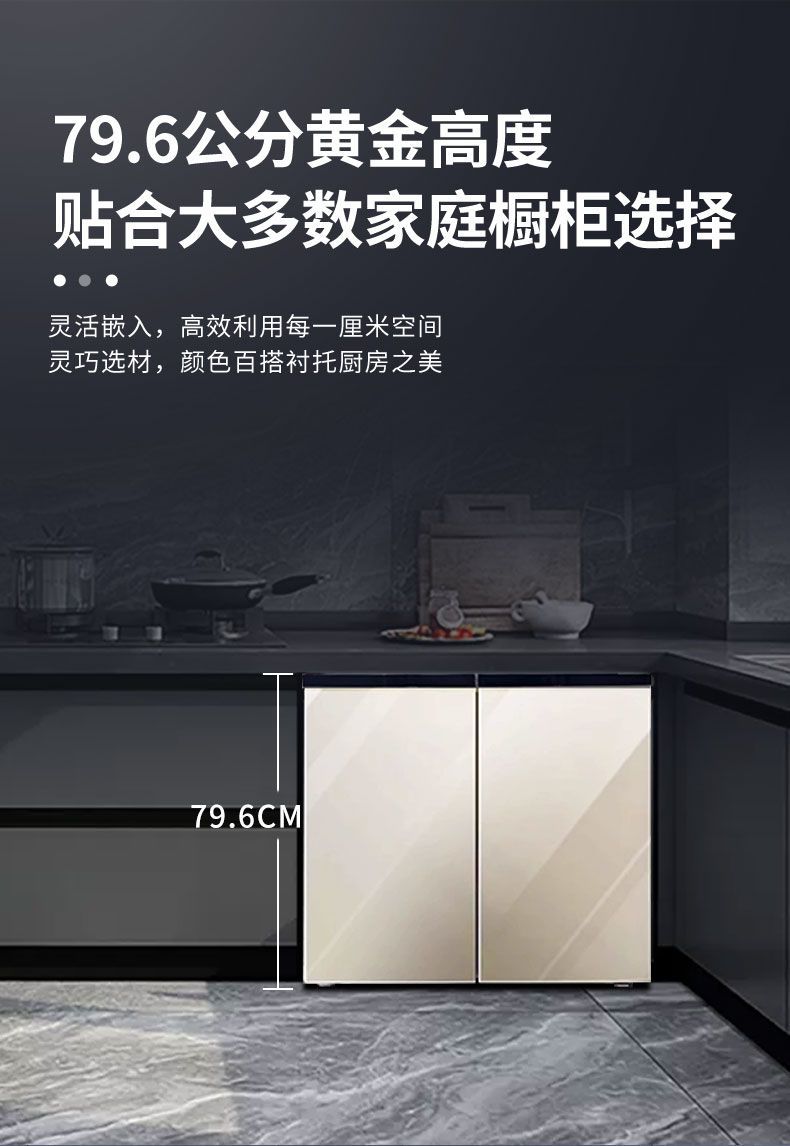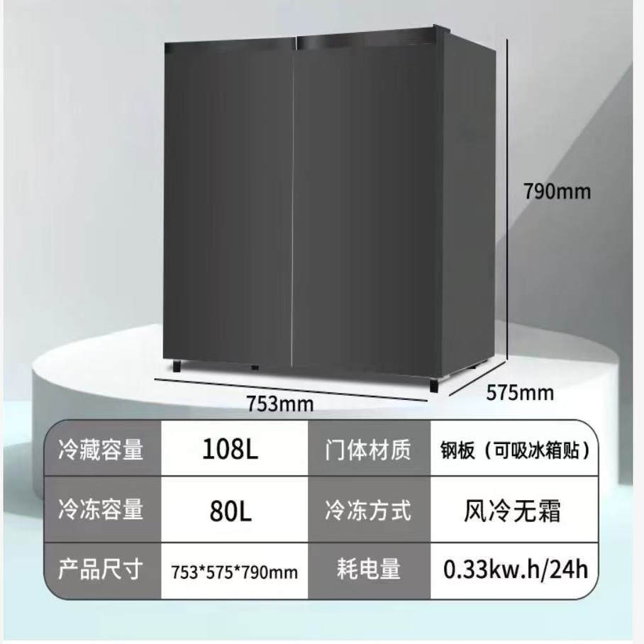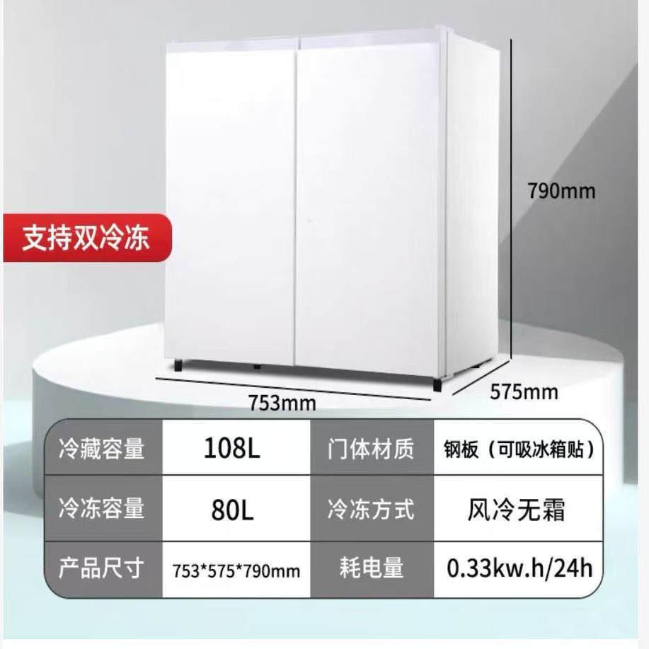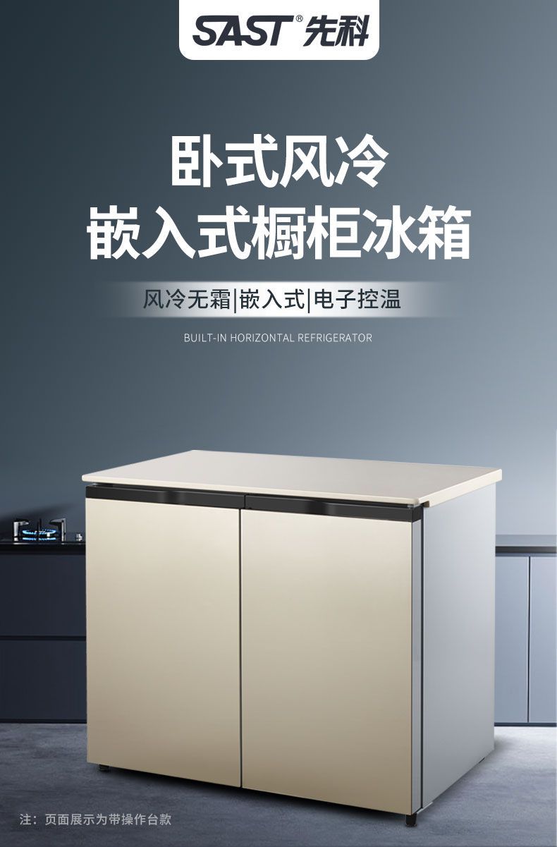 卧式冰箱嵌入式冰柜家用风冷无霜小型柜双门橱柜厨房矮电冰箱