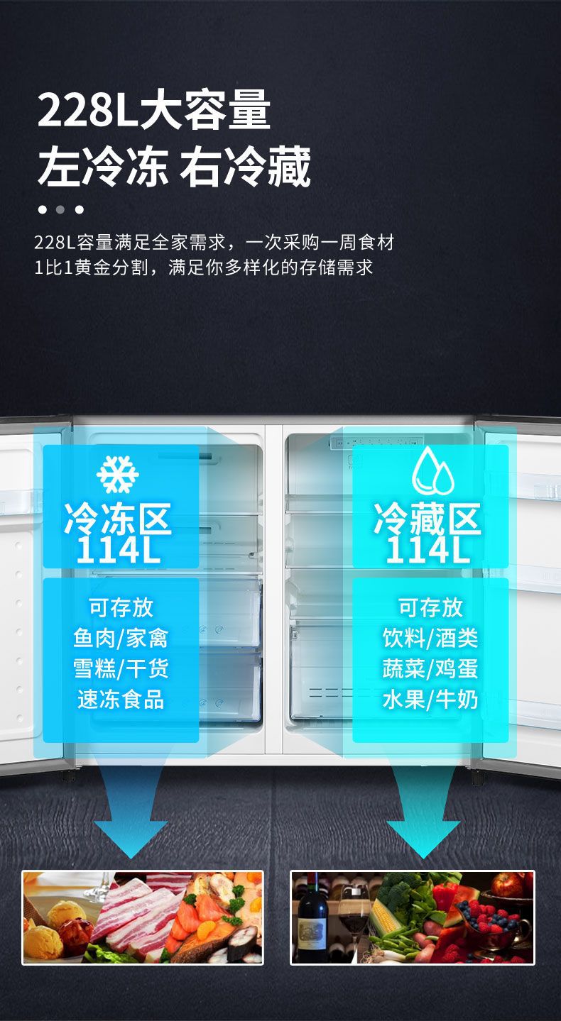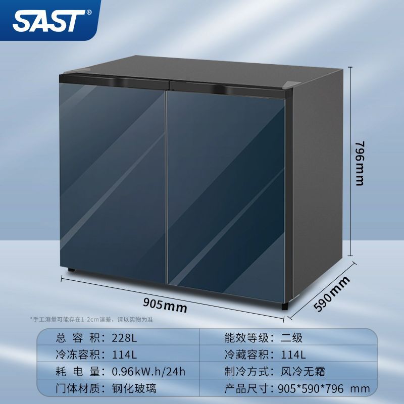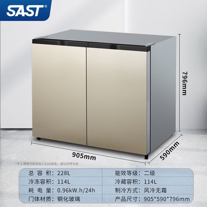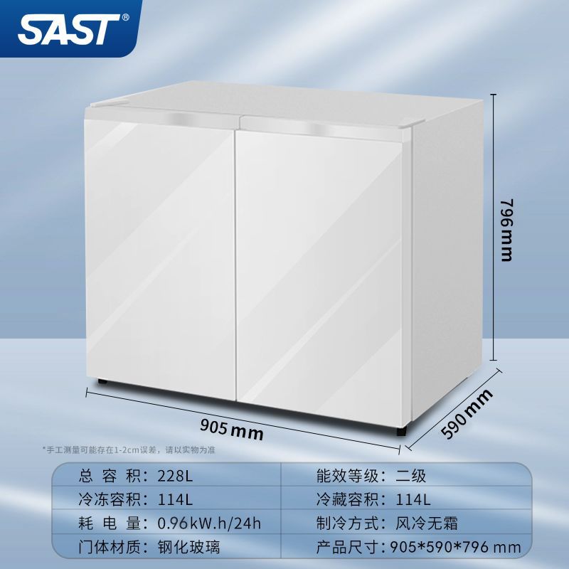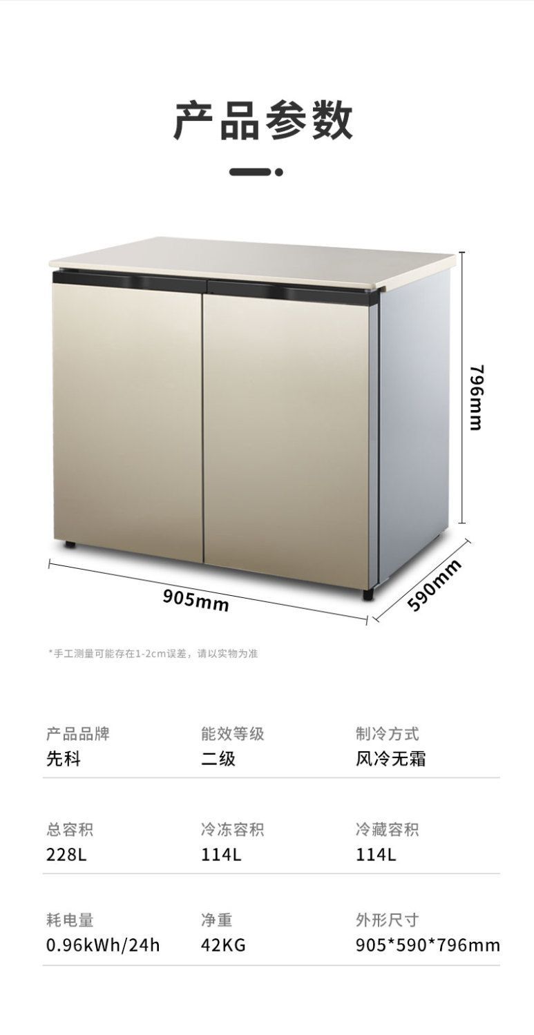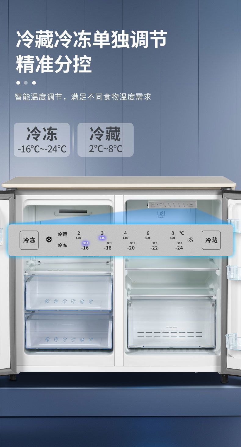 卧式冰箱嵌入式冰柜家用风冷无霜小型柜双门橱柜厨房矮电冰箱