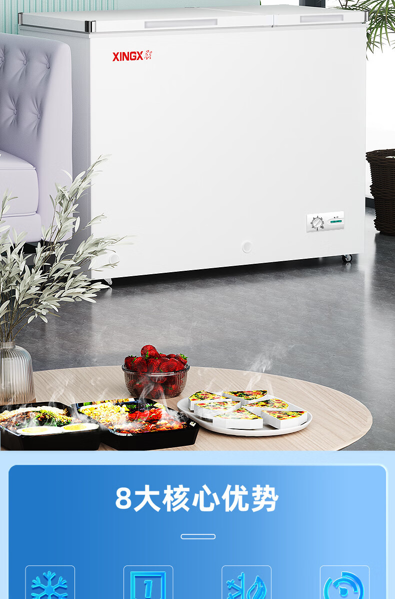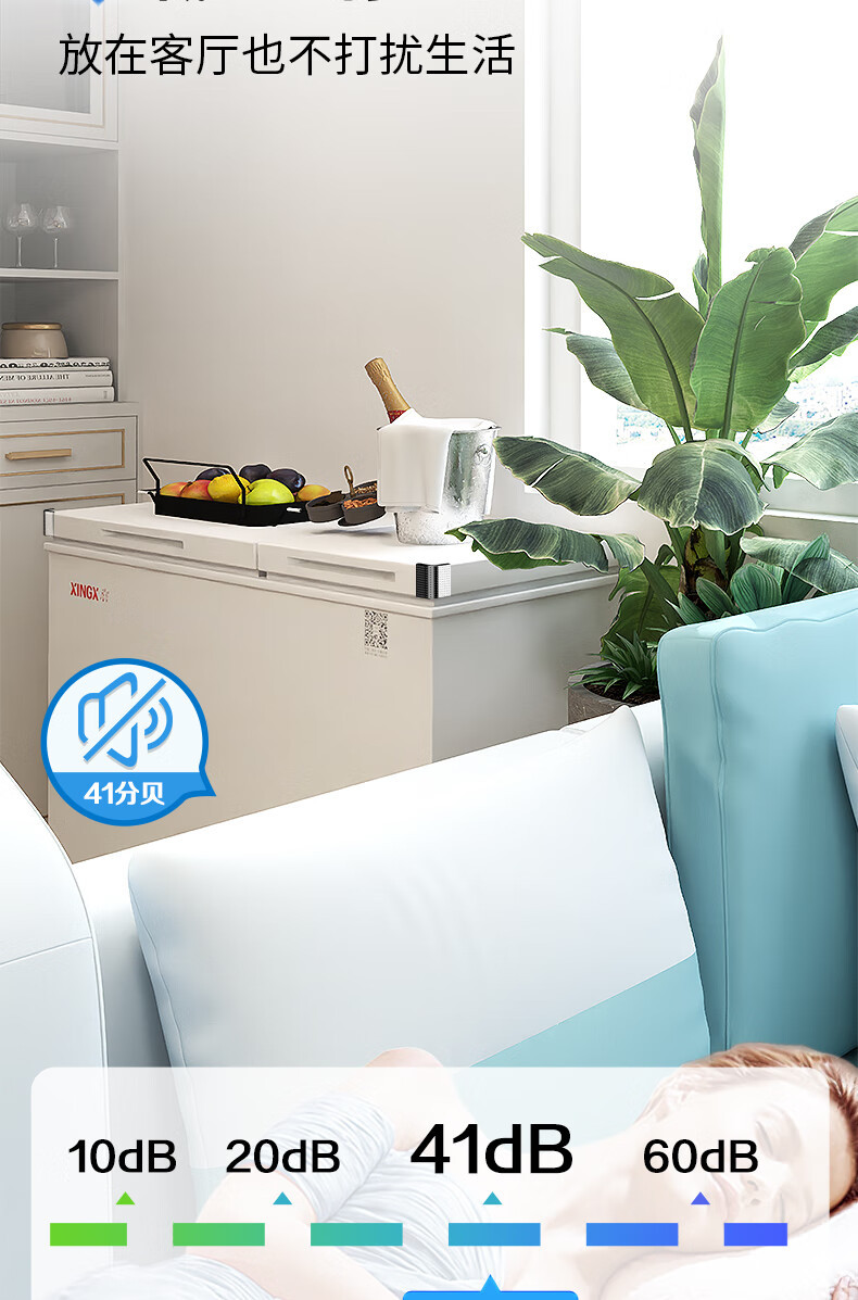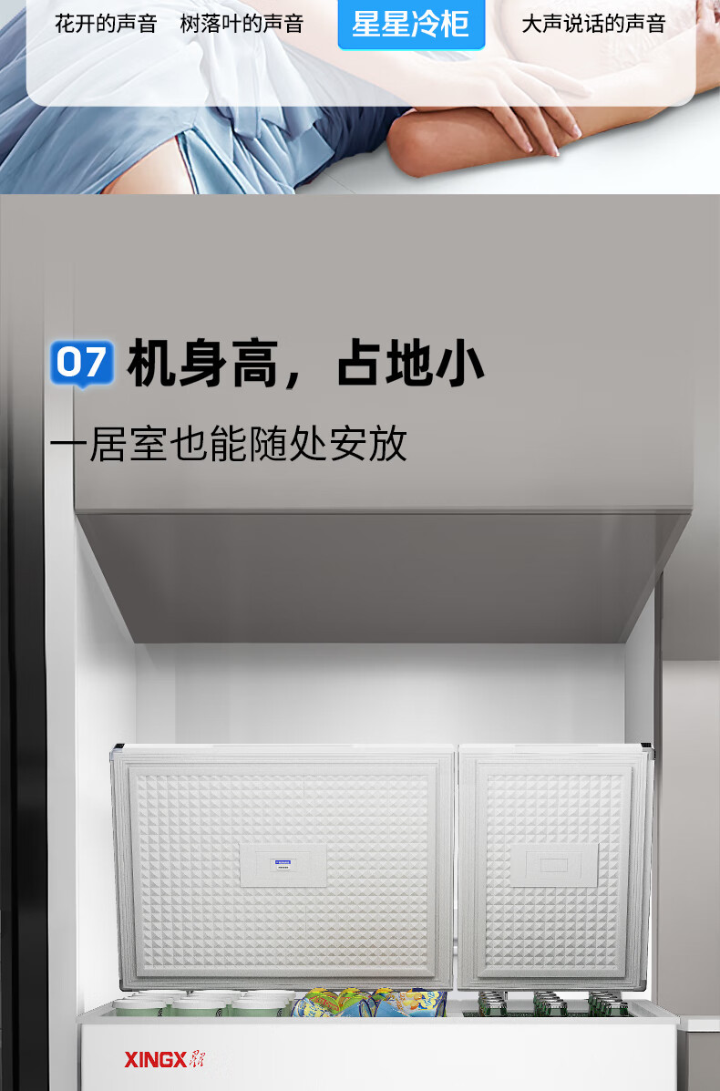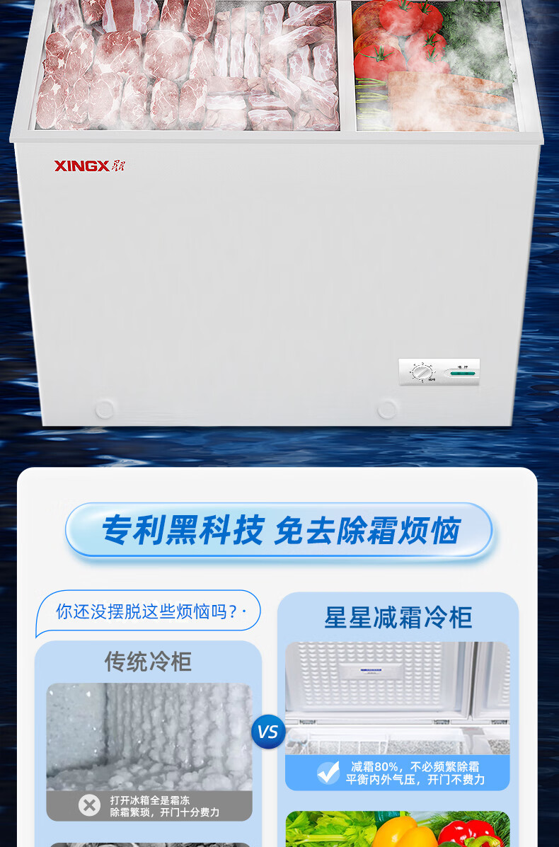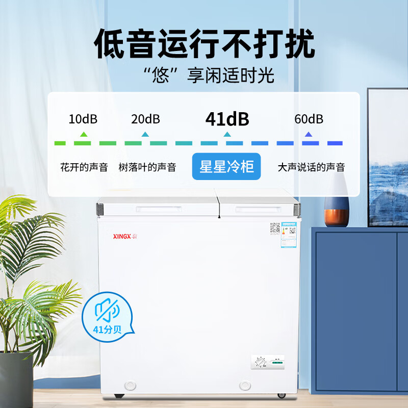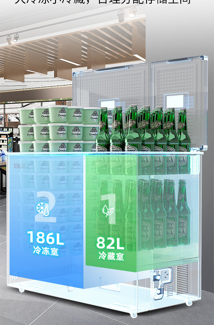 星星冰柜家用冷藏保鲜冷冻两用双温大容量卧式小冷柜268L双门商用