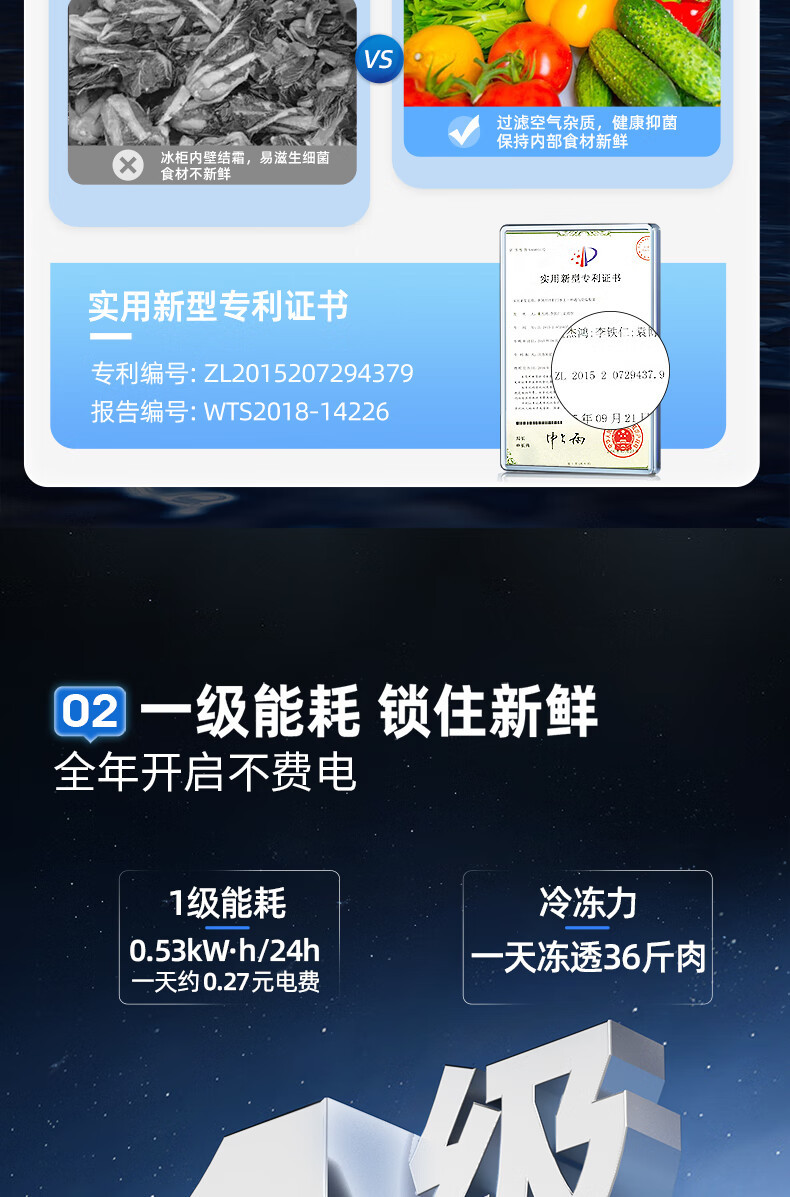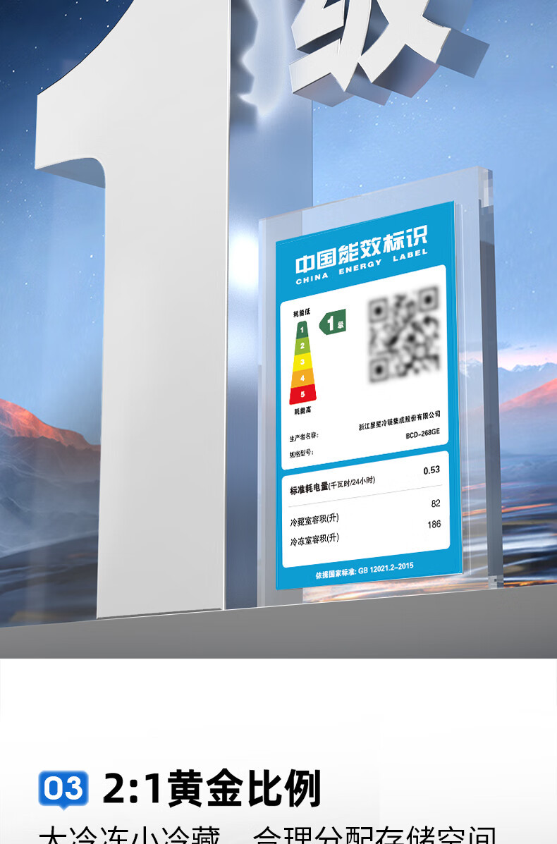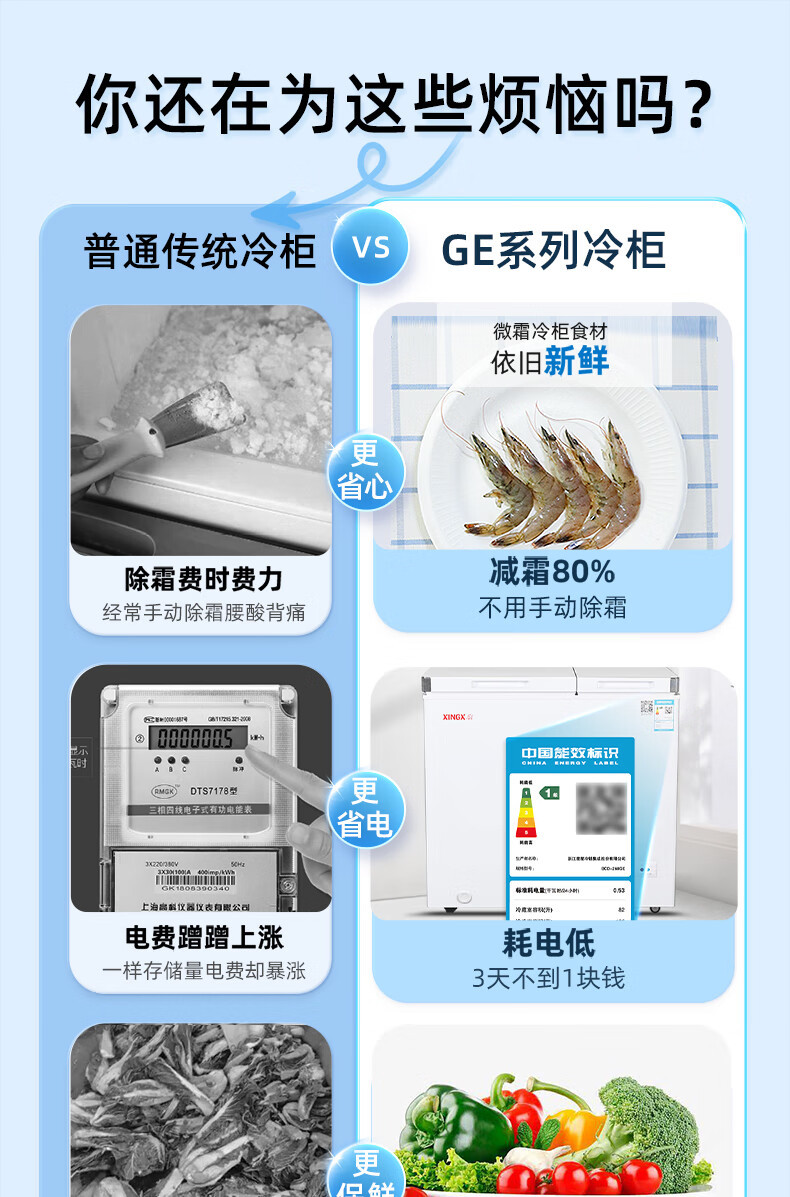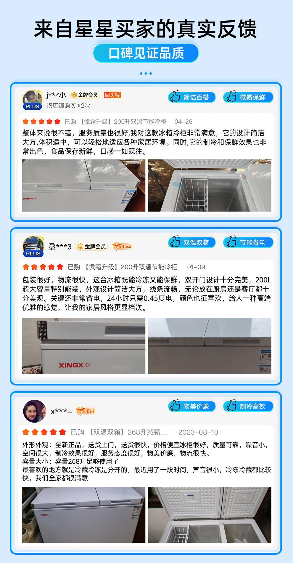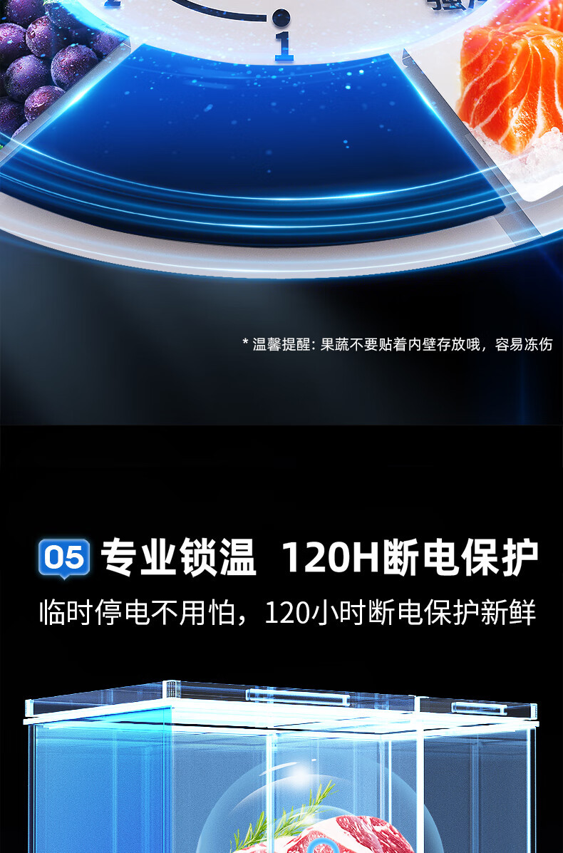 星星冰柜家用冷藏保鲜冷冻两用双温大容量卧式小冷柜268L双门商用