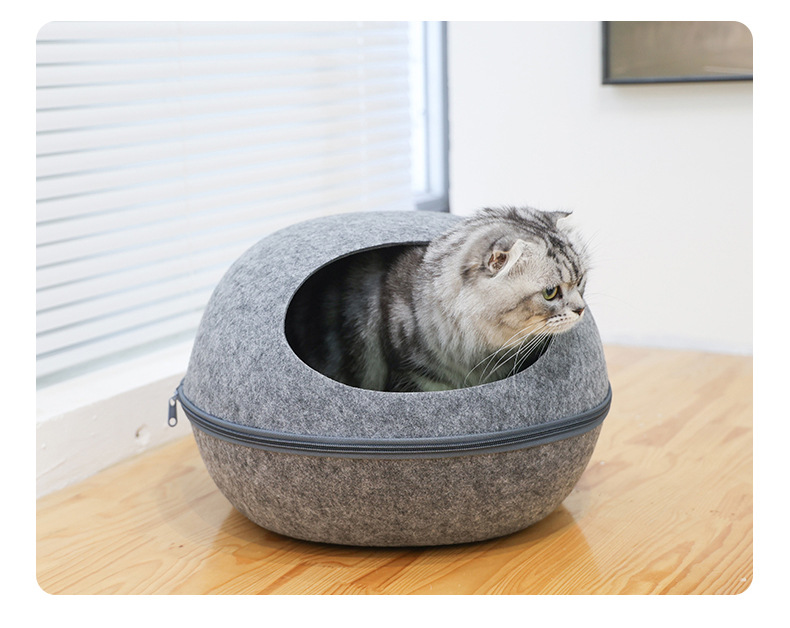 猫窝四季通用可拆洗毛毡猫屋网红蛋壳半封闭式猫咪睡房带宠物棉垫