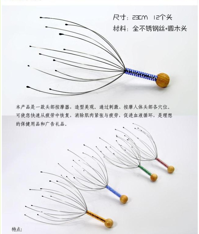 商品名称:八爪鱼头部按摩器/螺纹不锈钢按摩器