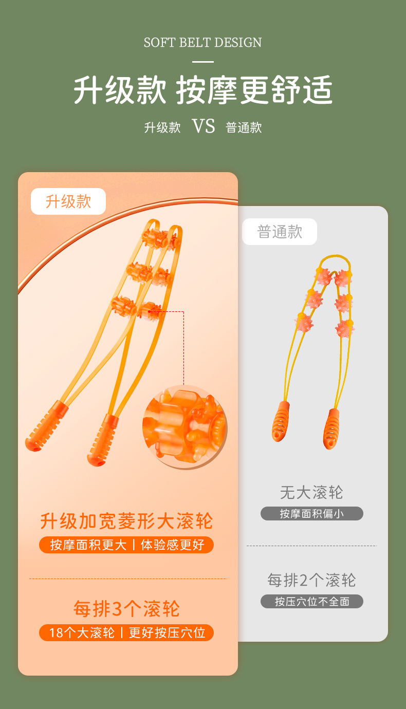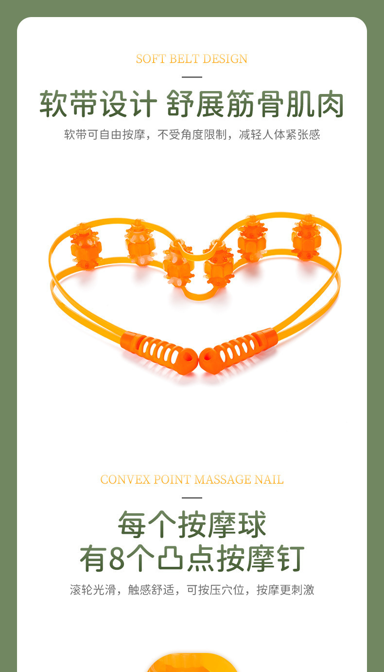 按摩器背部疏通经络按摩锤手动拉背条按摩器颈椎滚轮神器理疗仪