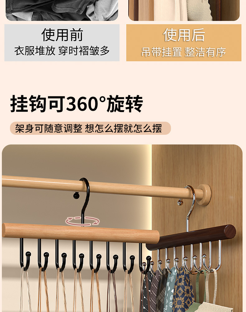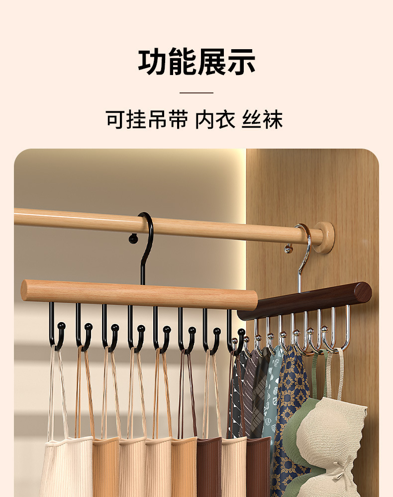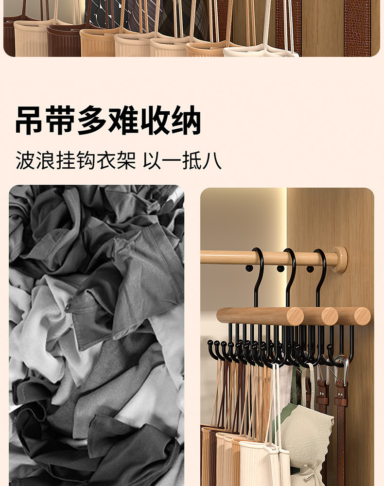 木质吊带衣架多功能内衣背心收纳神器家用宿舍实木挂钩波浪晾衣架