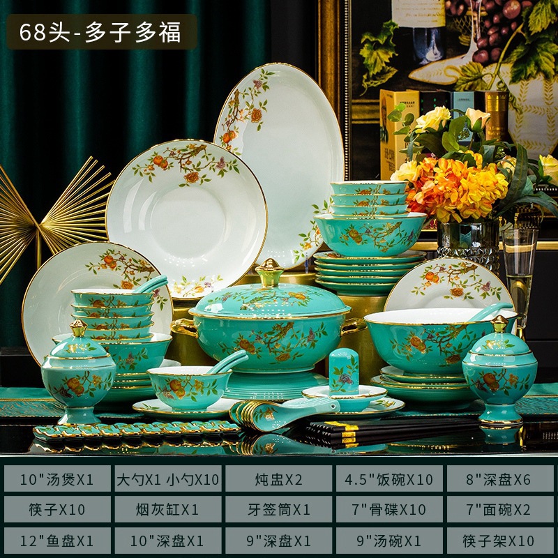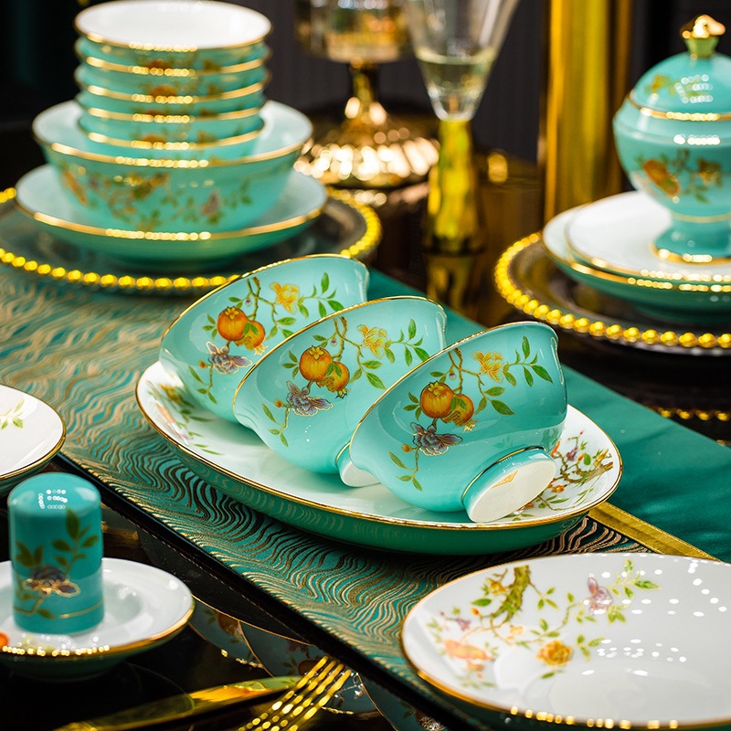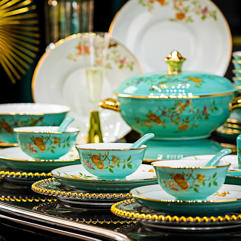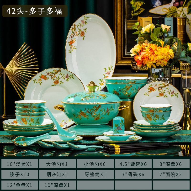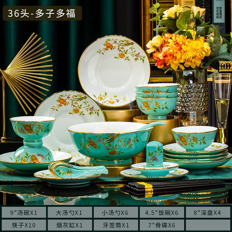 景德镇陶瓷碗碟套装白瓷餐盘金边高白泥碗具乔迁家用碗盘组合礼品
