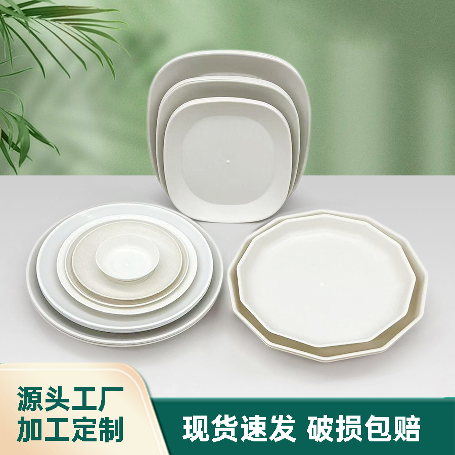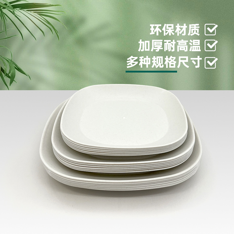厂家批发一次性稻壳餐具加厚食品级圆盘方盘多角盘餐馆焼烤店聚餐