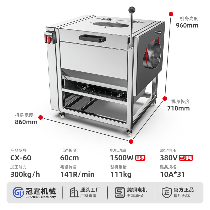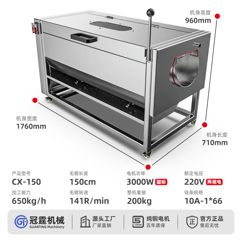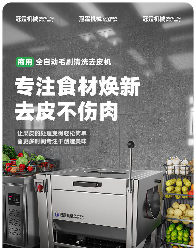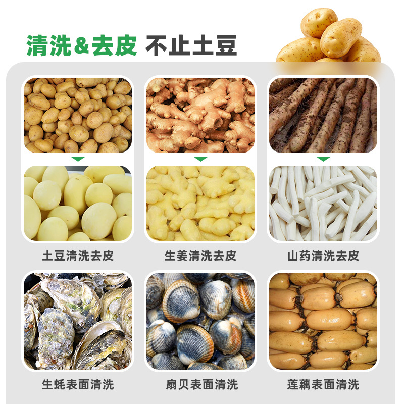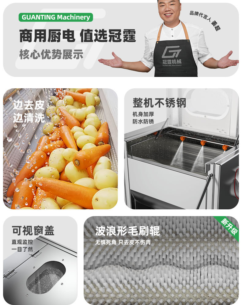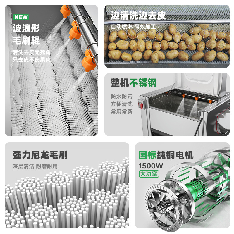 冠霆商用土豆去皮机全自动毛刷清洗生姜地瓜莲藕不锈钢削皮脱皮机