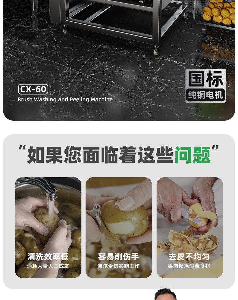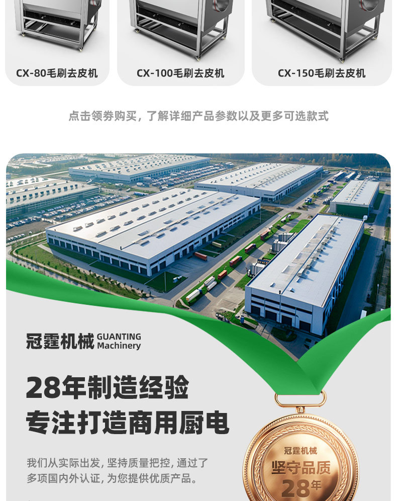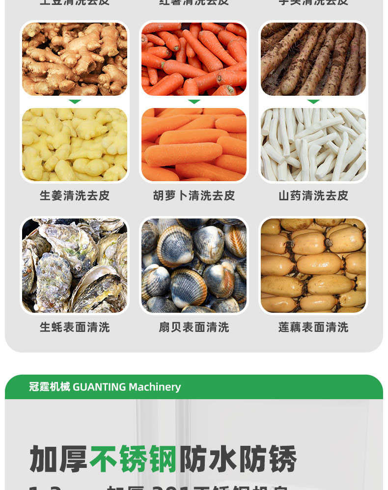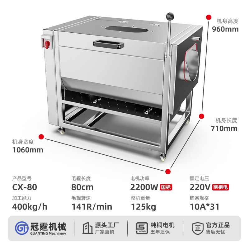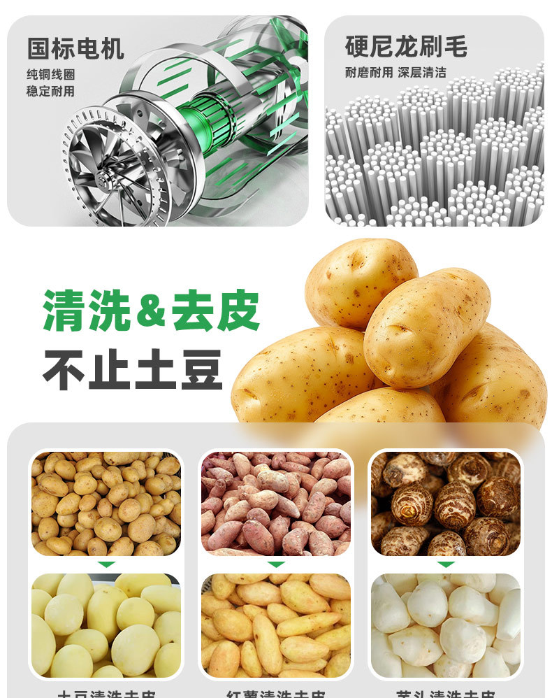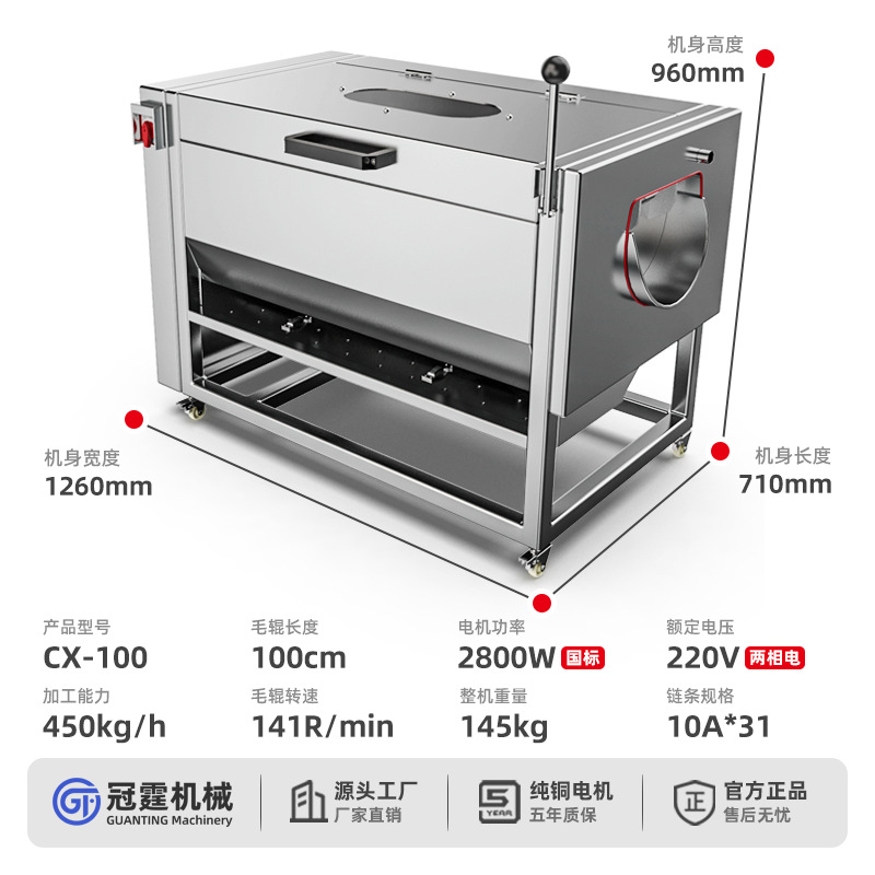 冠霆商用土豆去皮机全自动毛刷清洗生姜地瓜莲藕不锈钢削皮脱皮机