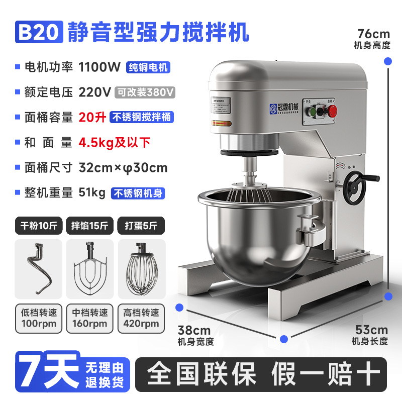 冠霆商用b20搅拌机多功能揉面和面机全自动烘焙蛋糕鲜奶油打蛋机