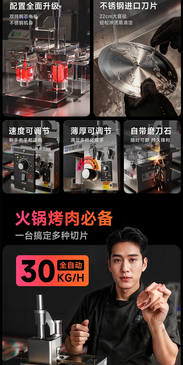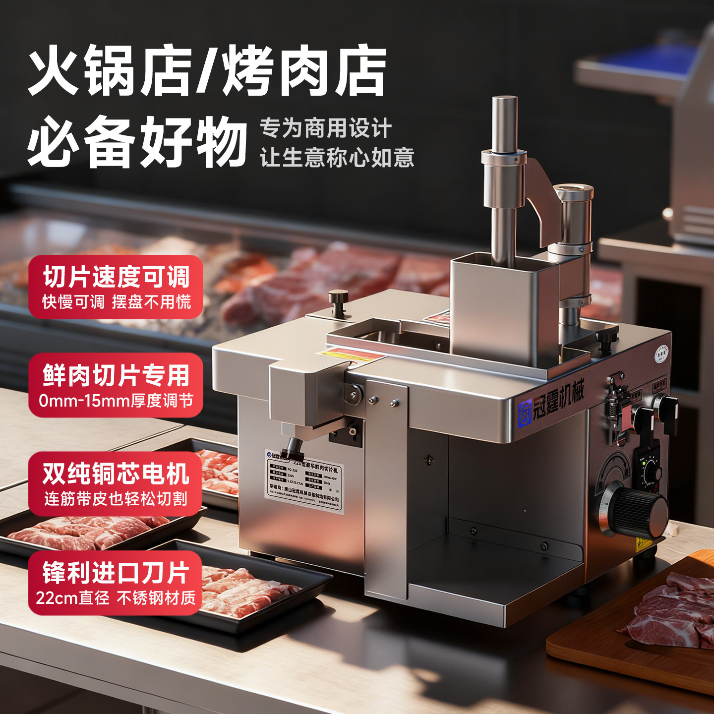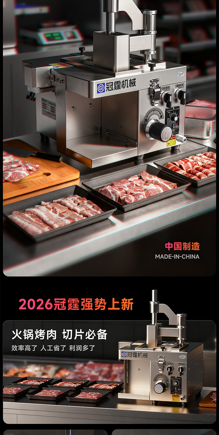 冠霆鲜肉切片机全自动商用多功能潮汕火锅牛羊肉吊龙匙柄切腰片机