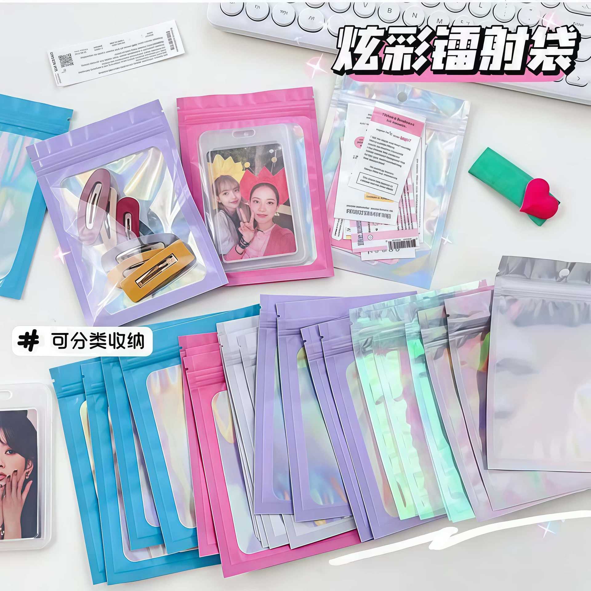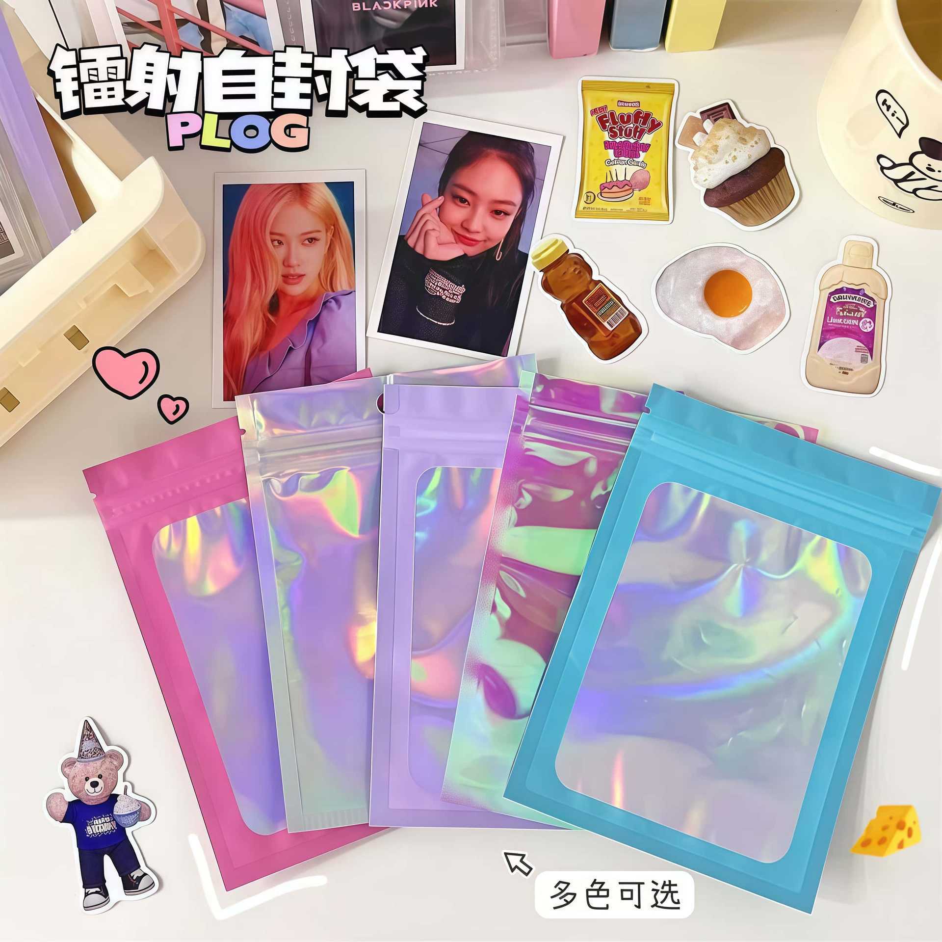 镭射炫彩自封袋彩色塑料袋加厚diy透明收纳袋密封袋多功能封口袋