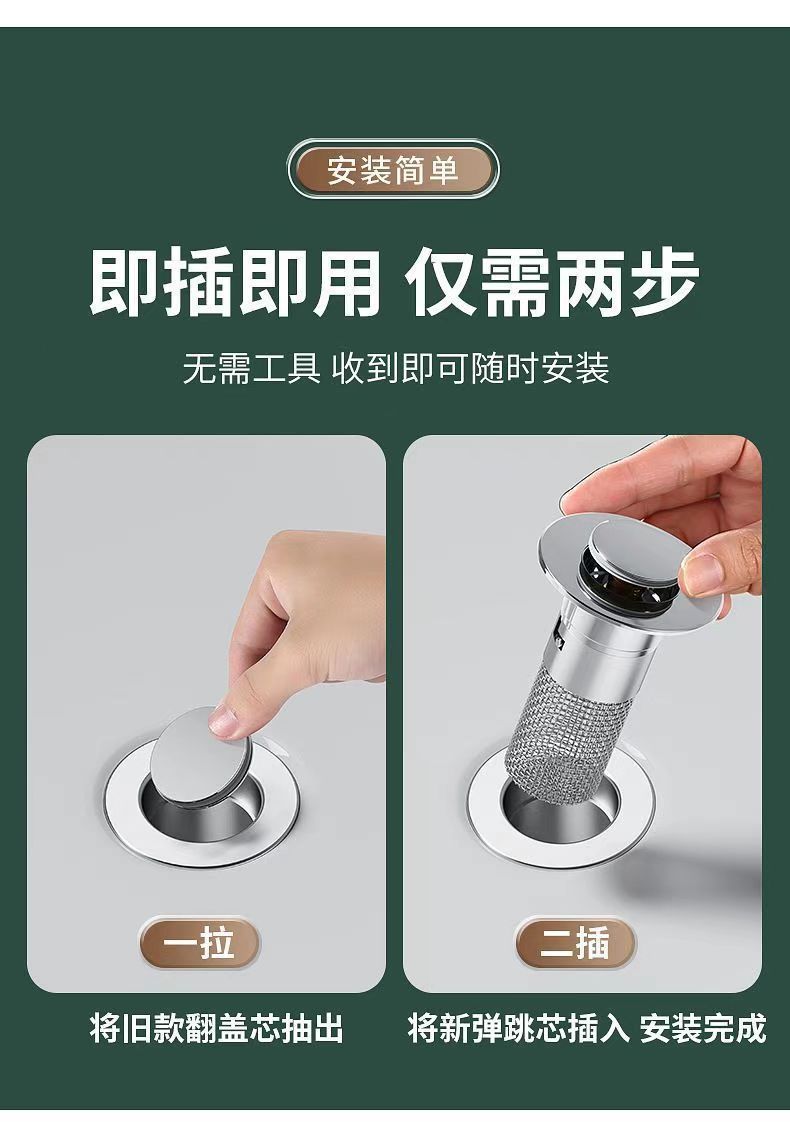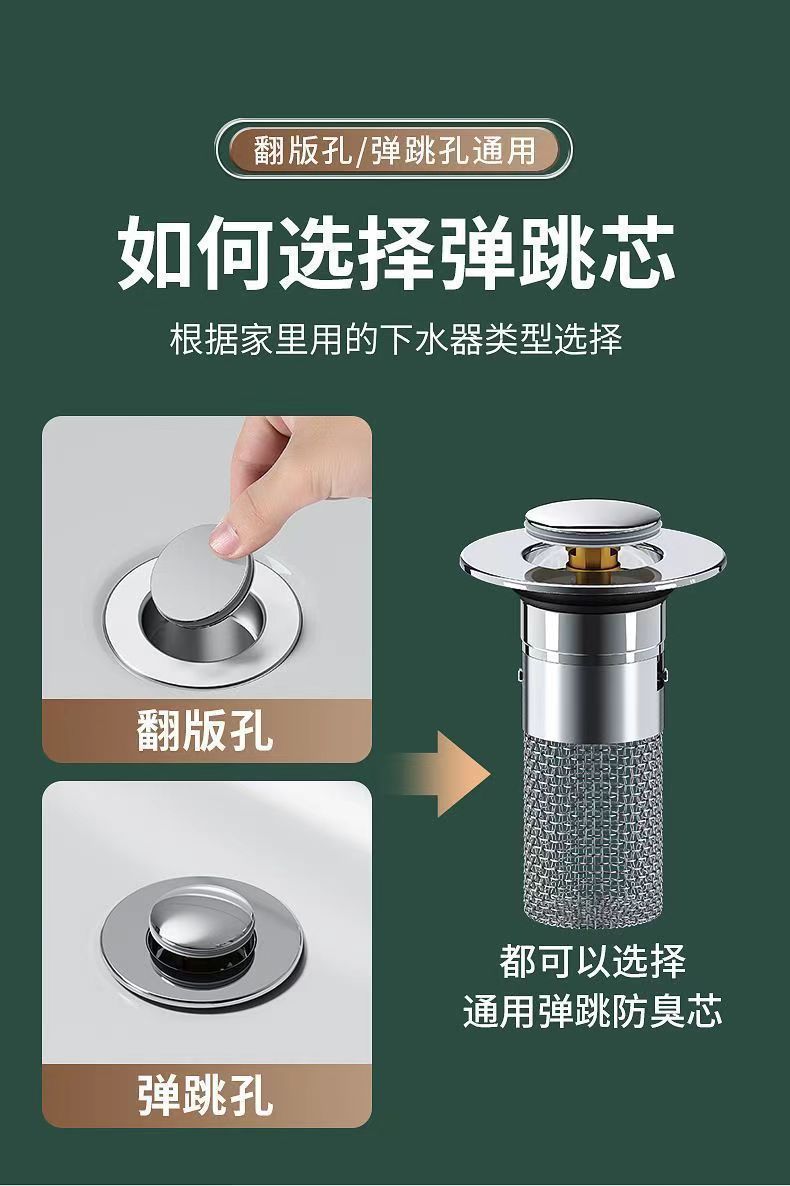 洗手盆洗脸盆漏水塞通用弹跳芯下水防臭防堵洗手盆按压过滤网地漏