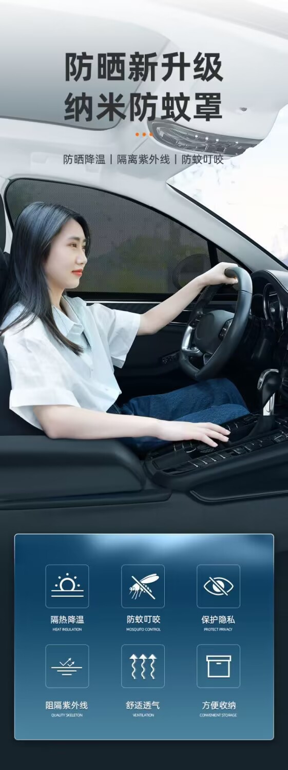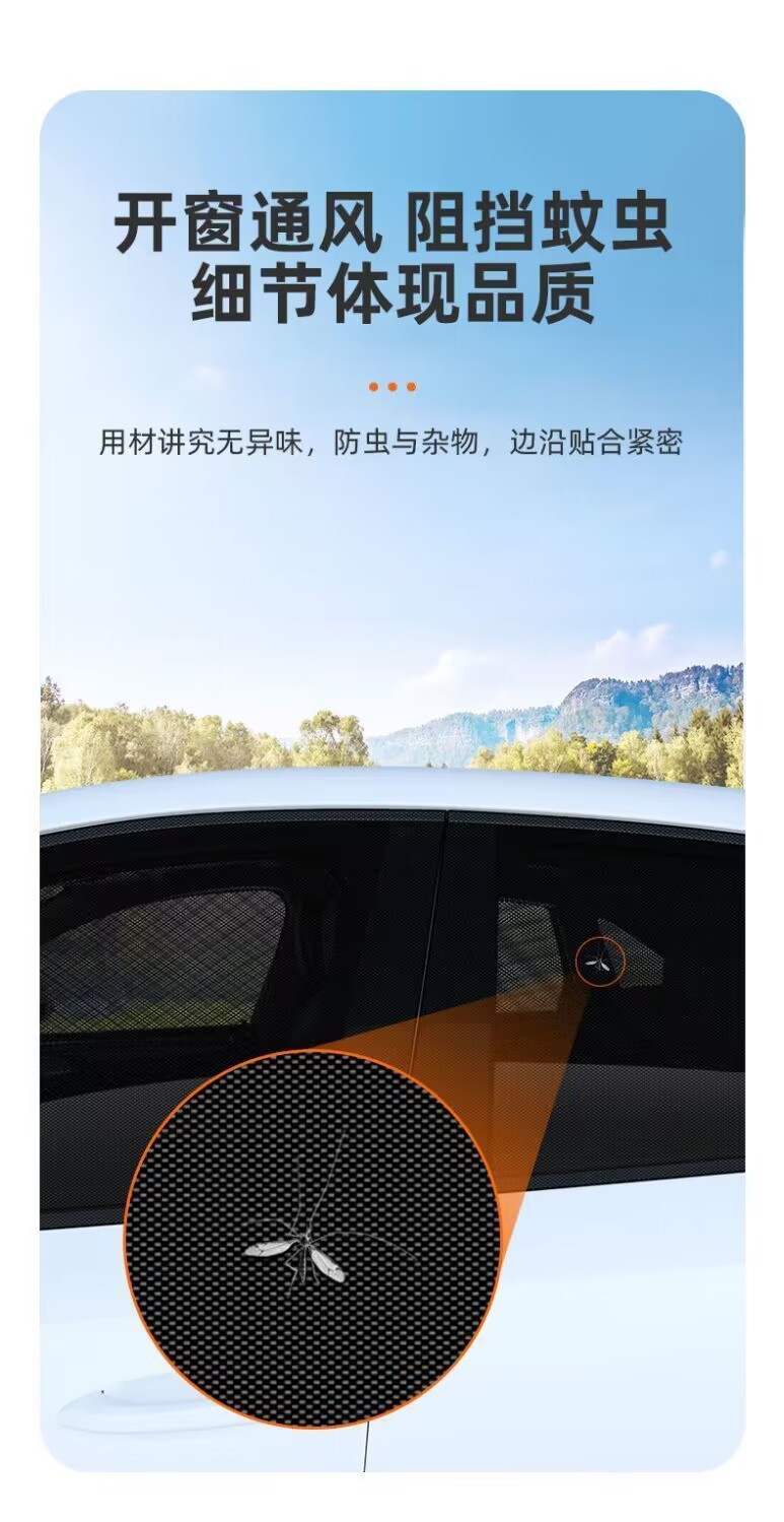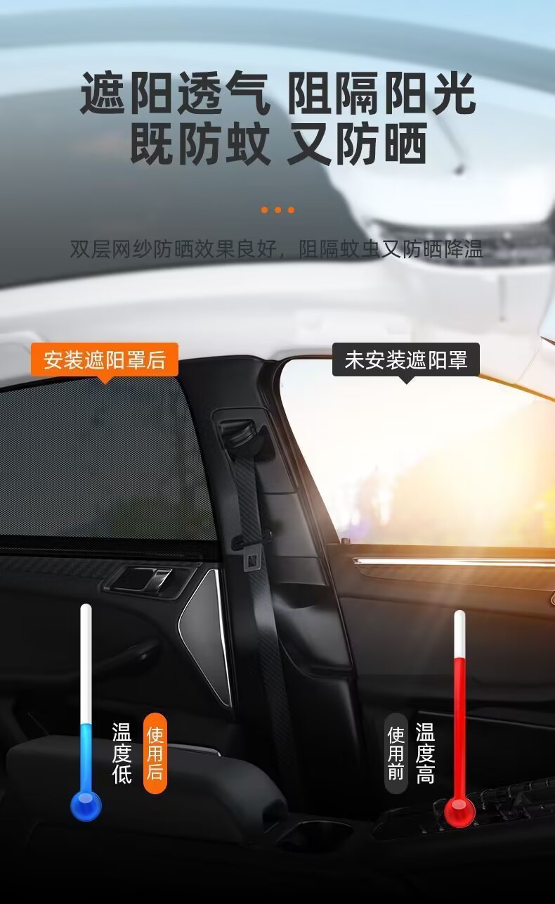 汽车防蚊窗帘夏季遮阳帘侧窗 网纱透气遮阳挡防晒隔热帘防蚊窗罩