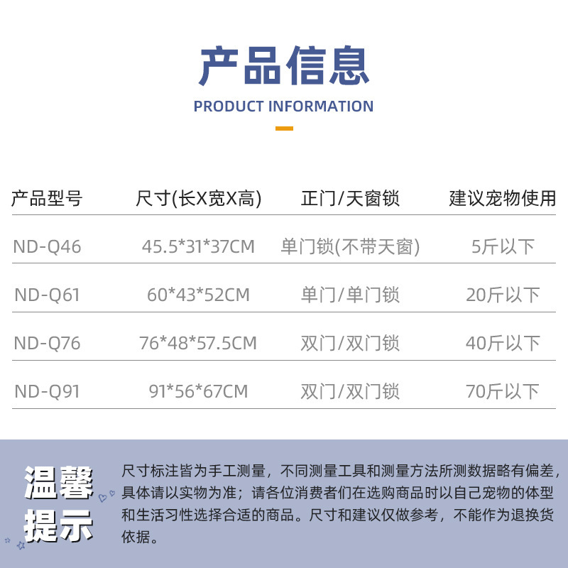 乐佳纳米狗笼加粗带天窗泰迪狗笼子猫笼兔笼宠物折叠狗窝中小型犬