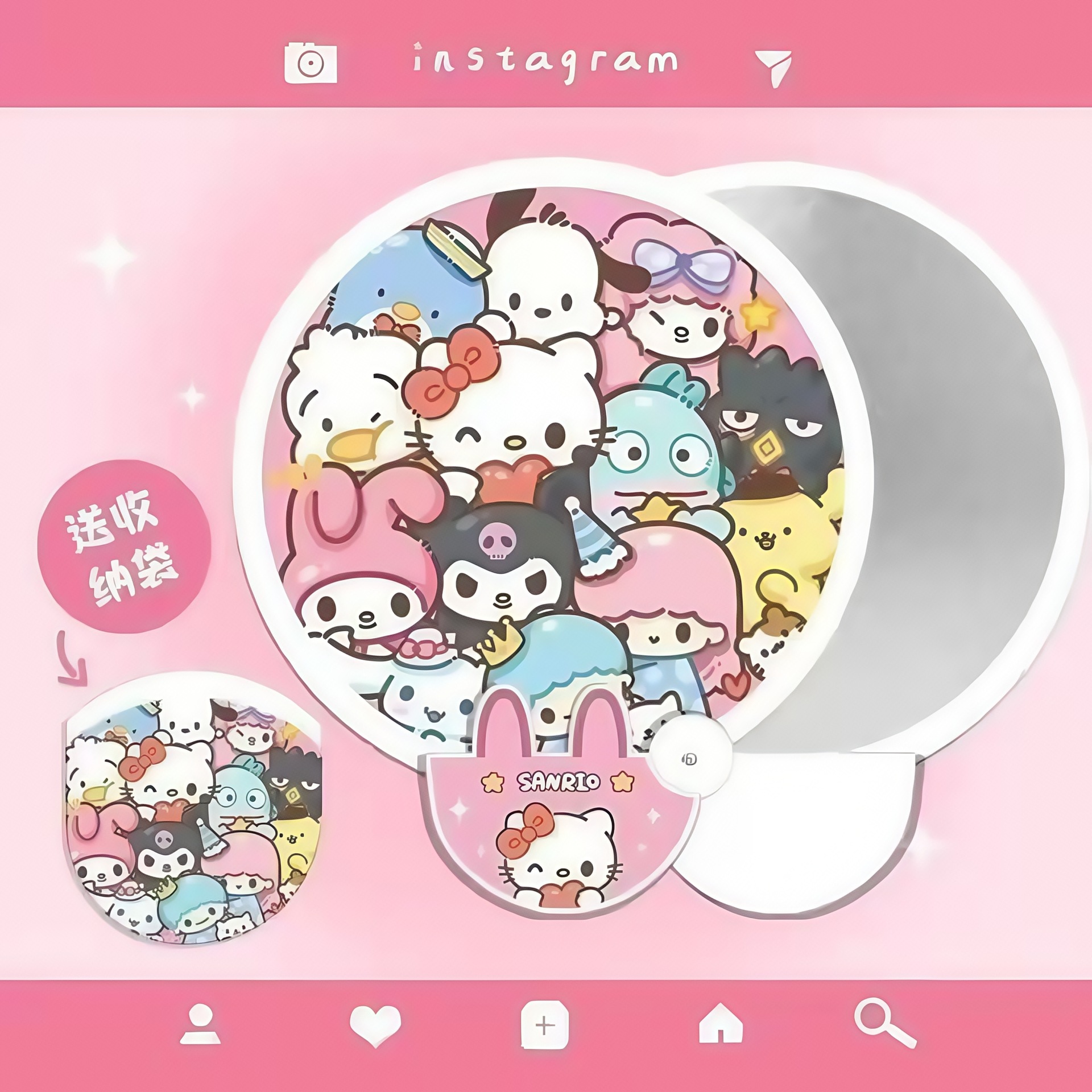 创意卡通自拍反光板折叠扇子随身折叠携带团扇夏天可爱迷你小扇子