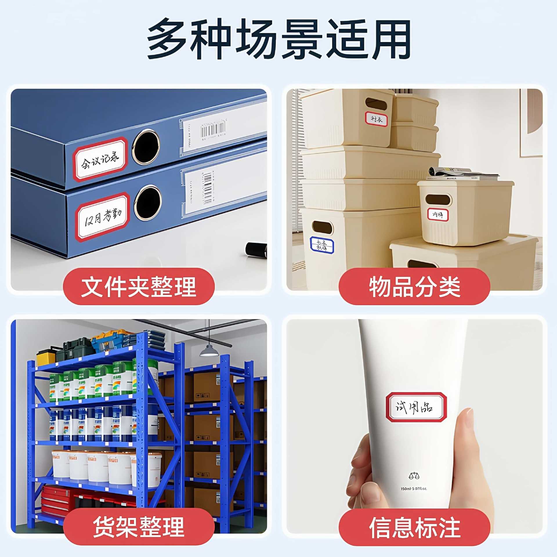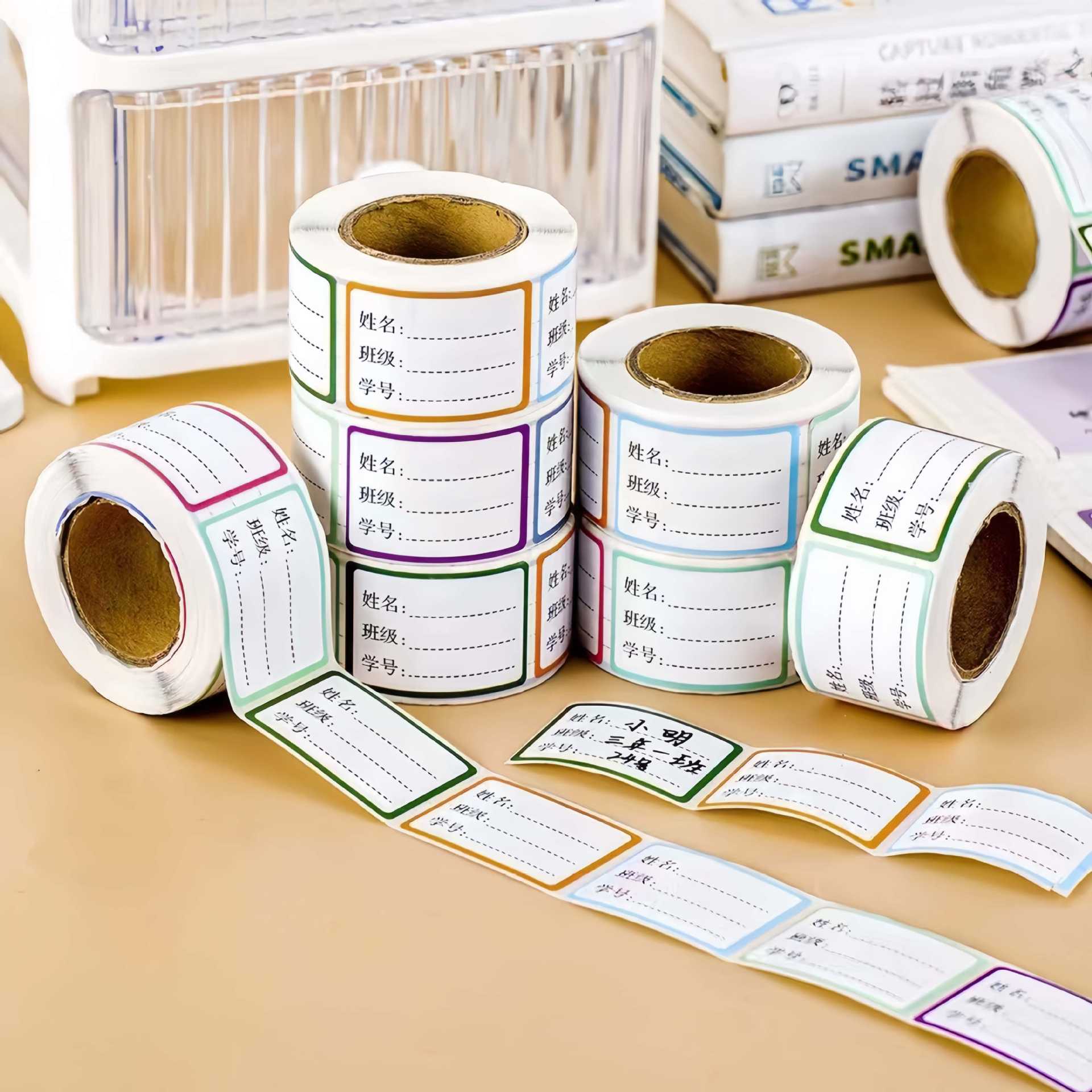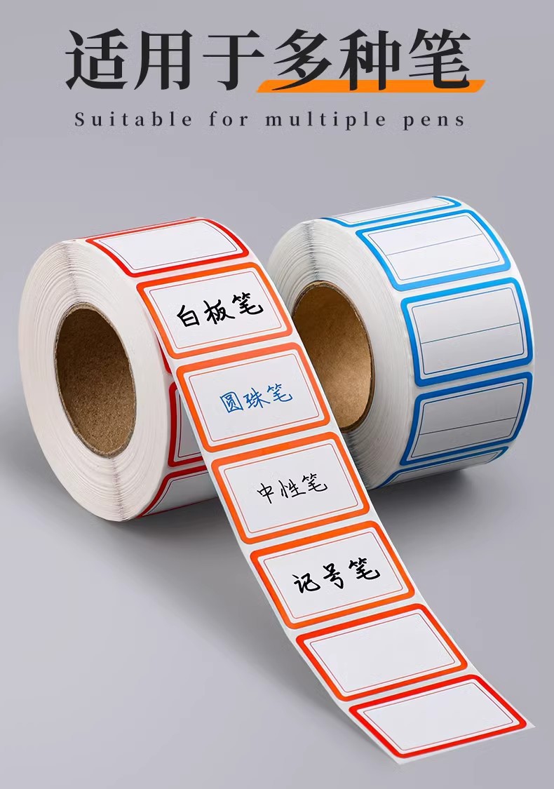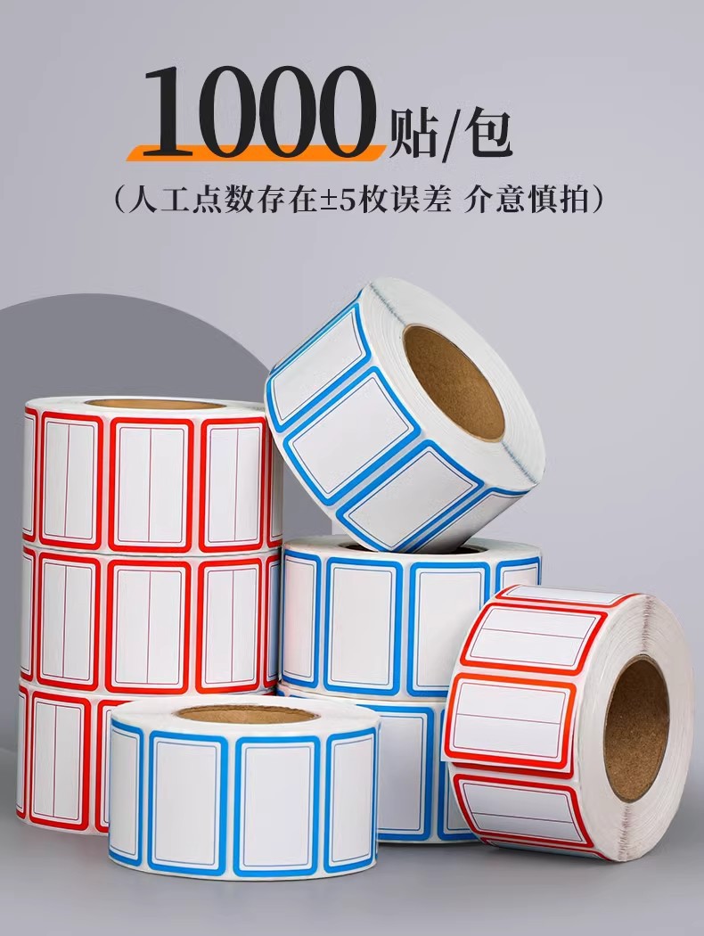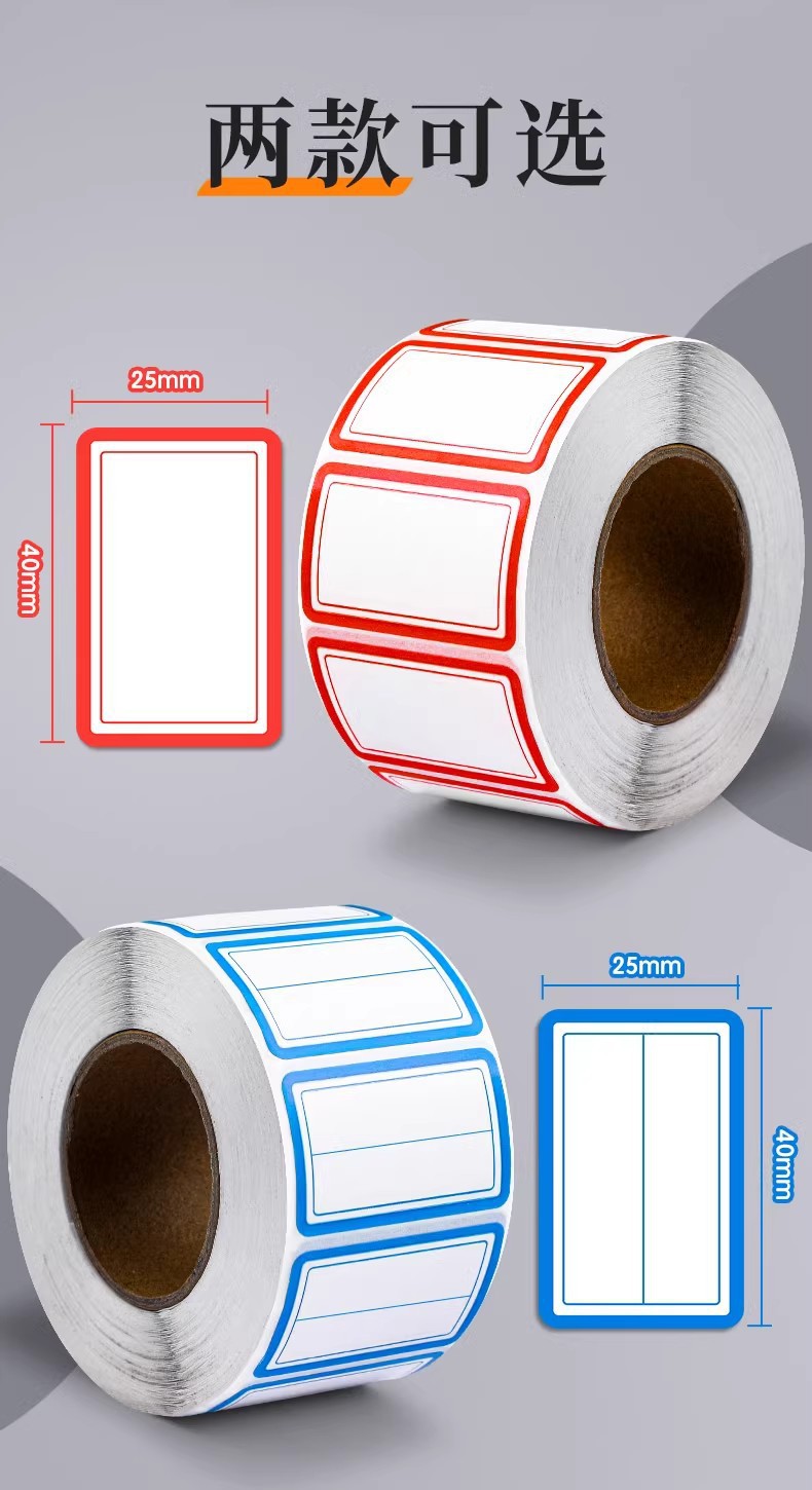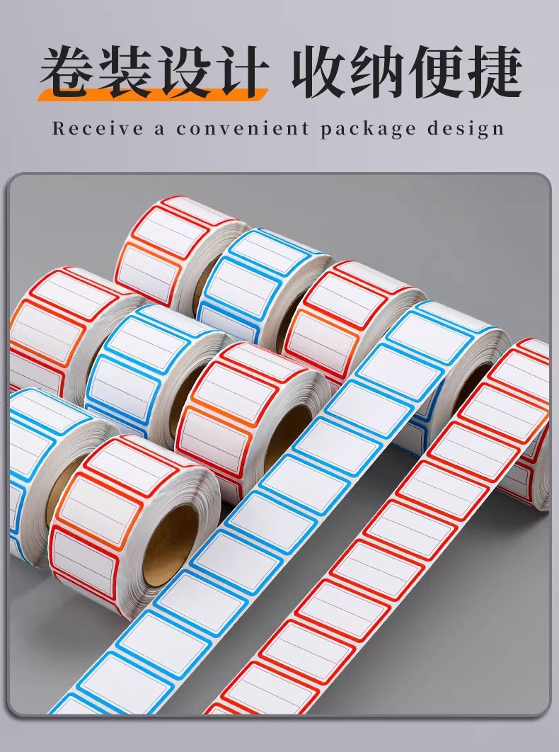 卷装标签贴纸口取纸不干胶便签贴防水记号贴自粘姓名办公用口曲贴