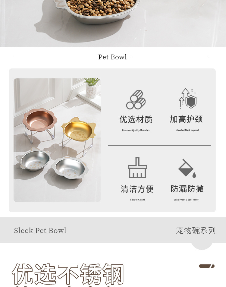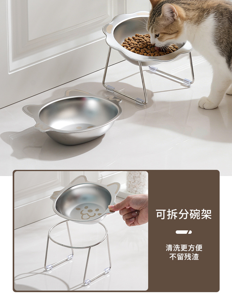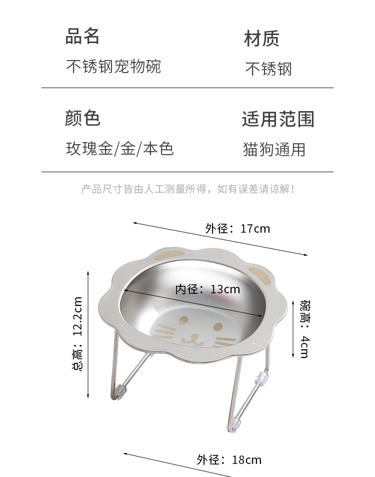 亚马逊304不锈钢狗碗跨境高脚猫碗防滑宠物碗护颈猫粮碗狗盆批发