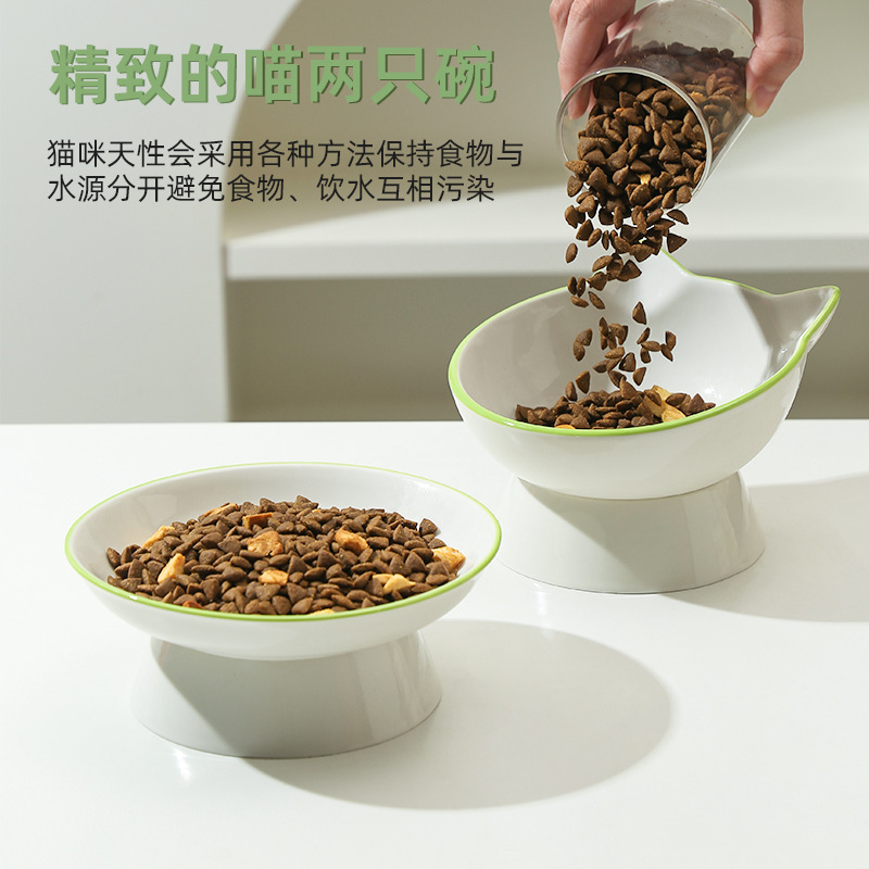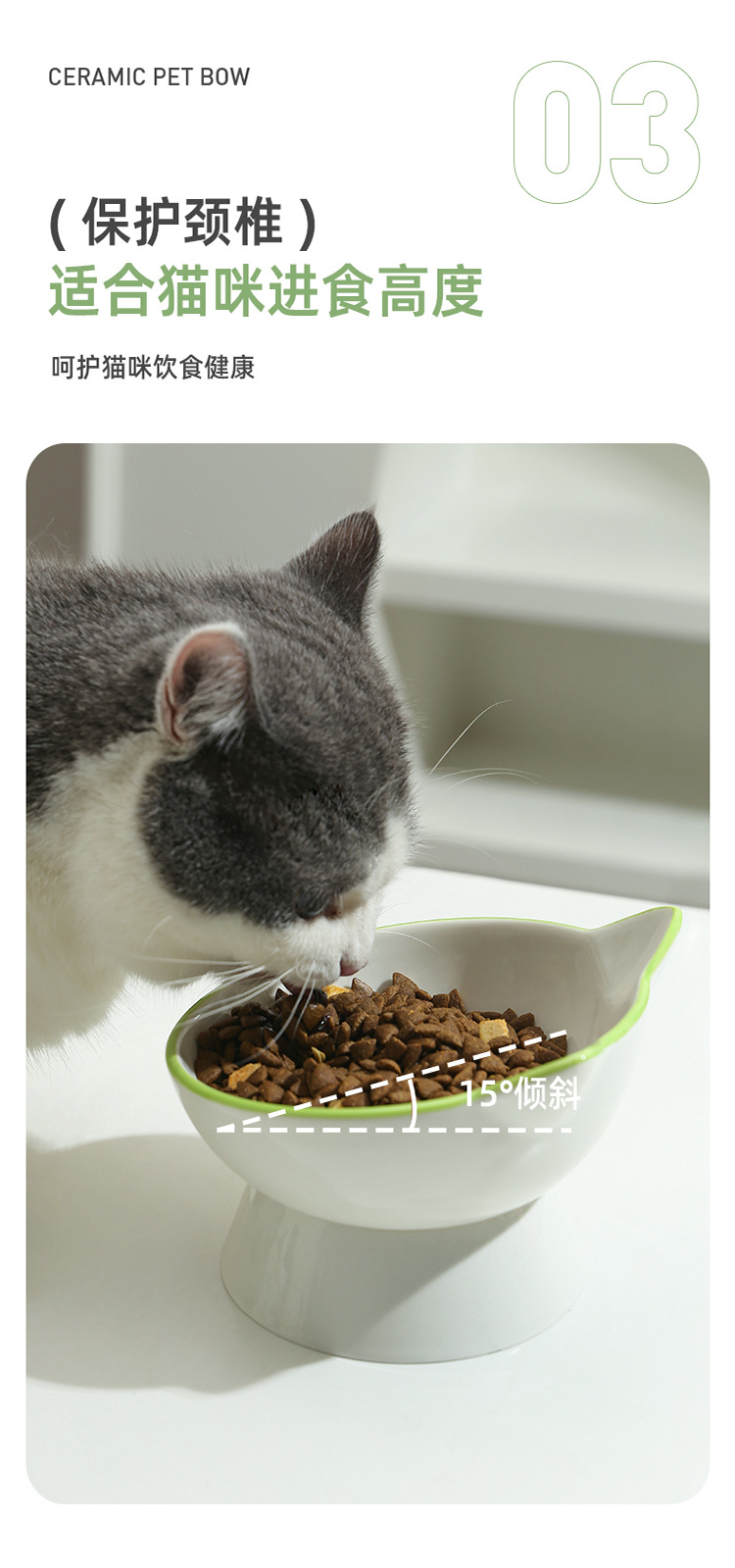 出口猫碗陶瓷猫咪粮碗狗碗猫食盆大口径水碗斜口碗防打翻宠物用品