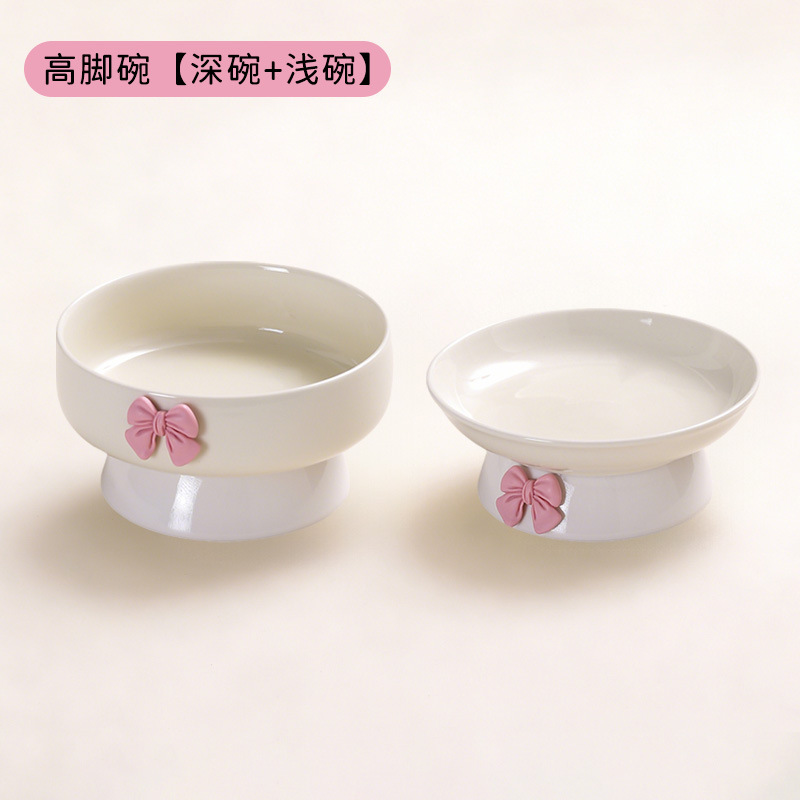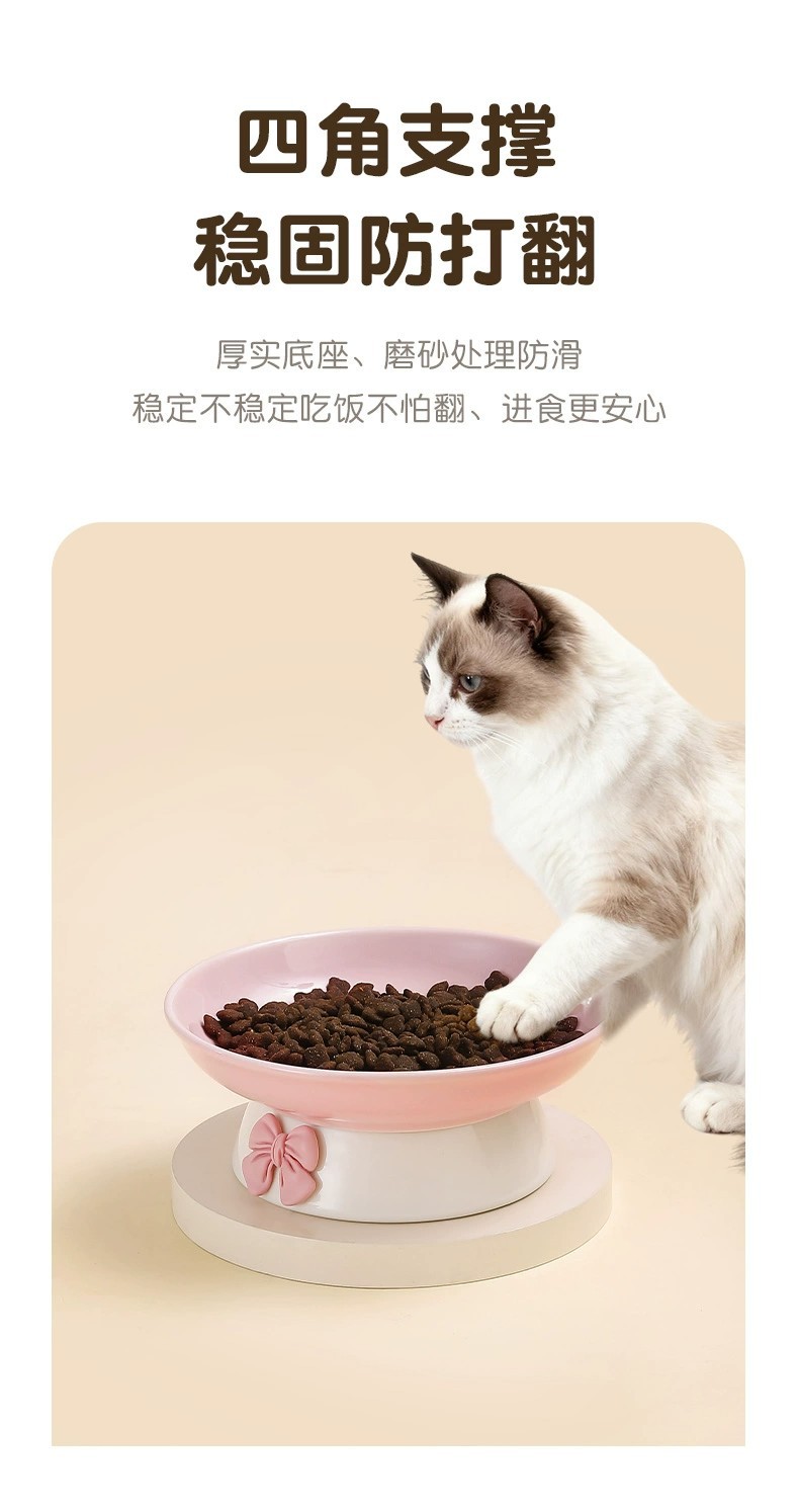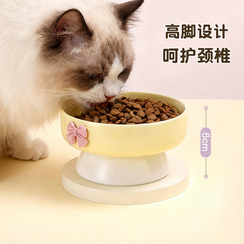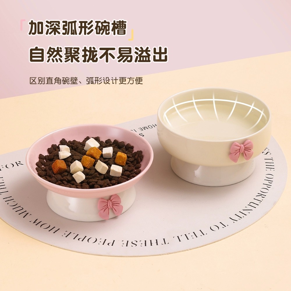 宠物陶瓷碗高脚碗猫碗狗碗增高护颈水碗猫粮碗可爱防黑下巴防打翻